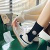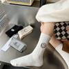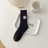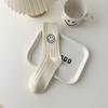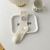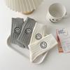 Calcetines de Mujer para Otoño e Invierno, Nuevo Estilo Japonés, Calcetines Holgados de Media Caña con Rayas Anchas y Bordado de Carita Sonriente, Calcetines de Algodón para Mujer