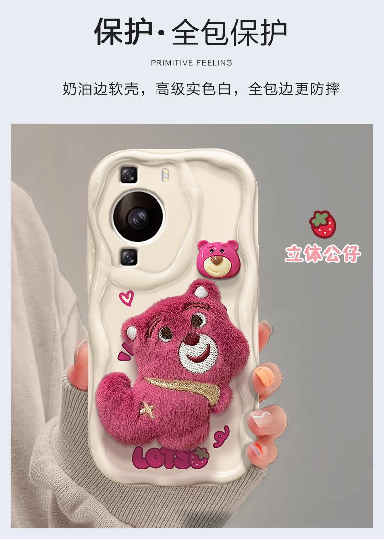 Muñeco de peluche tridimensional para funda de teléfono Huawei mate60pro p50 todo incluido nova7 glory 90 dibujos animados 80