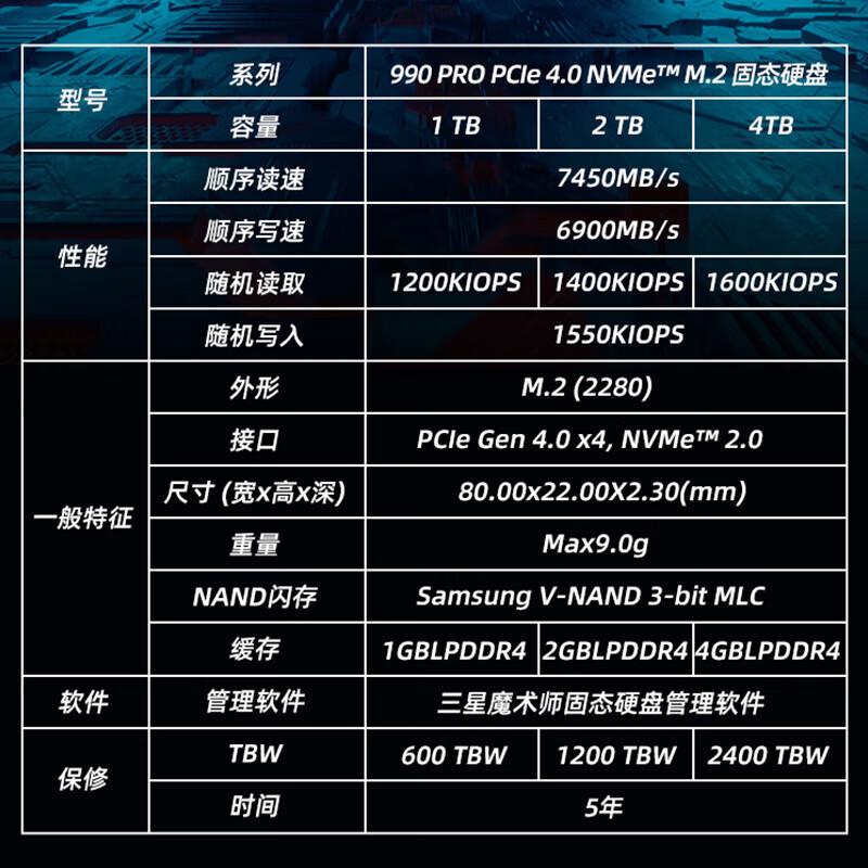 SSD Samsung 4T SSD 2T 1T Interfaz M.2 Protocolo NVMe PCIe4.0 x 4 990PRO