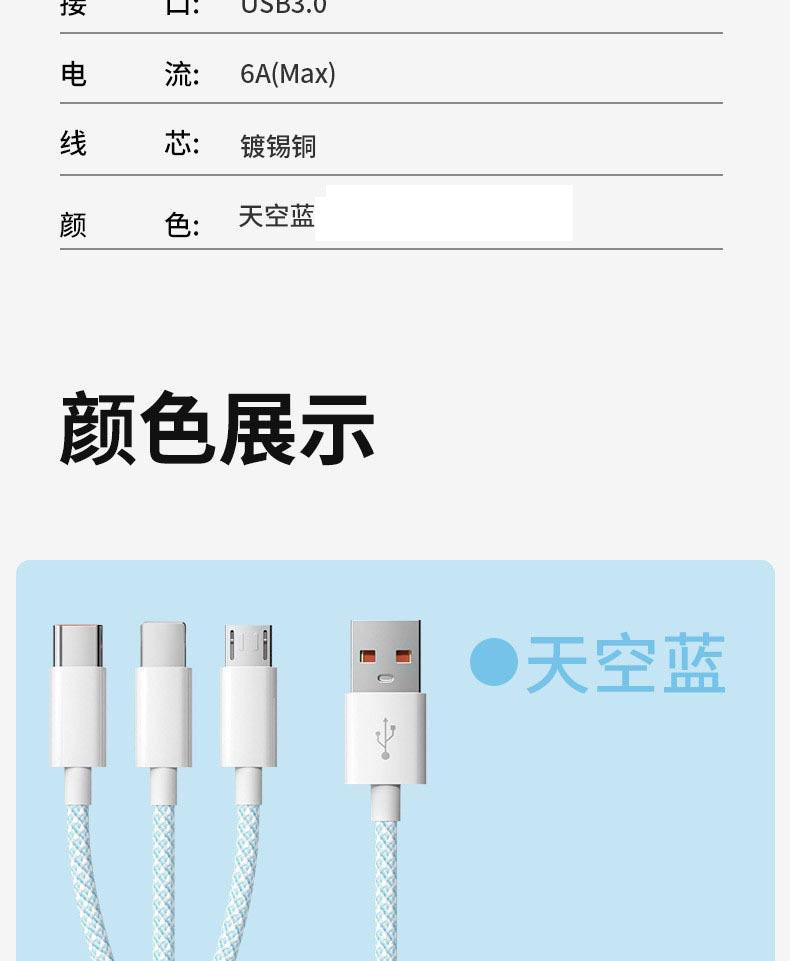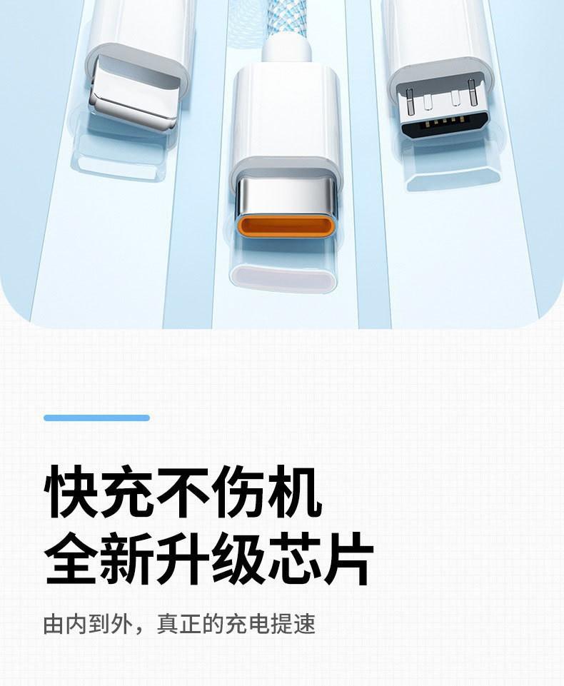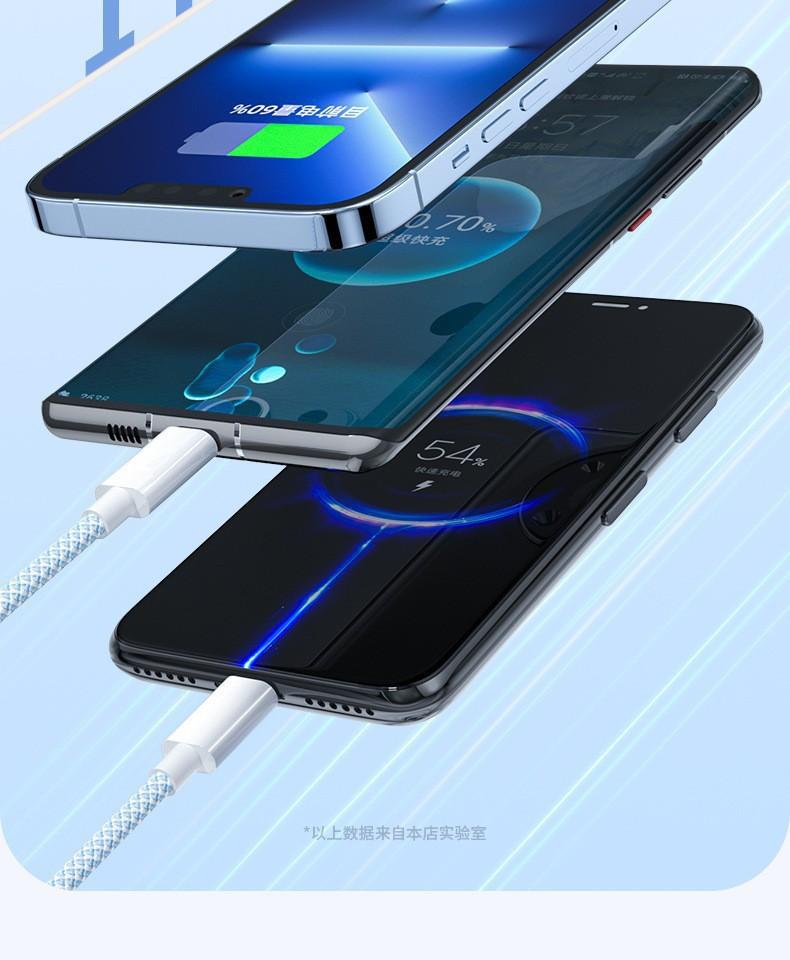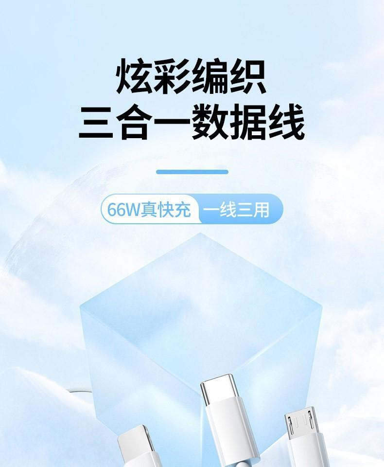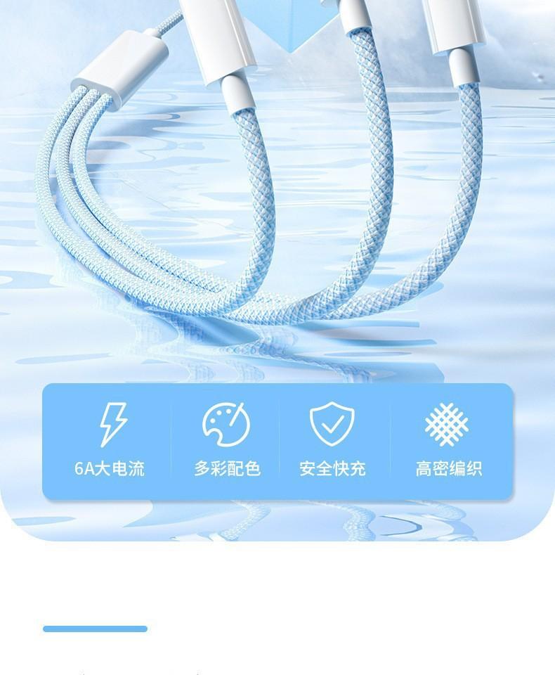 Cable de datos trenzado de uno a tres Cable de carga rápida de 66 W Regalo con logotipo adecuado para cable de carga tres en uno tipo C de Apple