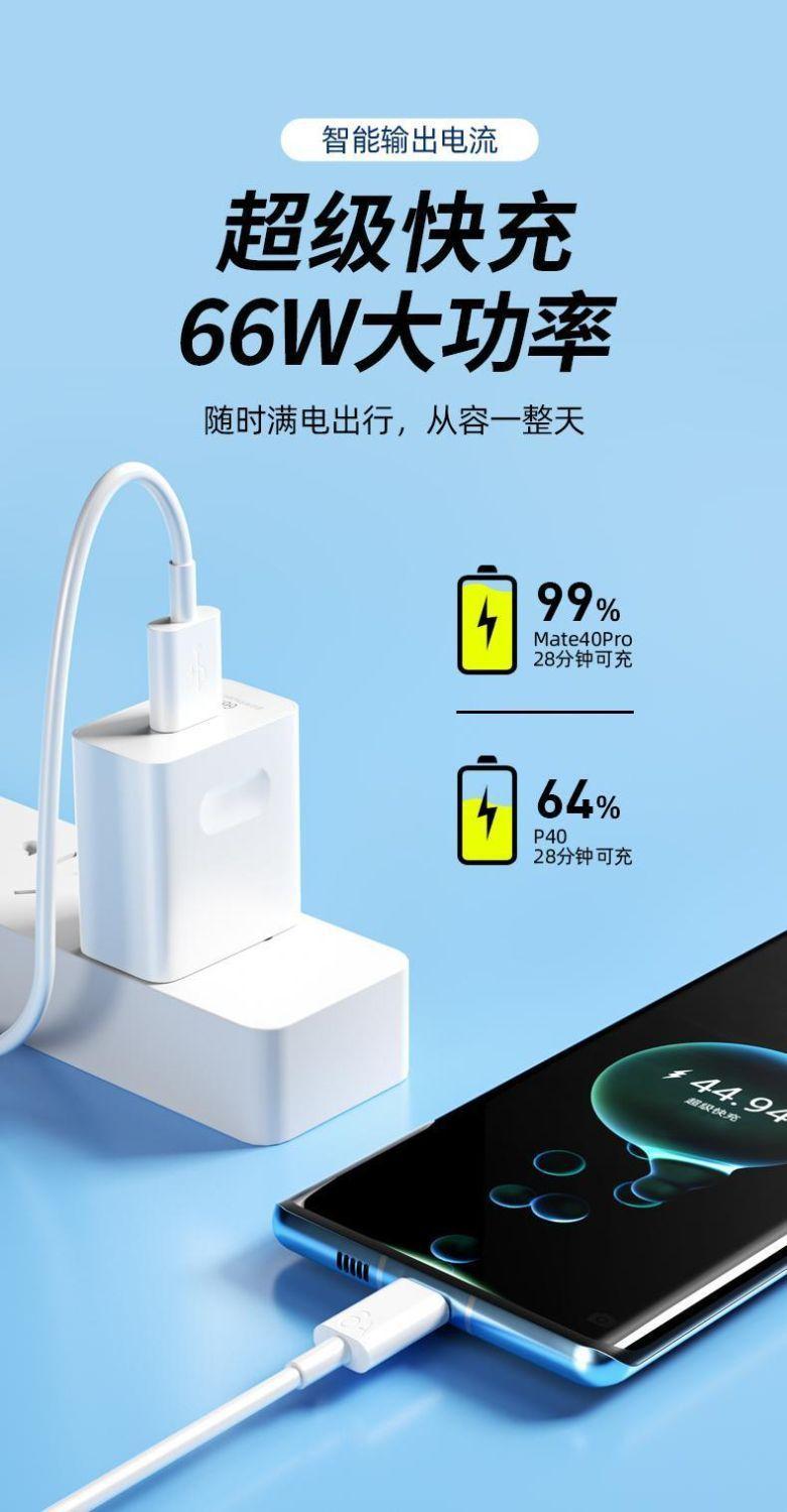 El cargador es adecuado para el cabezal de carga súper rápida de 66 W de Huawei, cable de datos mate60P40, cargador de la serie Glory