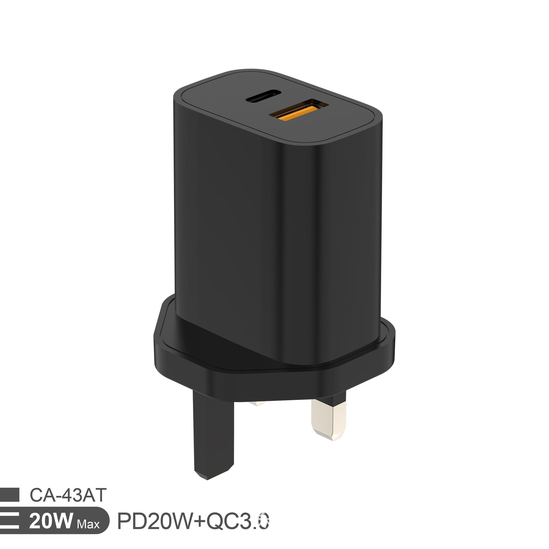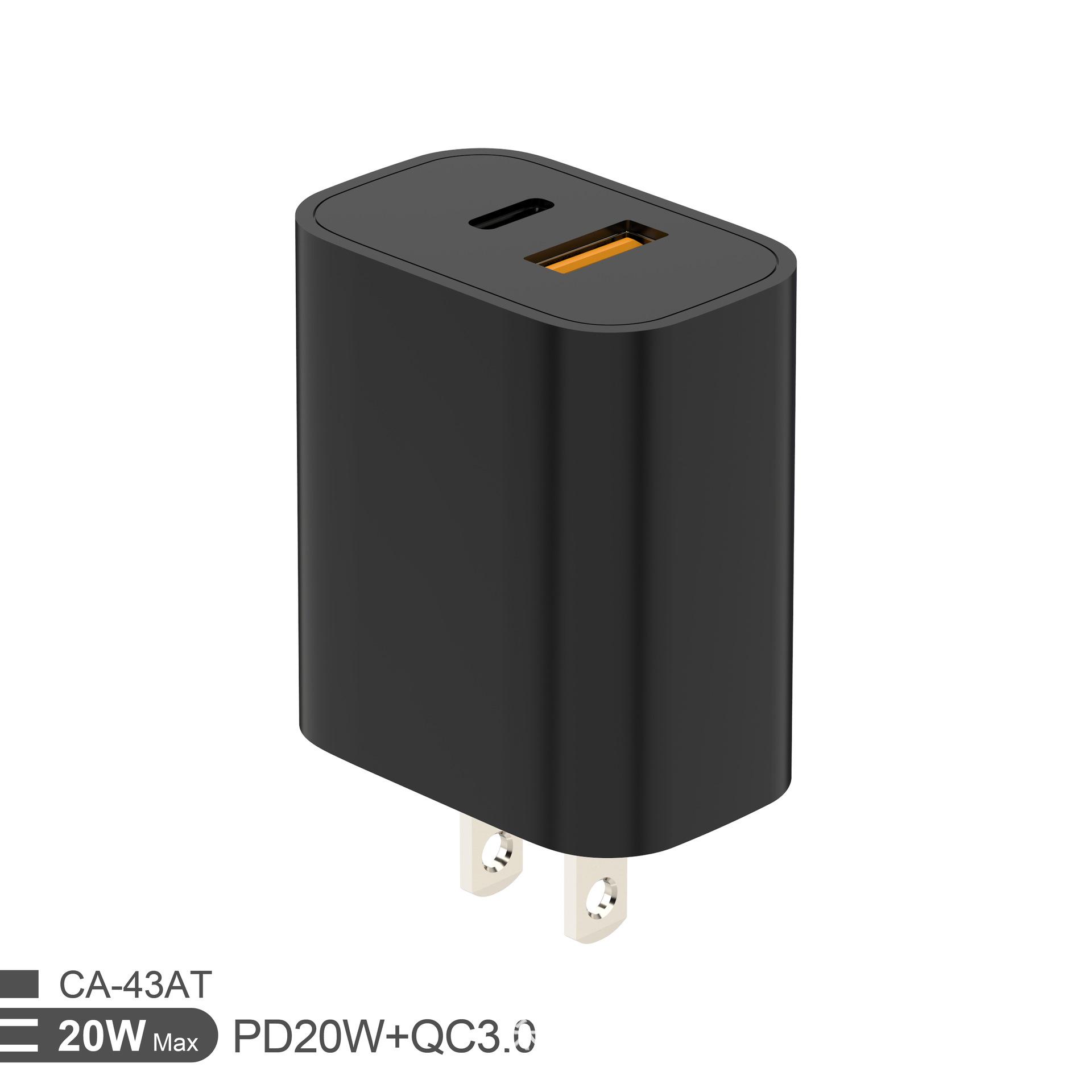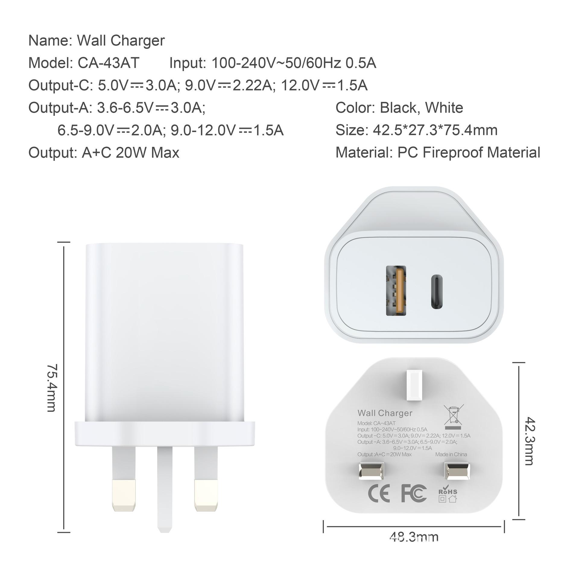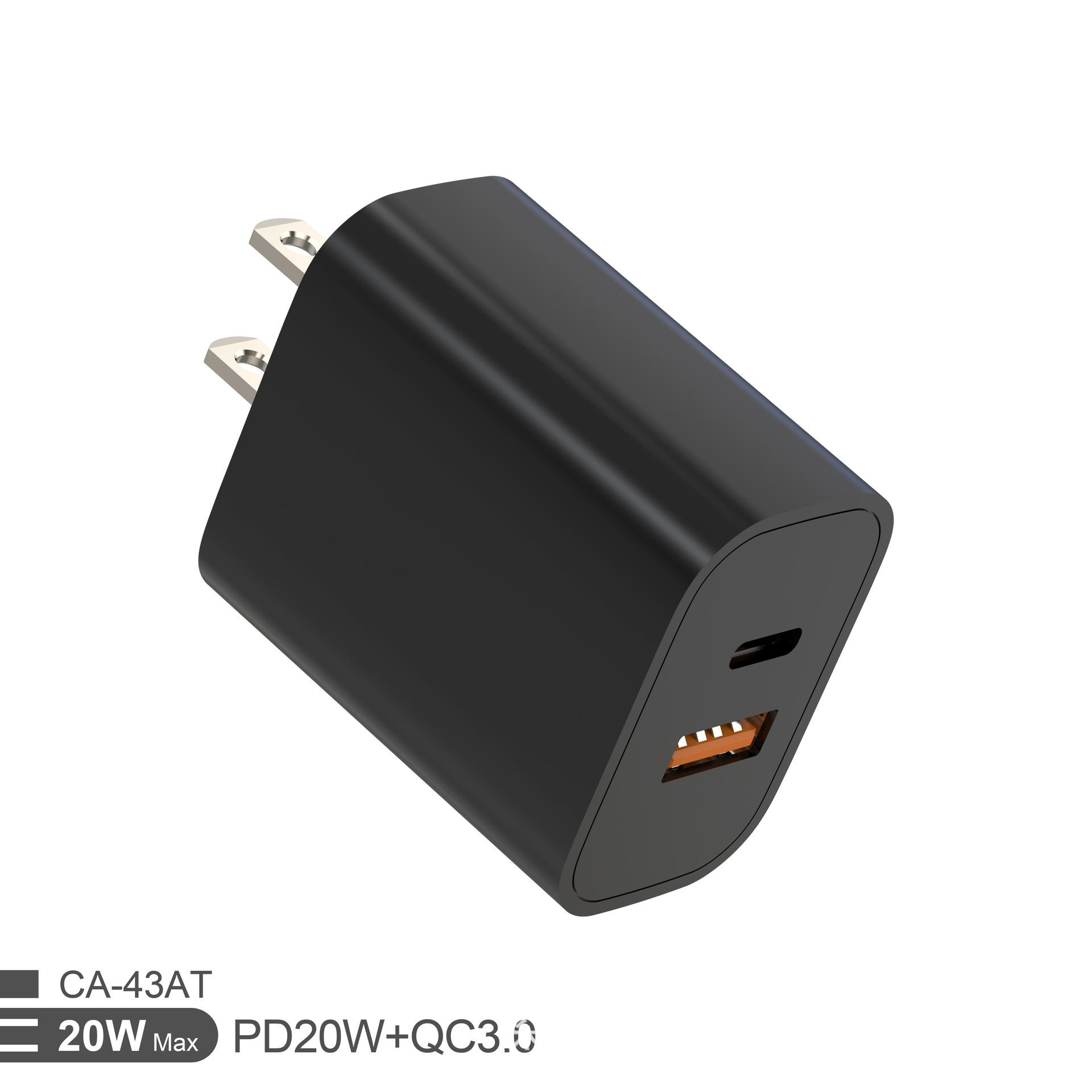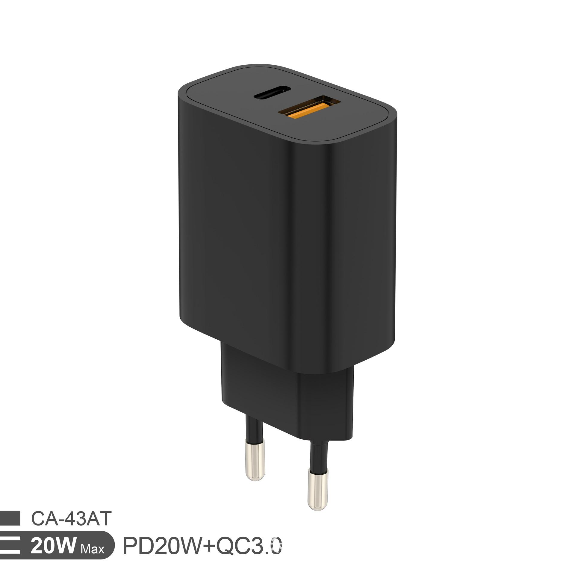 Cargador de carga rápida de doble puerto PD20W QC3.0 transfronterizo. La carga rápida del teléfono móvil de CA es adecuada para el cabezal de carga Apple Android.