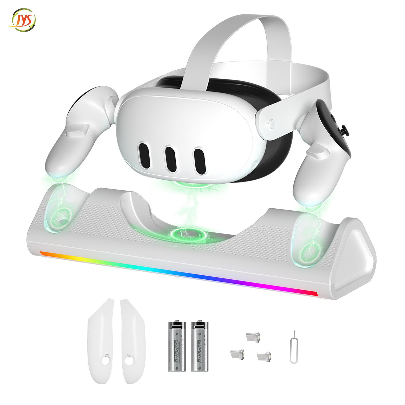 * Método de carga por contacto del casco, método de carga magnética del mango, carga rápida y convenientemente 1 casco VR y dos mangos VR al mismo tiempo, el cargador está equipado con protección contra sobretensión, sobrecarga, sobrecorriente y circuito.