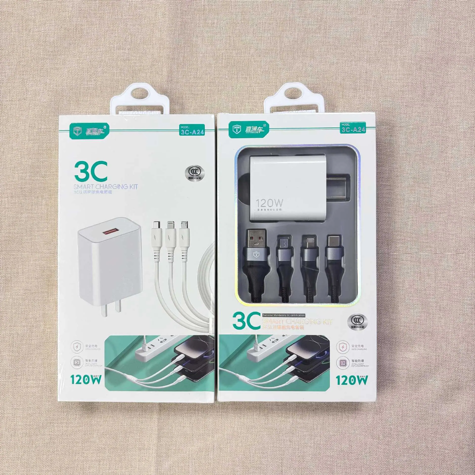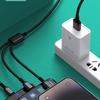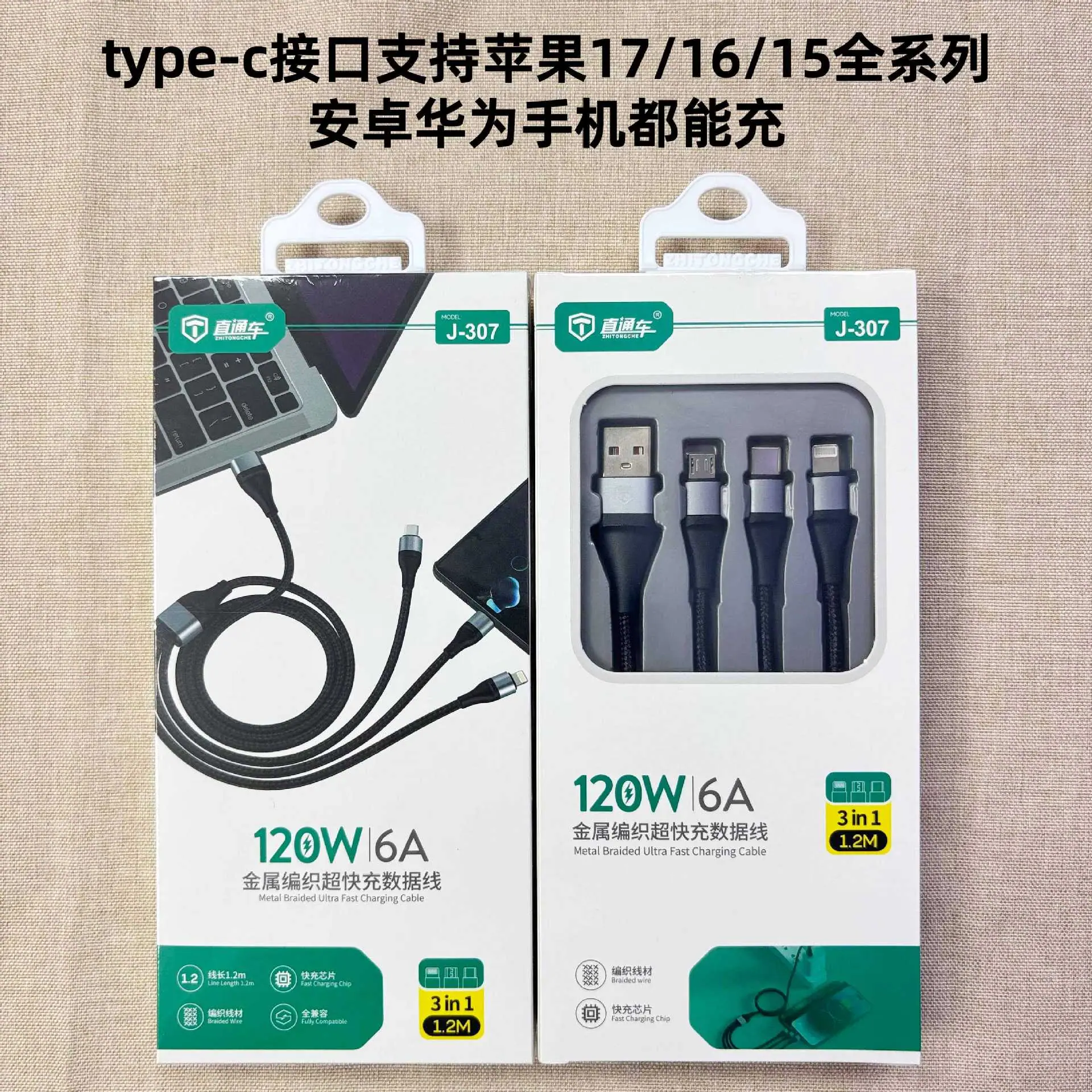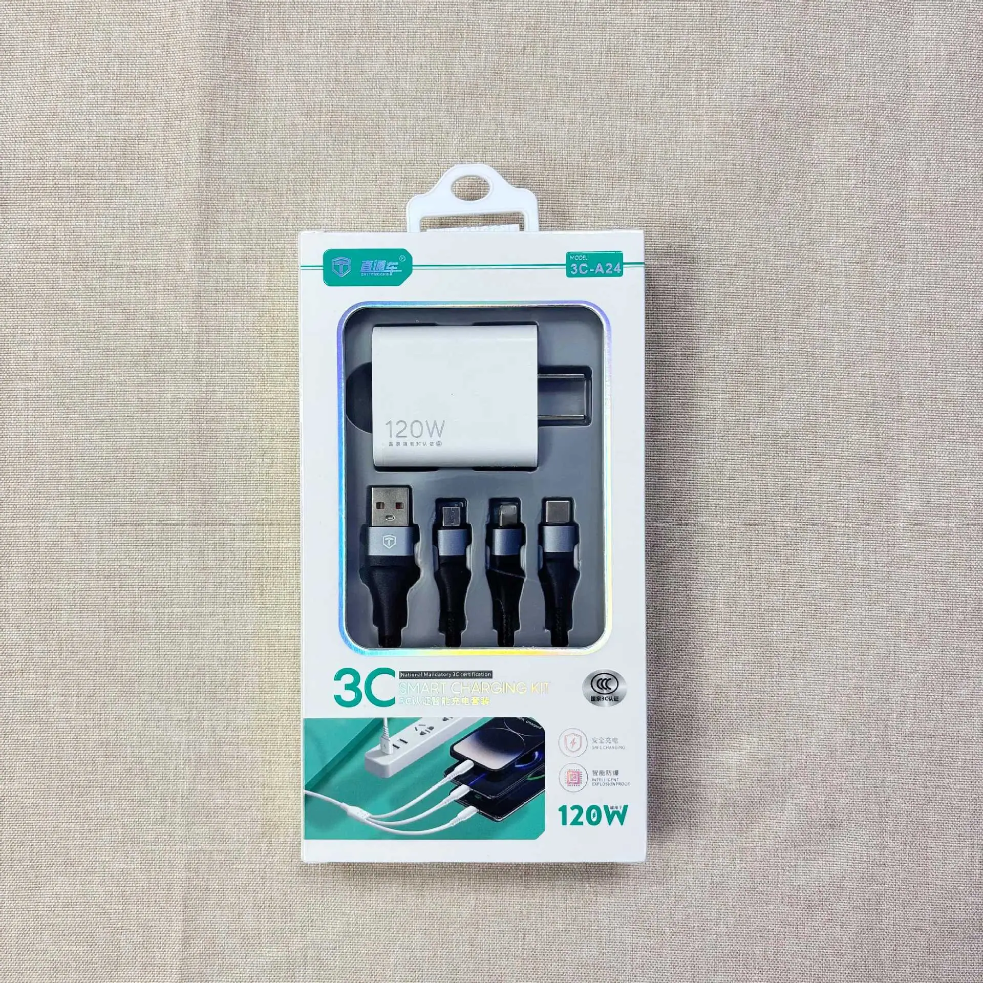 Características del producto: Adaptador de carga rápida de 120 W recién actualizado emparejado con un juego de cable de carga rápida trenzado de 120 W con tres conectores. El puerto Tipo-C del cable de carga admite la serie completa de iPhone 17/16/15, así como dispositivos Huawei Android. Identifica inteligentemente varios dispositivos, tiene circuitos de protección múltiple incorporados, ofrece salida estable y cuenta con un diseño de voltaje amplio, asegurando una velocidad de carga rápida. Admite dispositivos móviles como teléfonos inteligentes y tabletas de diferentes marcas.