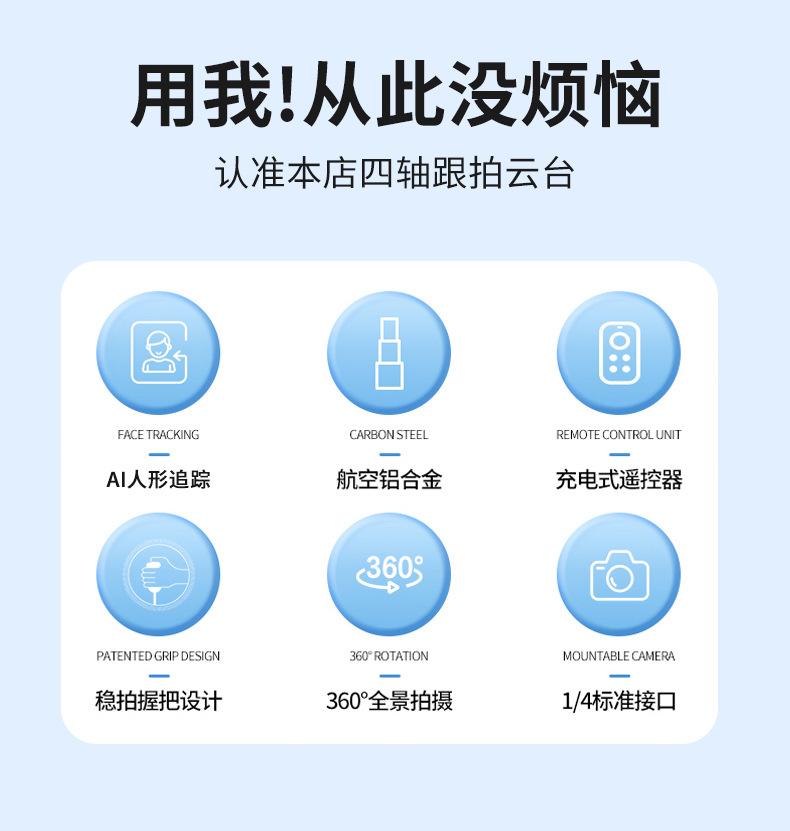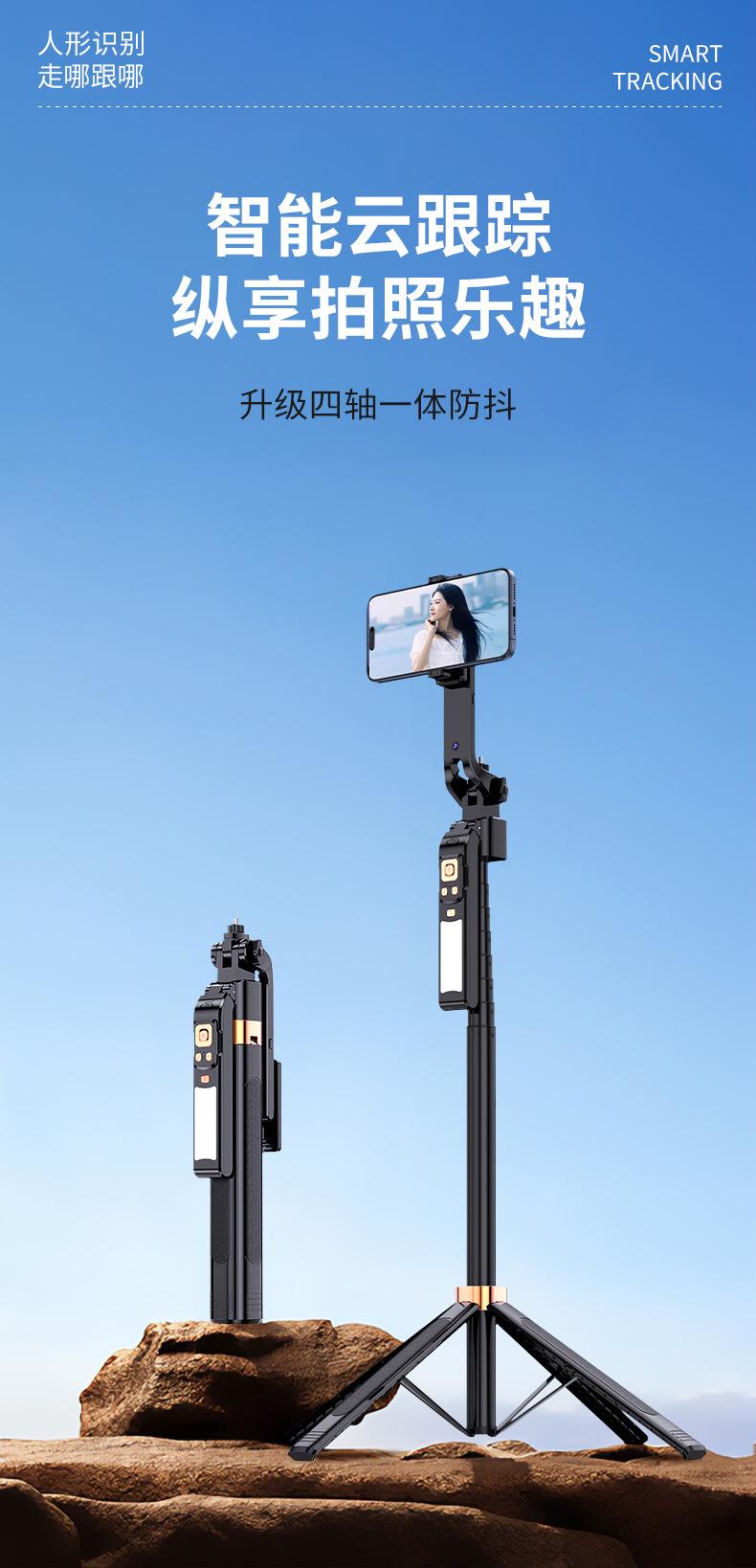 Teléfono móvil paneo-inclinación seguimiento automático palo selfie artefacto estabilizador de cuatro ejes seguimiento facial 360 grados venta al por mayor transfronteriza
