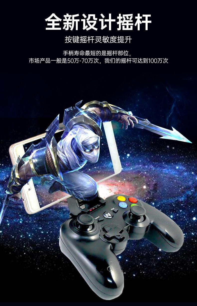 Controlador de juegos inalámbrico 2.4G para Android, Android smart TV, juego móvil para TV, caja LeTV Xiaomi, caja mágica Tmall universal. Potente Smart TV Android/computadora/decodificador/teléfono Android/PC/PS3/PC360, el estándar de producción de la distancia inalámbrica del mando es de 6-10 metros (entorno normal), el método de detección puede probar la distancia inalámbrica en la computadora.