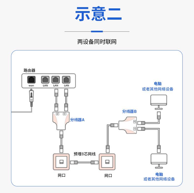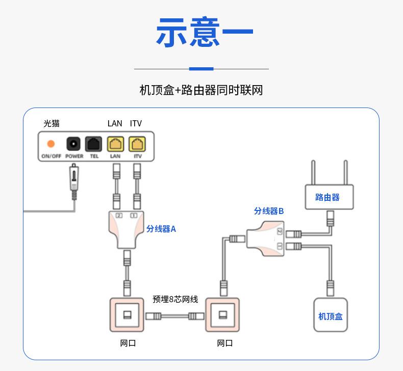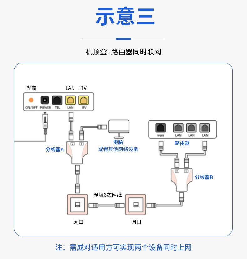 Enhanced three-way internet access at the same time, Telephone tee, Telephone direct connection RJ11, White cu...