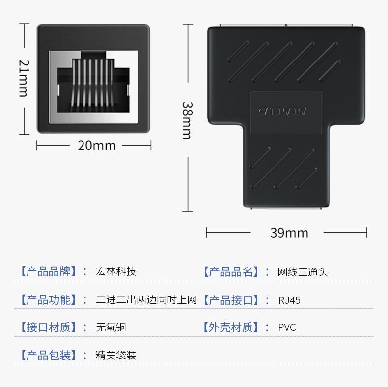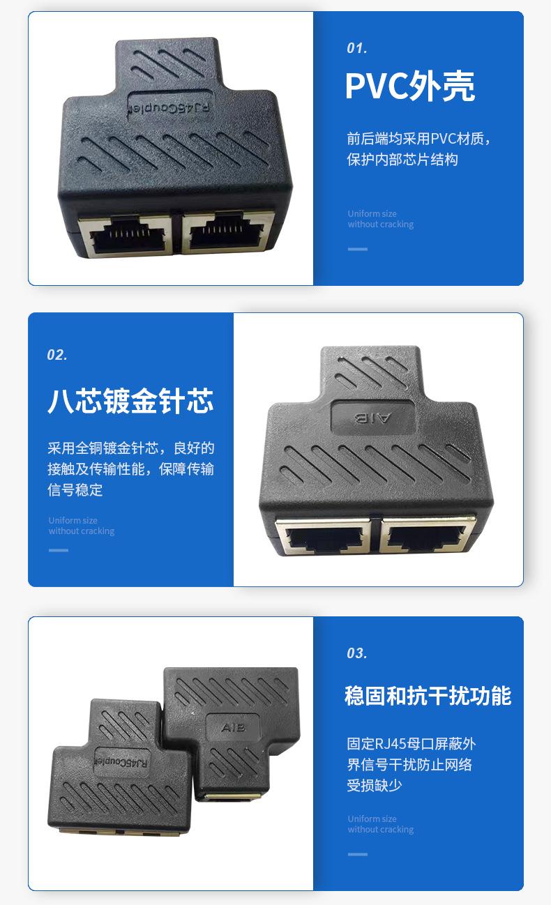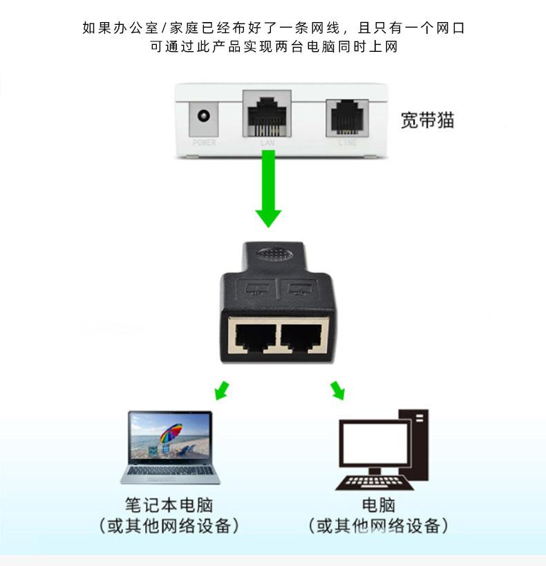 Divisor de cable de red, convertidor de red uno-dos, conector de cable de red rj45, extensión de cable de red, cabezal de tres vías