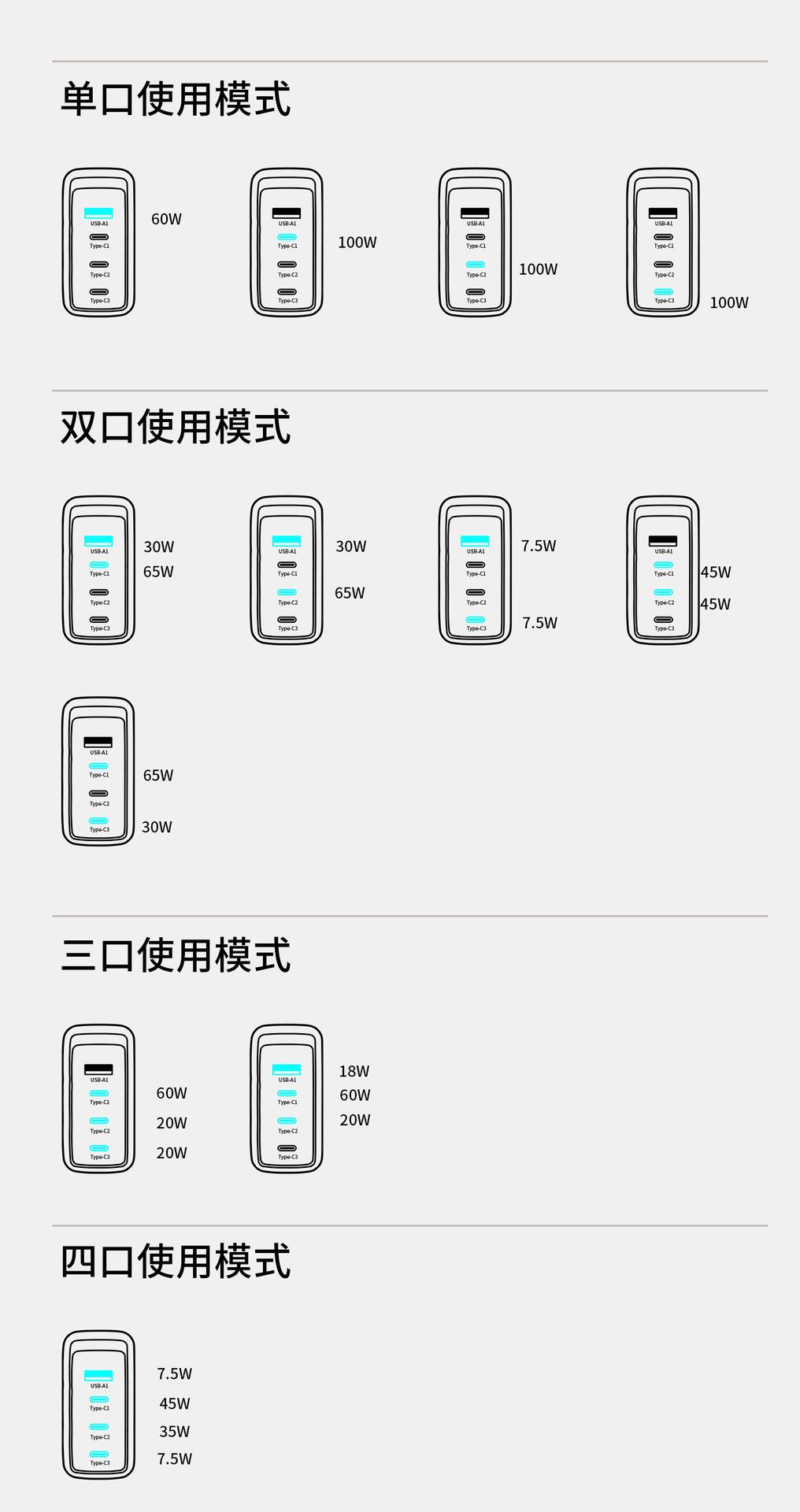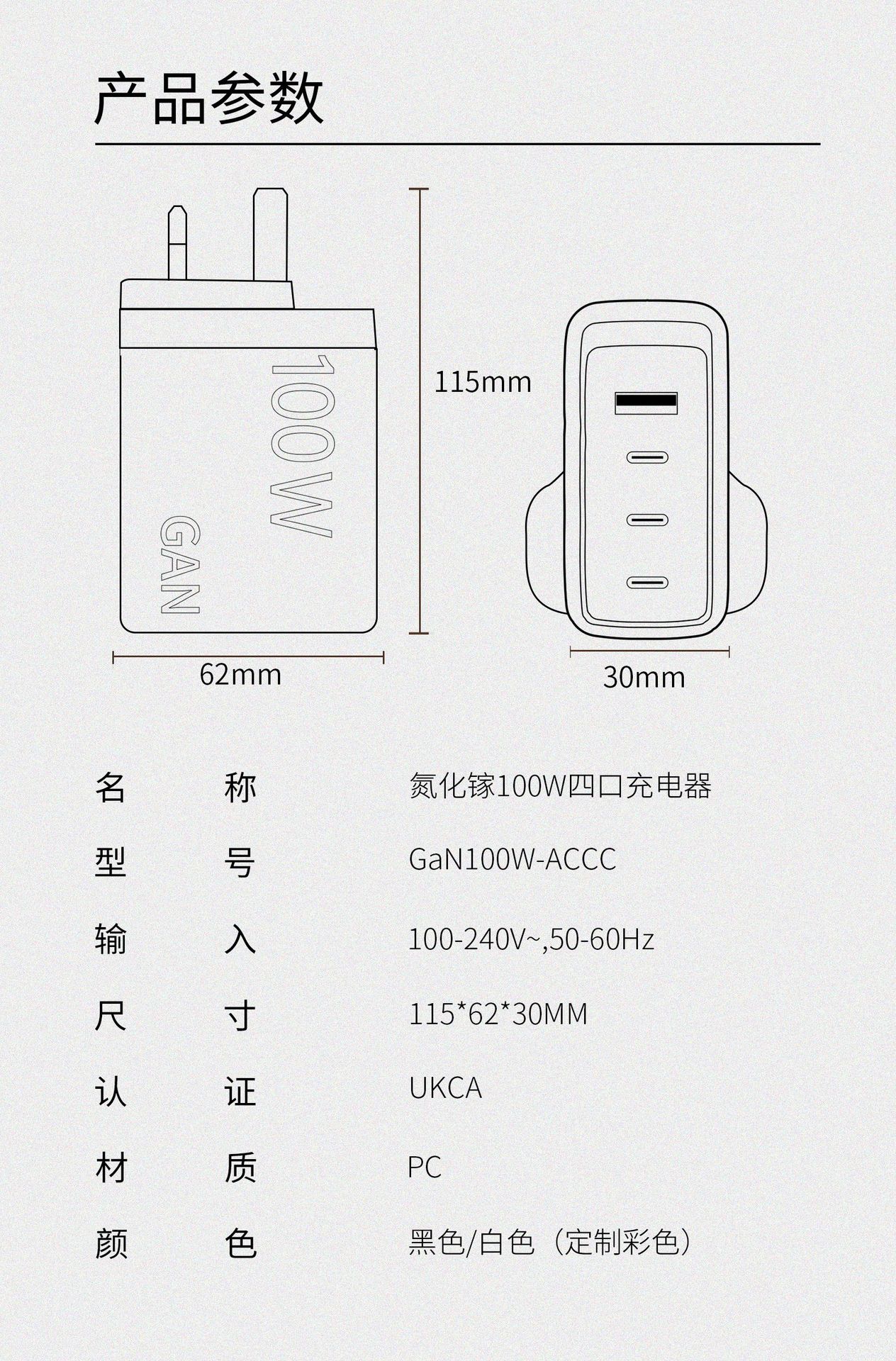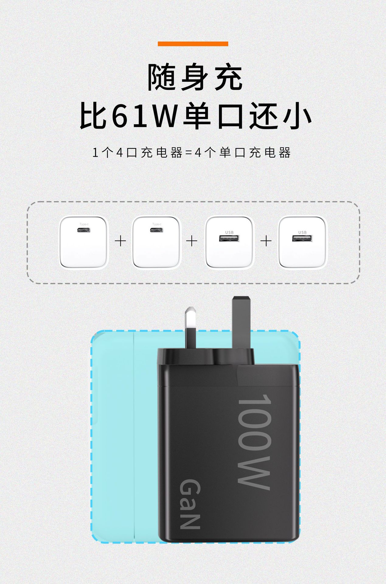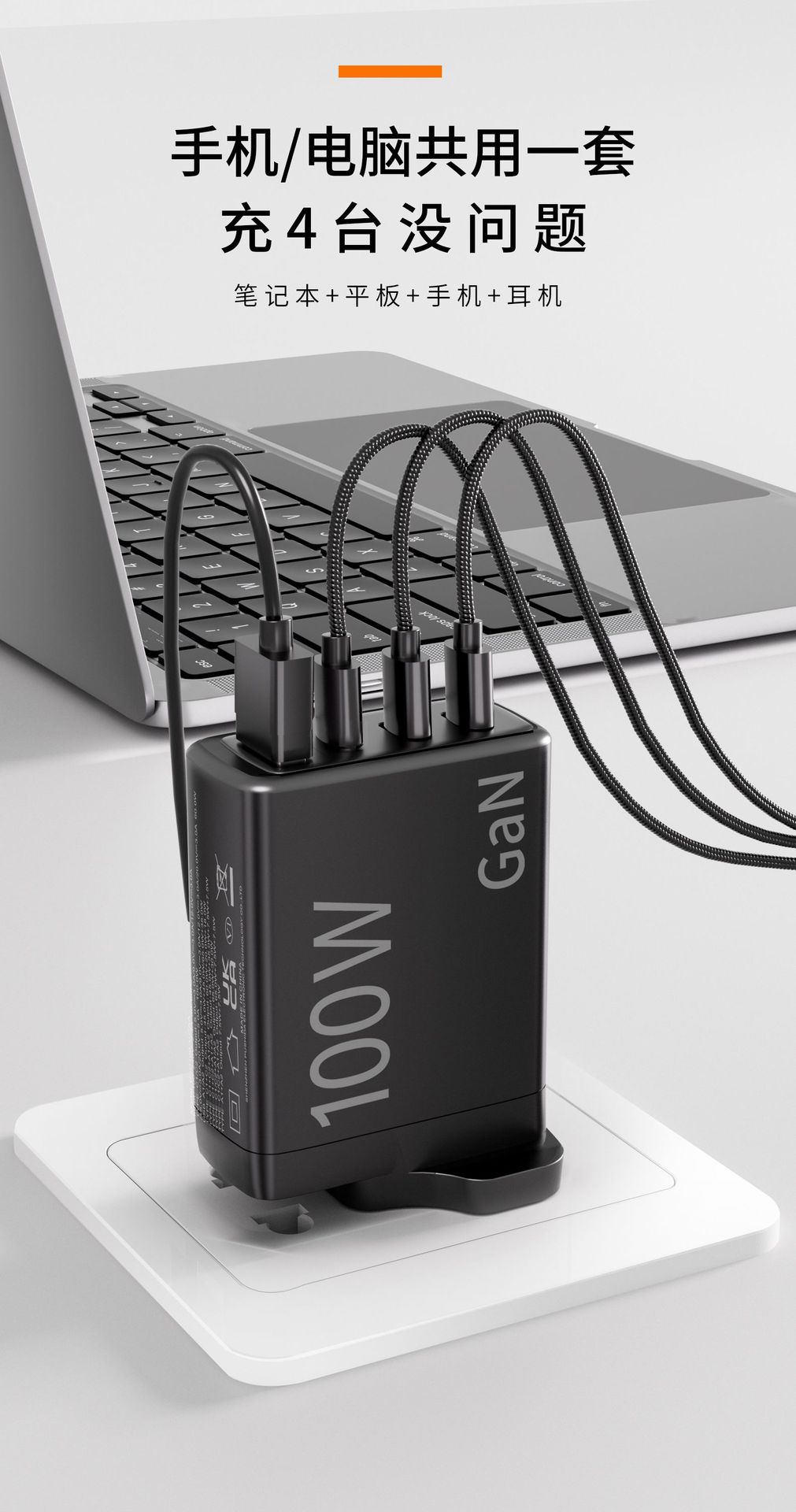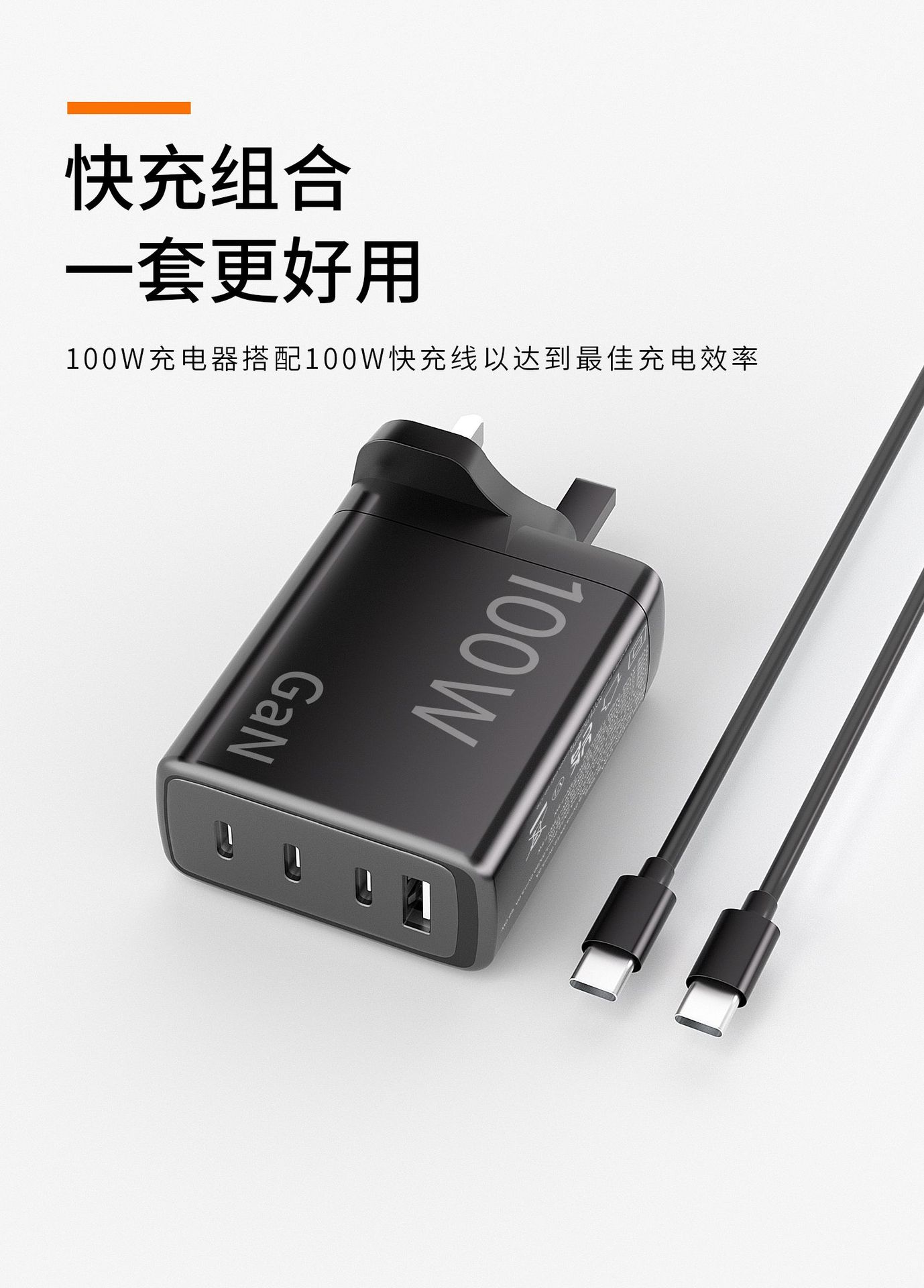 Cargador de nitruro de galio de calibre británico de 100 W con múltiples puertos PD de carga rápida para teléfonos móviles Apple y Huawei, portátiles y ordenadores.