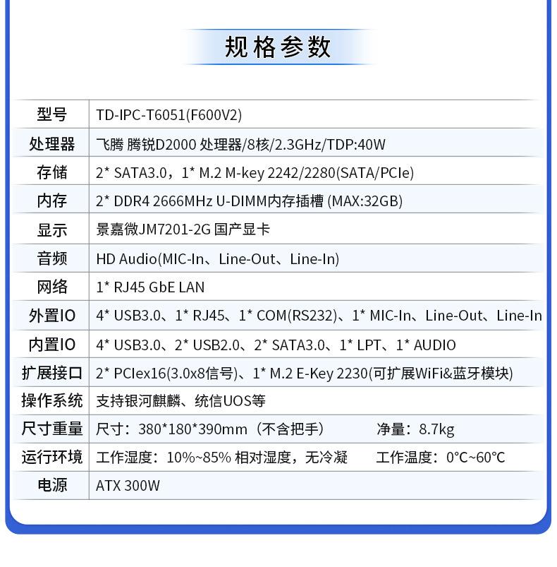 Torre de control industrial Tiangdi Sistema de host de control industrial Xinchuang Serie T6051 Mega núcleo Feiteng Haiguang Núcleo doméstico