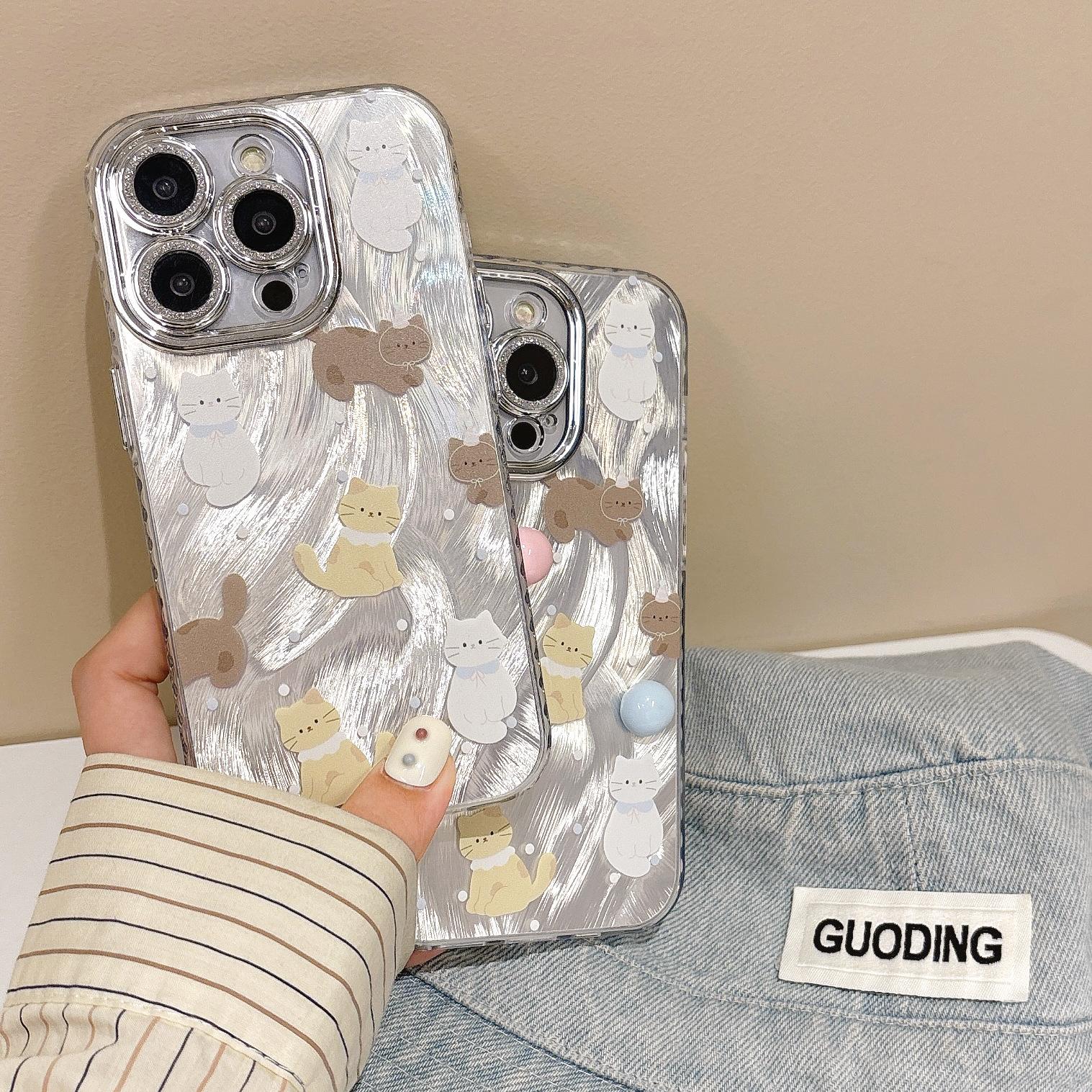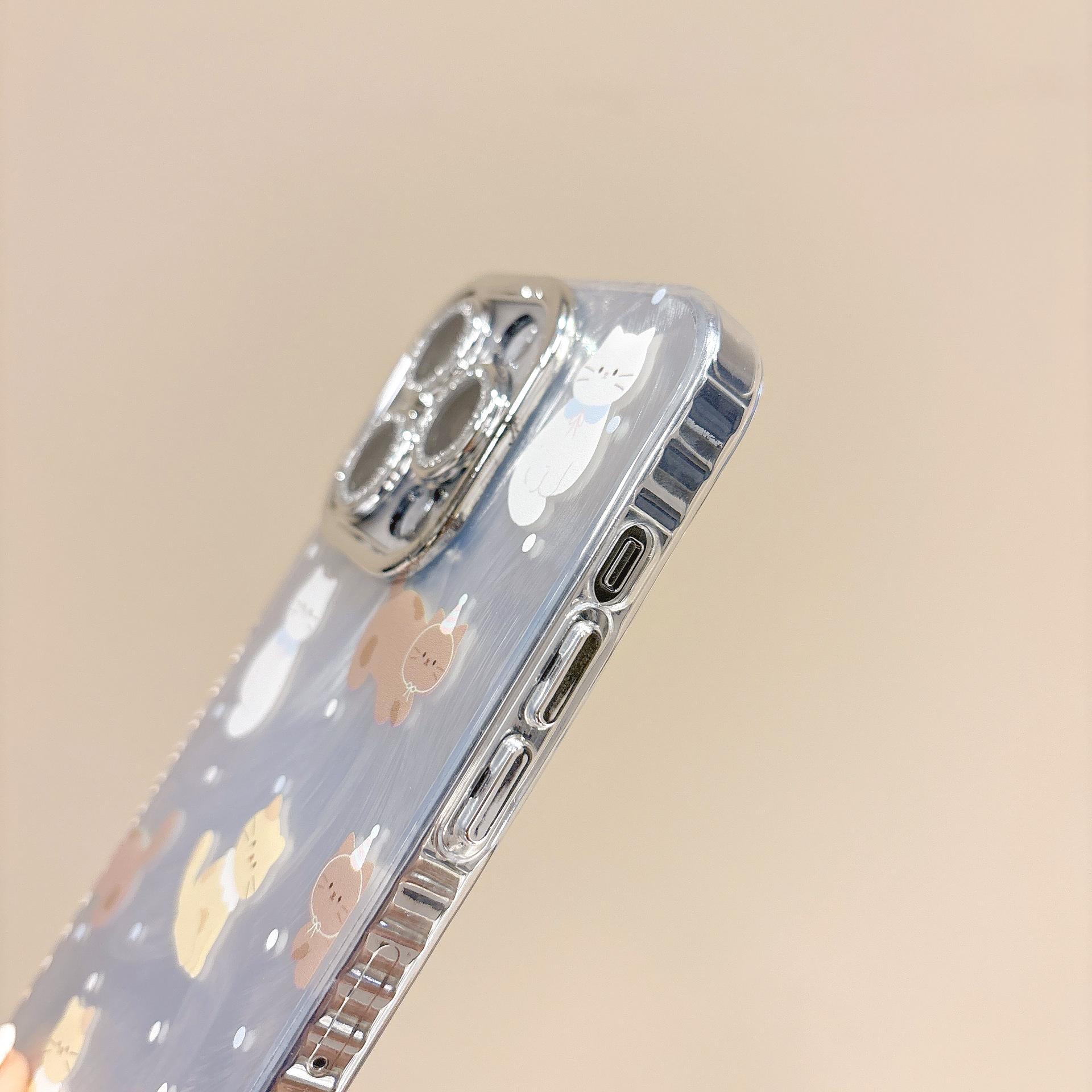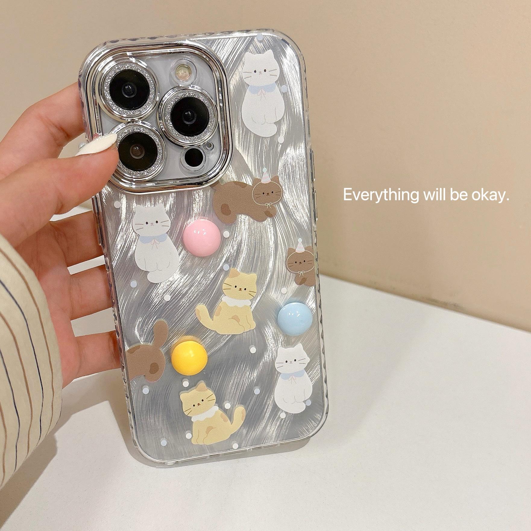 Funda de teléfono con diseño de gato y plumas de dibujos animados para Apple iPhone 15, iPhone 16, Pro Max, película para lente 14 Pro, para mujer 13/12