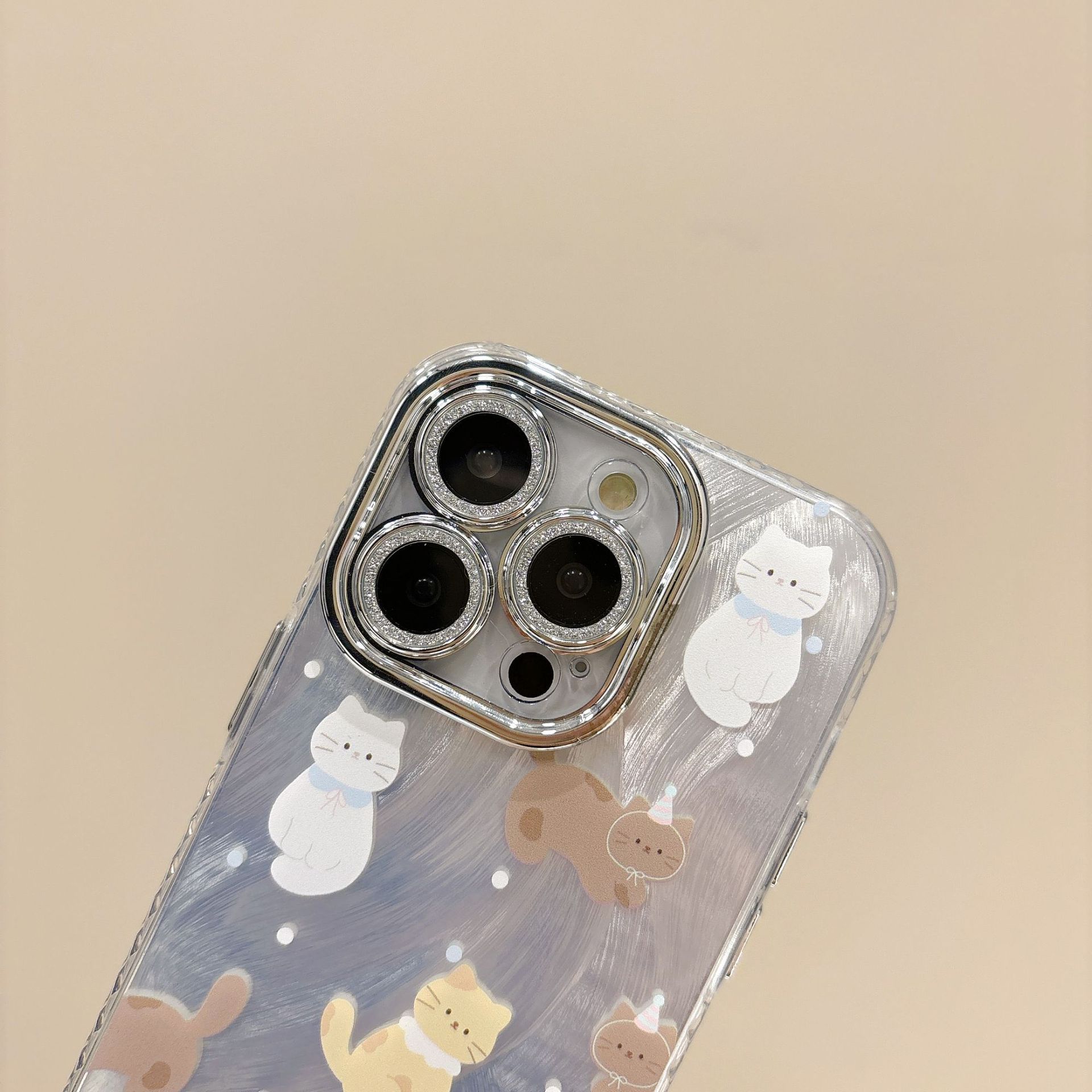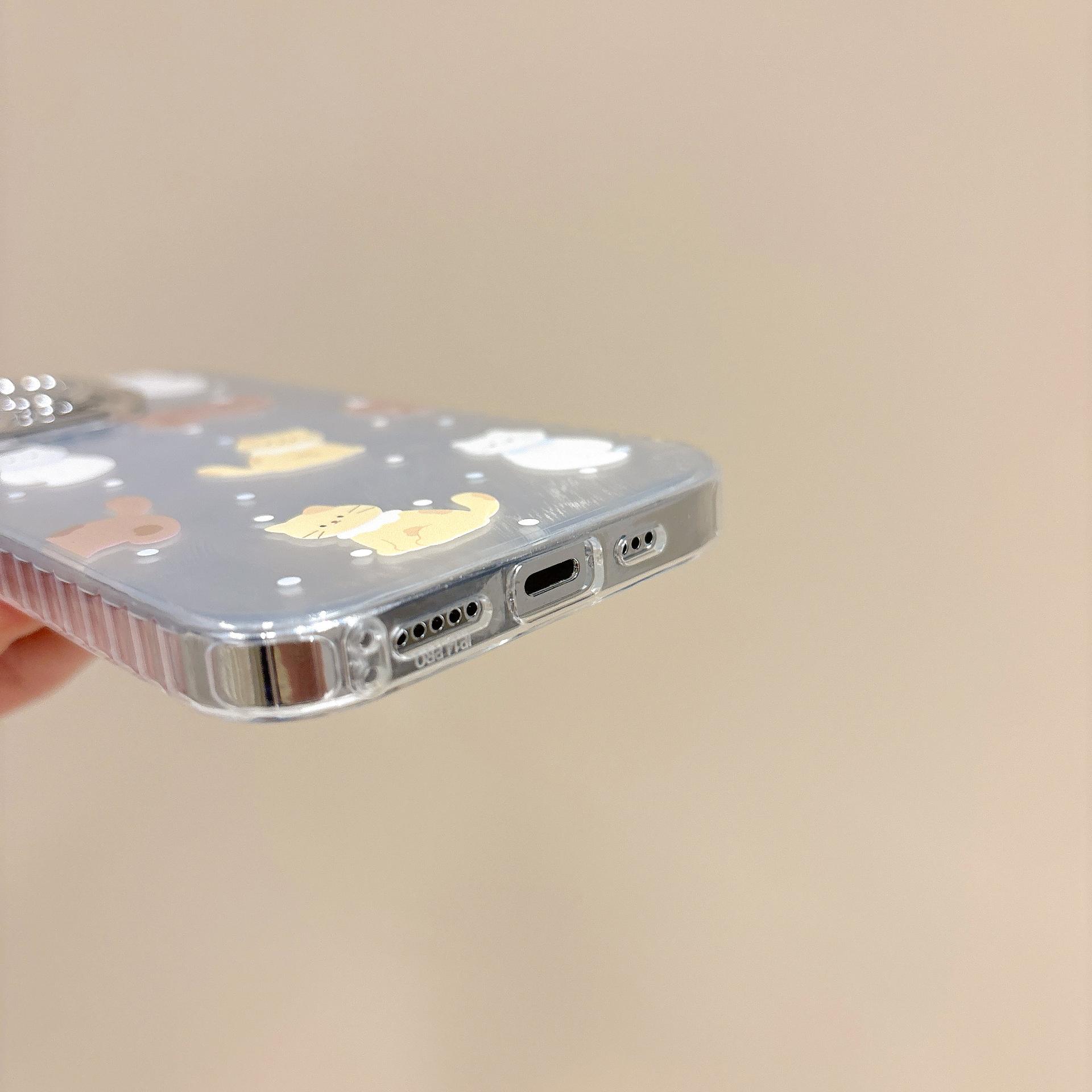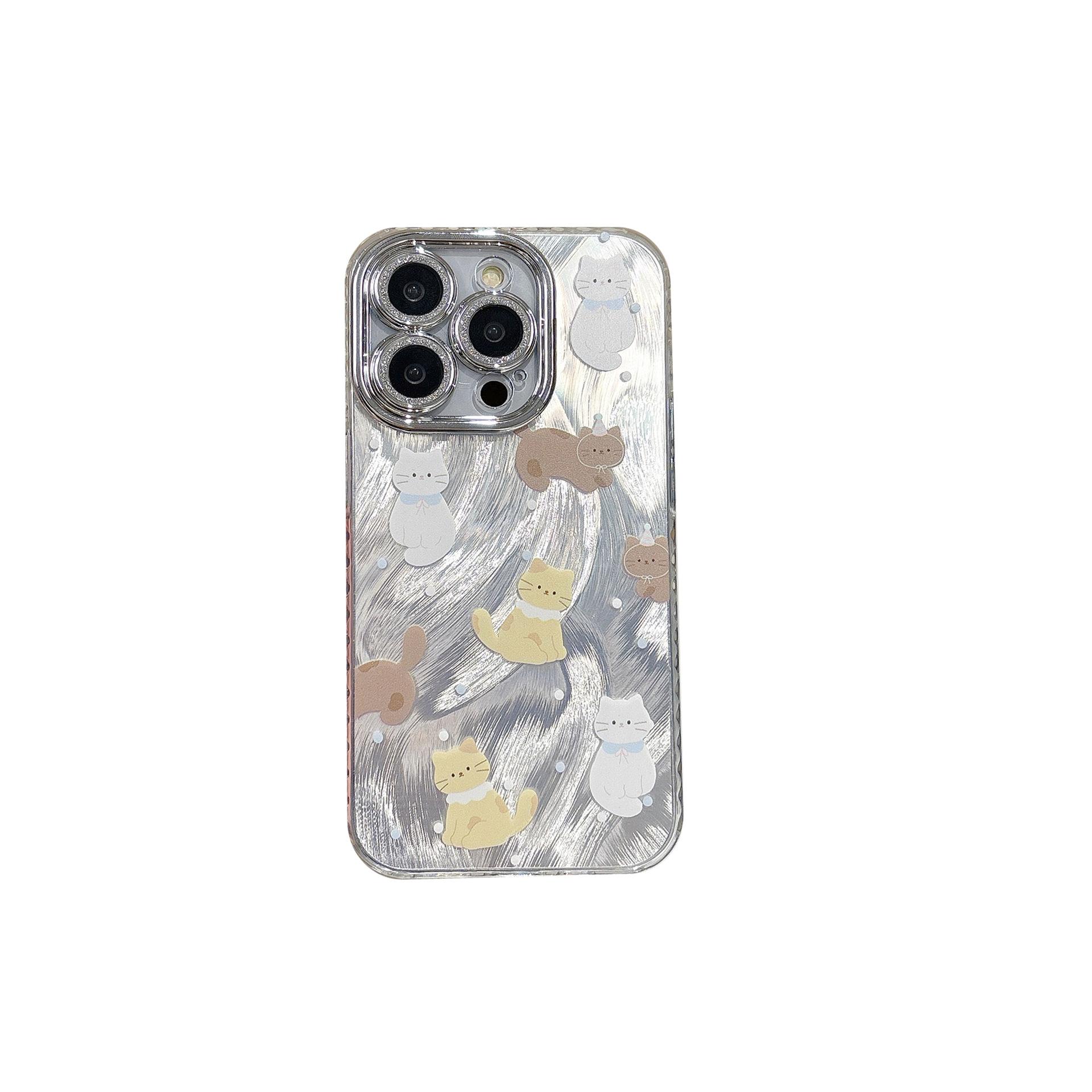 Funda de teléfono con diseño de gato y plumas de dibujos animados para Apple iPhone 15, iPhone 16, Pro Max, película para lente 14 Pro, para mujer 13/12