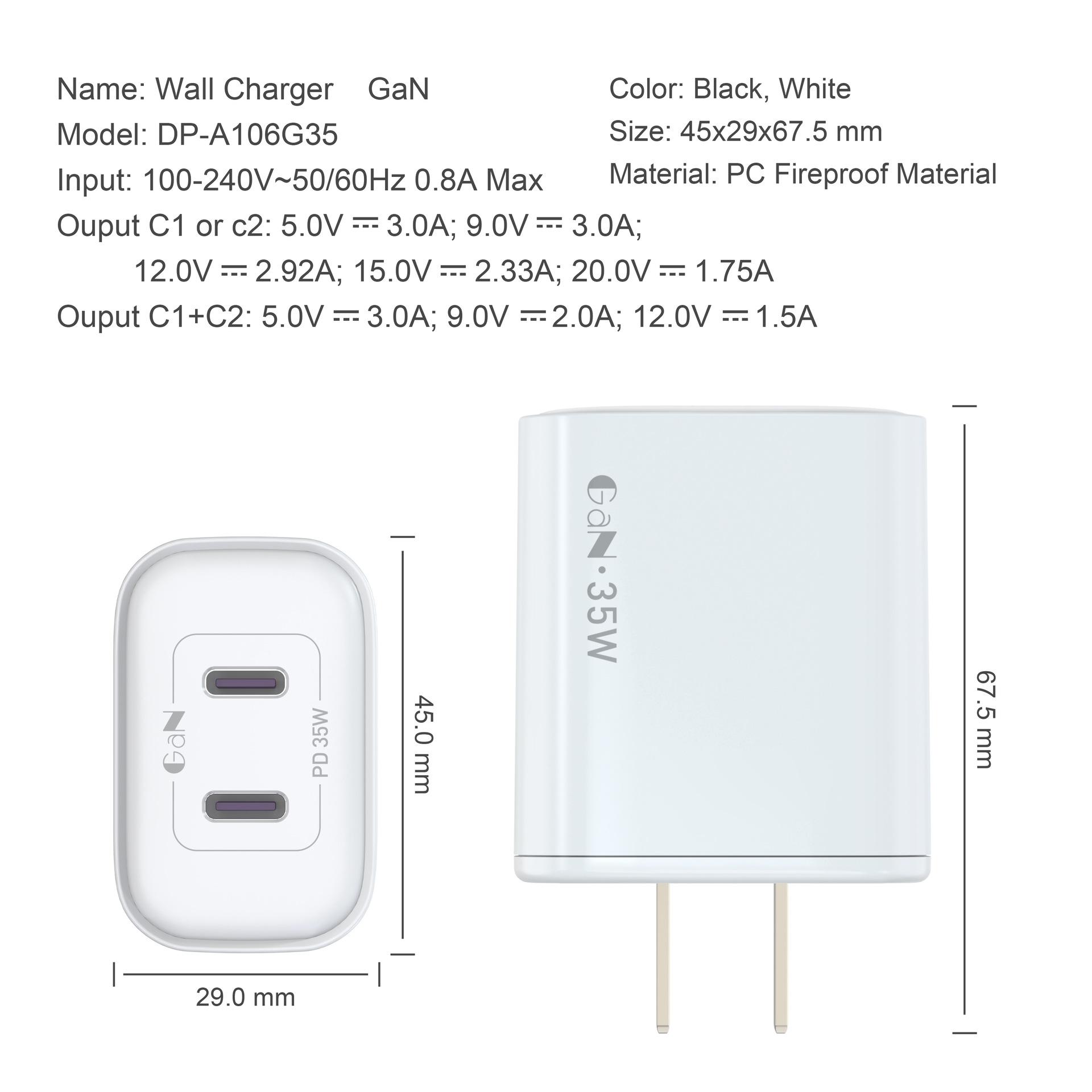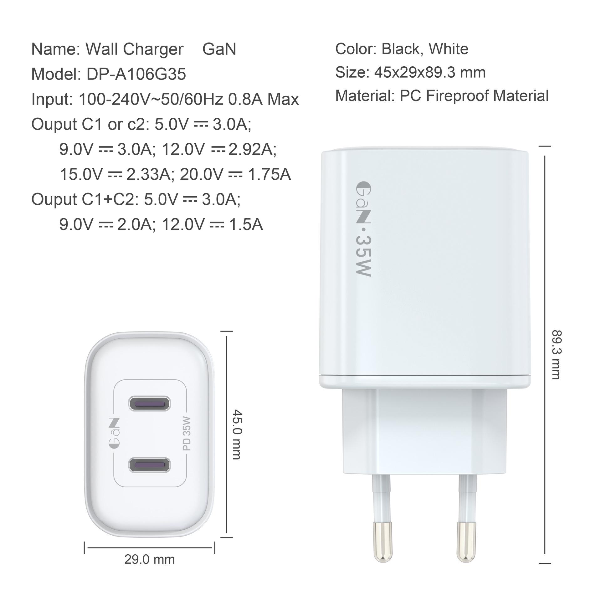La carga rápida transfronteriza de doble puerto PD35W es adecuada para la diadema de carga de nitruro de galio tipo C con cargador Apple Huawei ETL