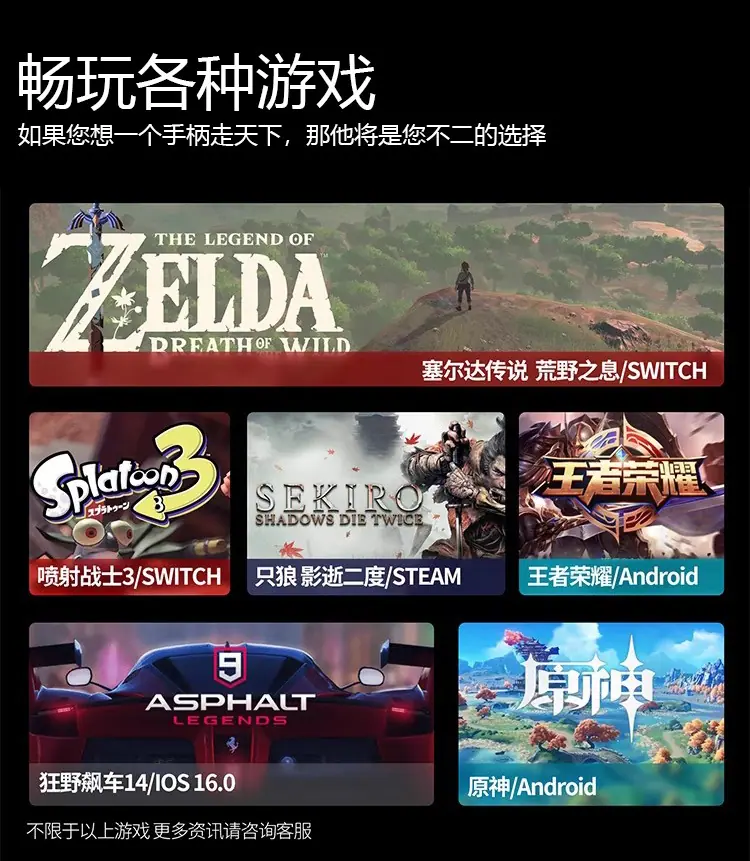 Android se usa para salas de juegos, y los juegos de Apple solo se pueden usar con juegos MFI nativos. Si no sabes si tu juego es compatible con el controlador, consulta la información en Baidu antes de comprarlo. Si no puedes usarlo después de comprarlo, deberás devolverlo y asumir los gastos de envío de ida y vuelta.