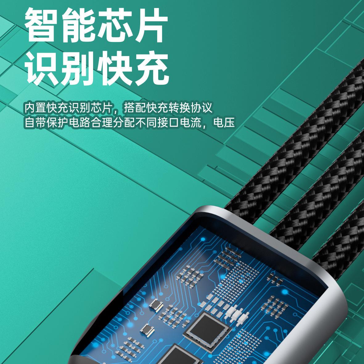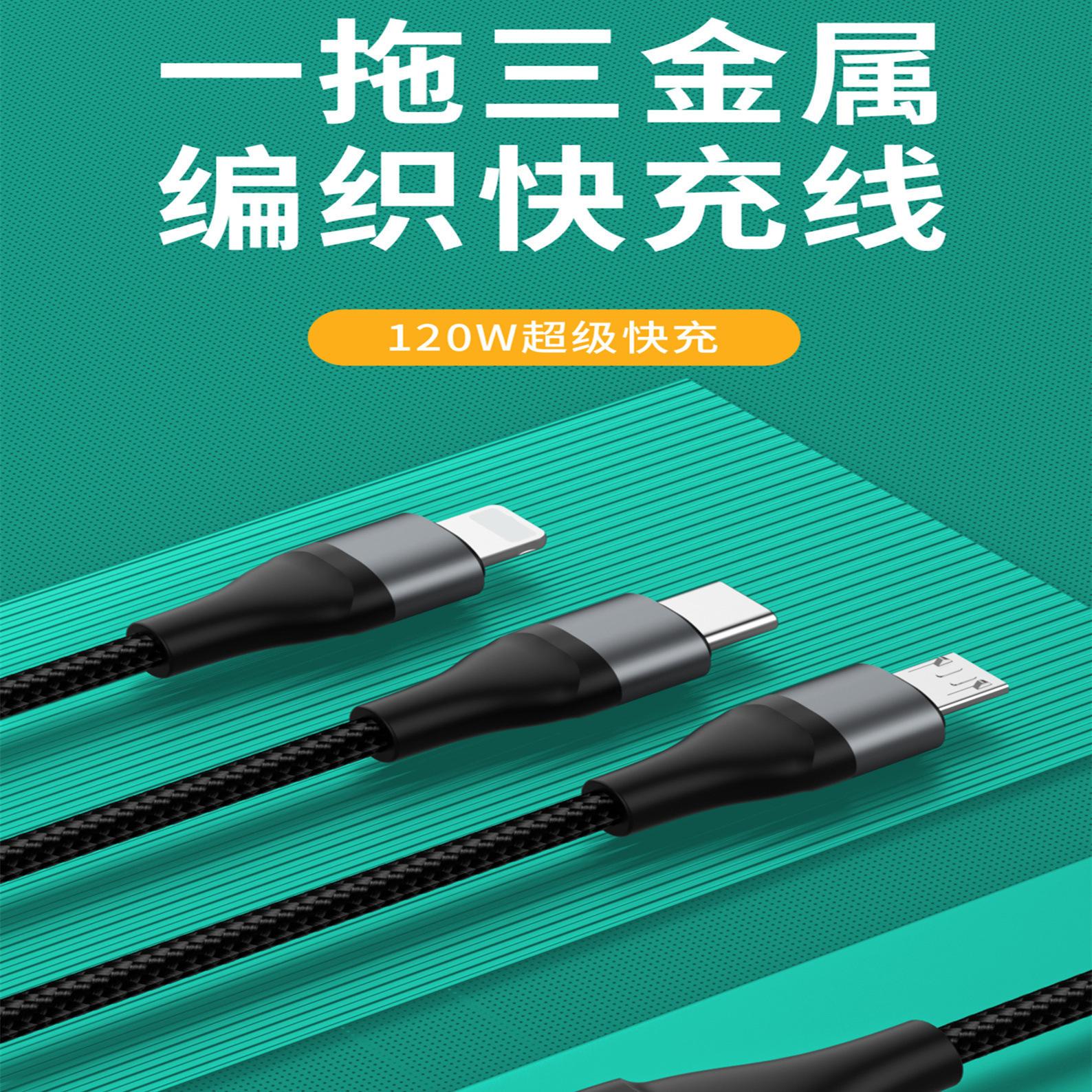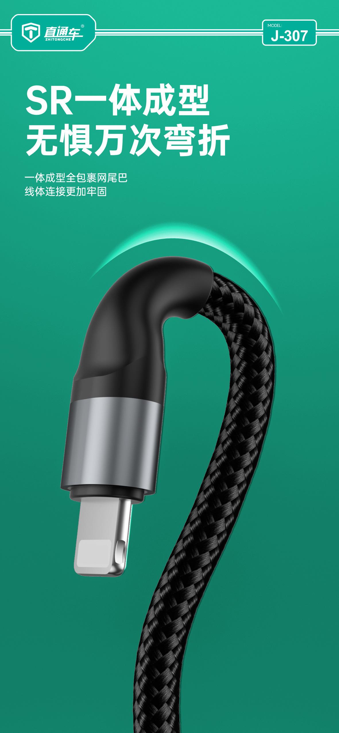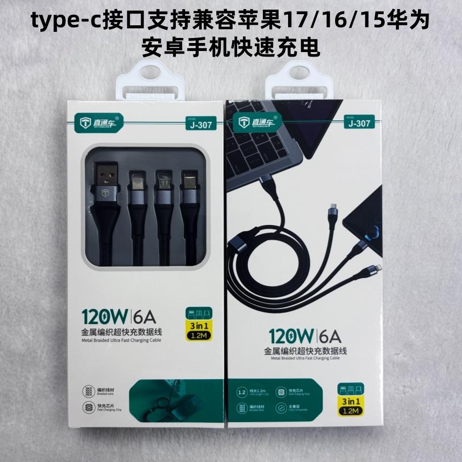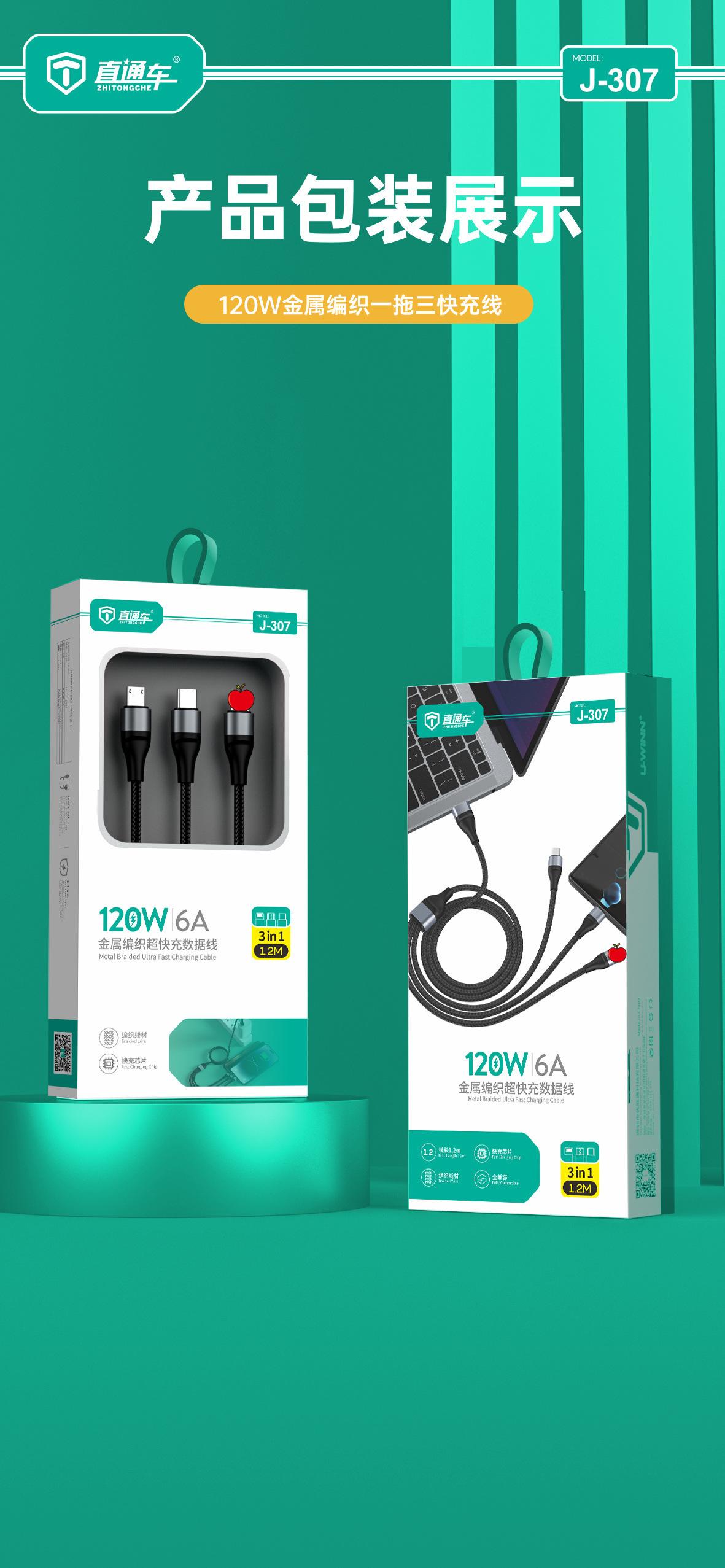 Cable de datos tres en uno J-307 parámetros detallados: Función del producto: Carga/Transmisión, *OD3.8, Estándar 6A/120W*