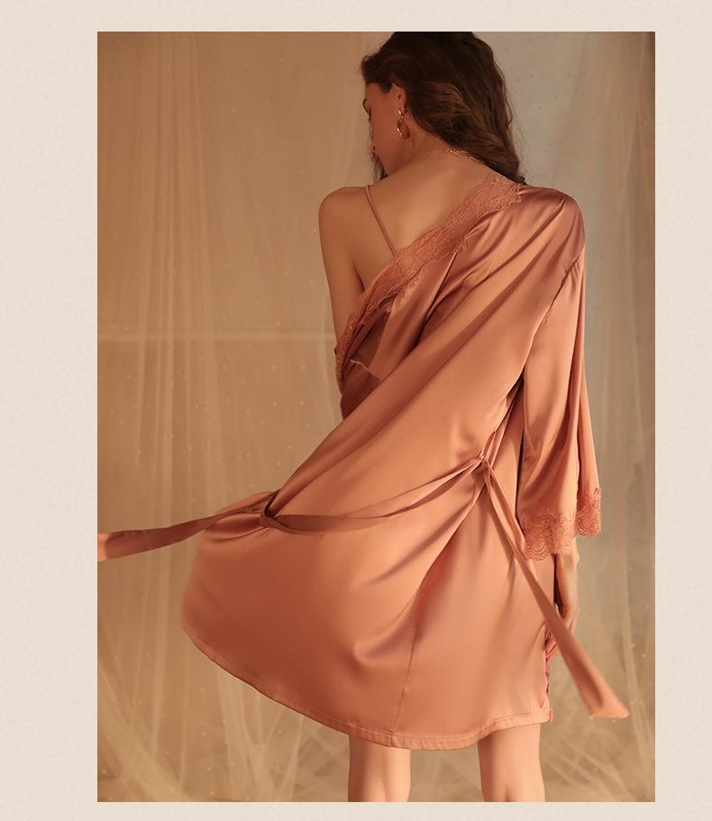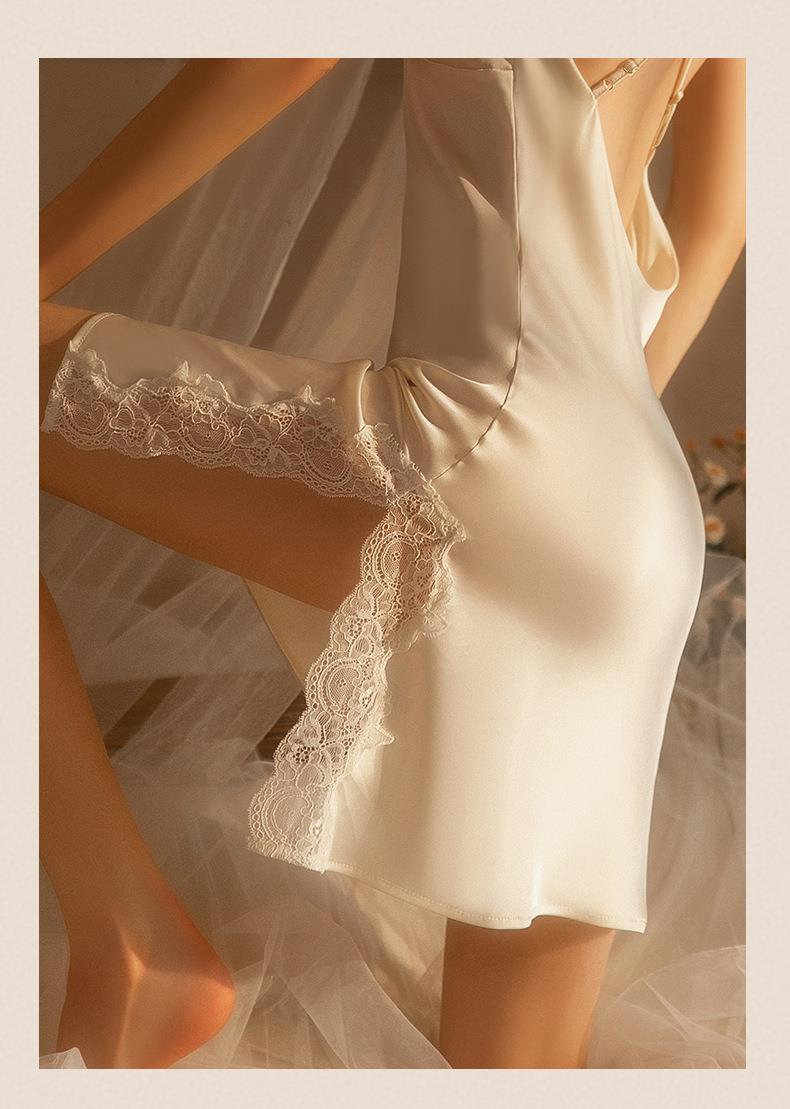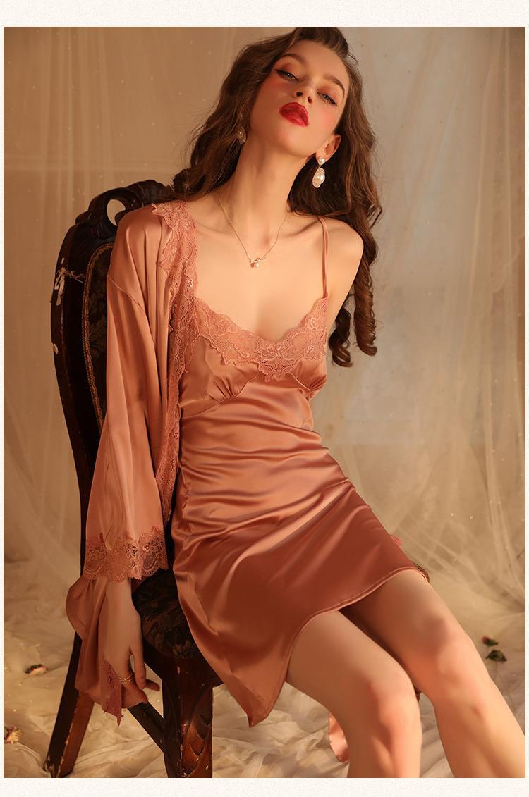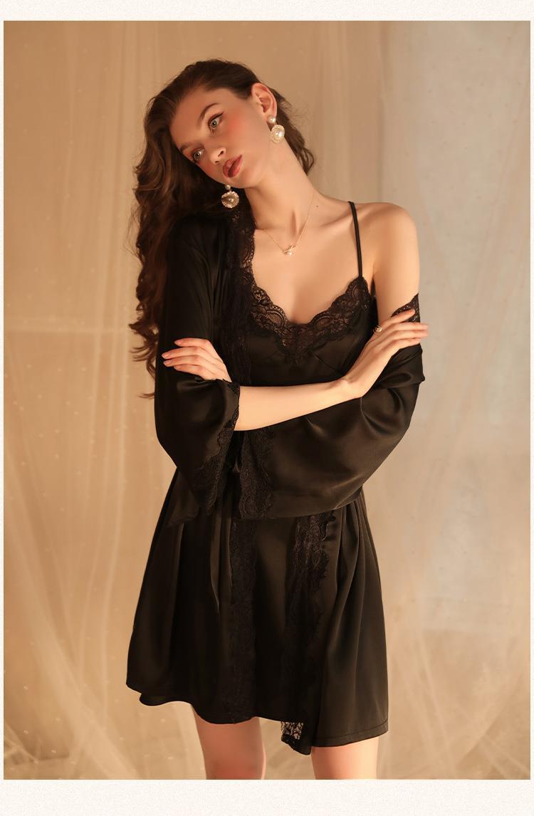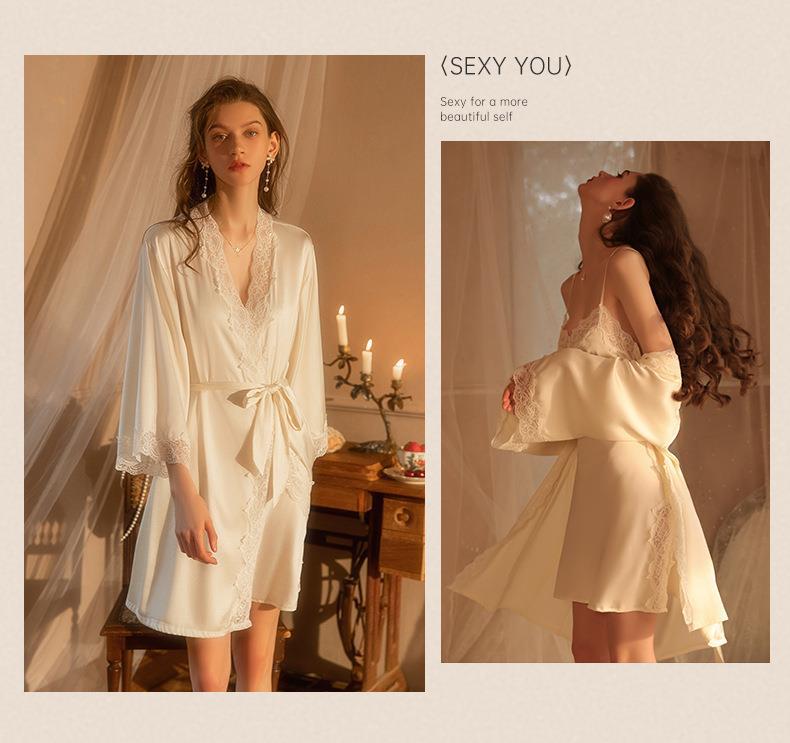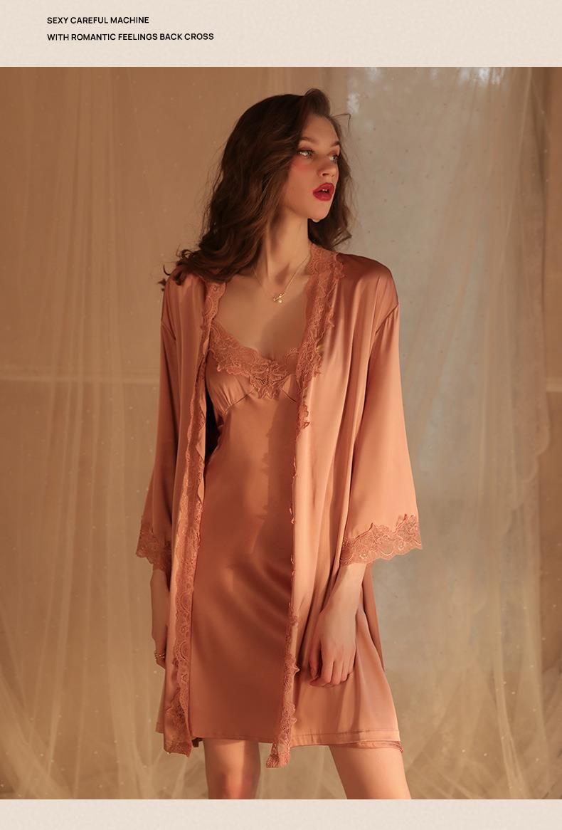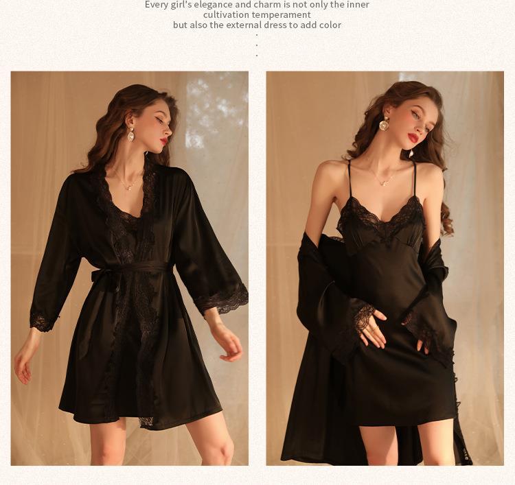 Pijama Sexy para Mujer Cinta de Hielo Almohadilla para el Pecho Encaje Deseo Puro 2023 Nuevo Camisón con Tirantes Conjunto de Dos Piezas Ropa para el Hogar