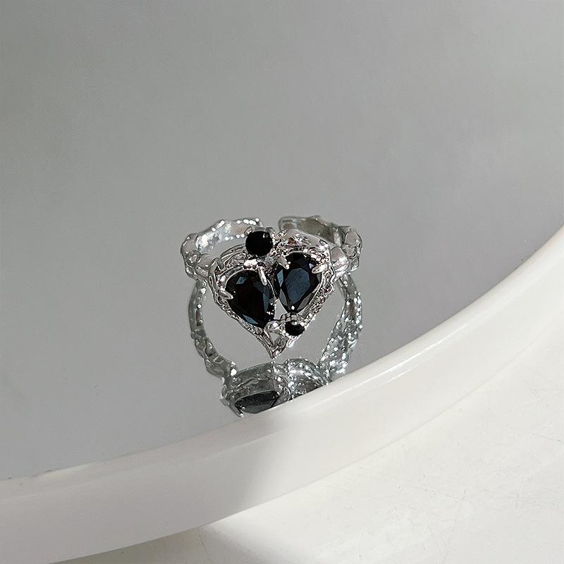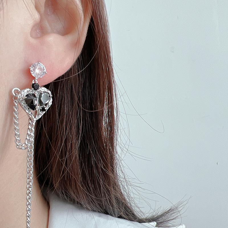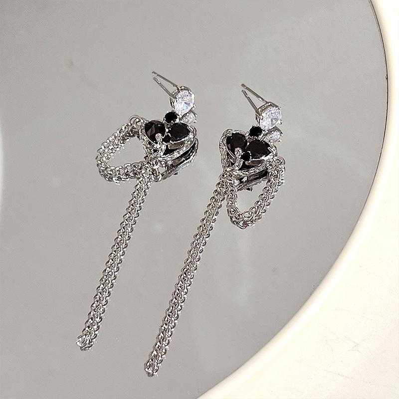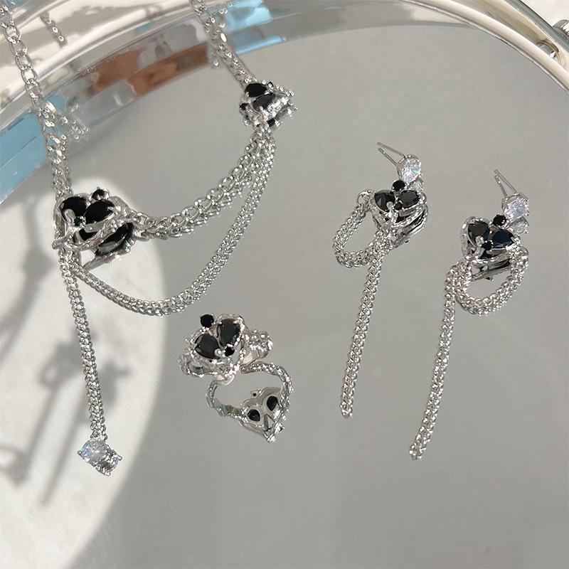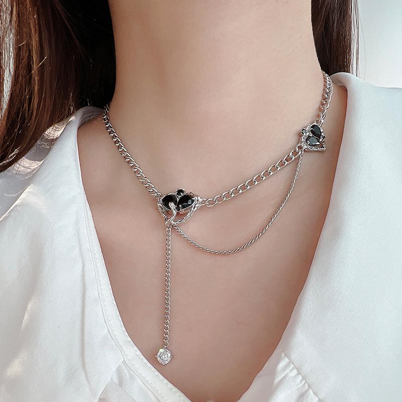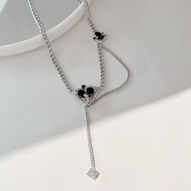 Collar con colgante de amor negro con borlas, diseño de nicho, cadena para clavícula y anillo para mujer.