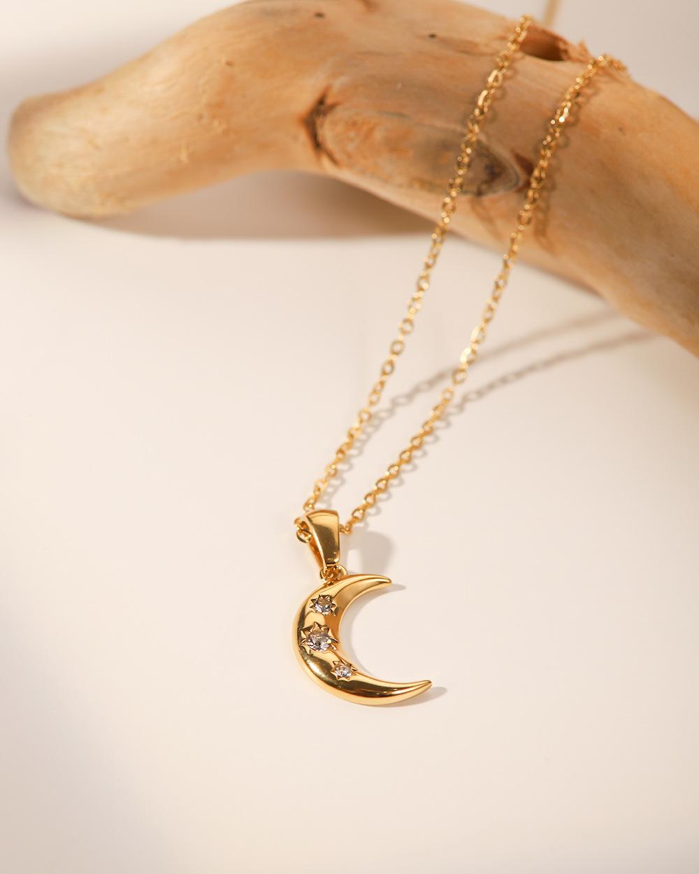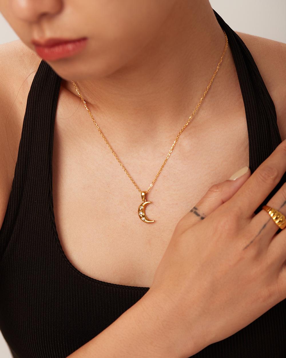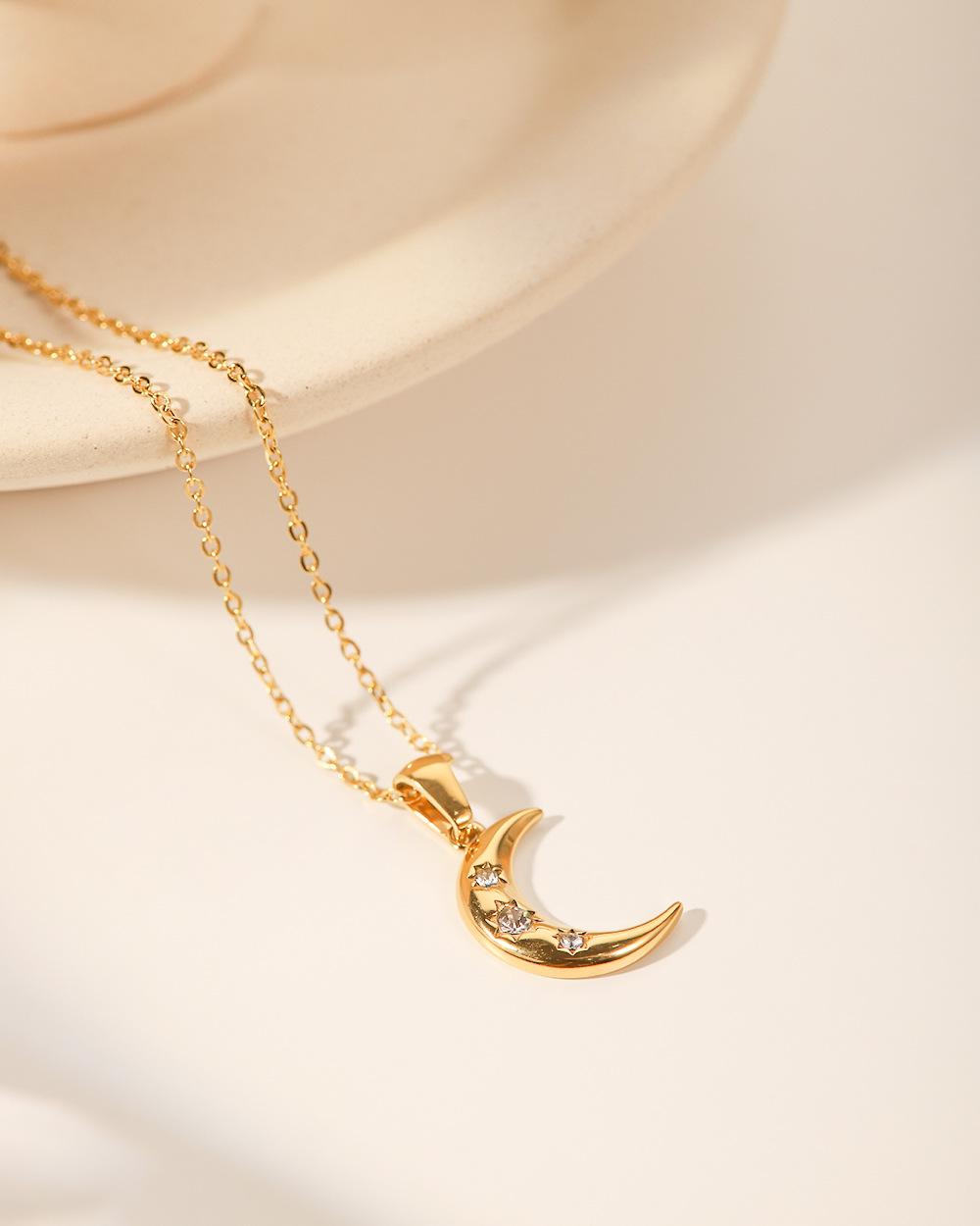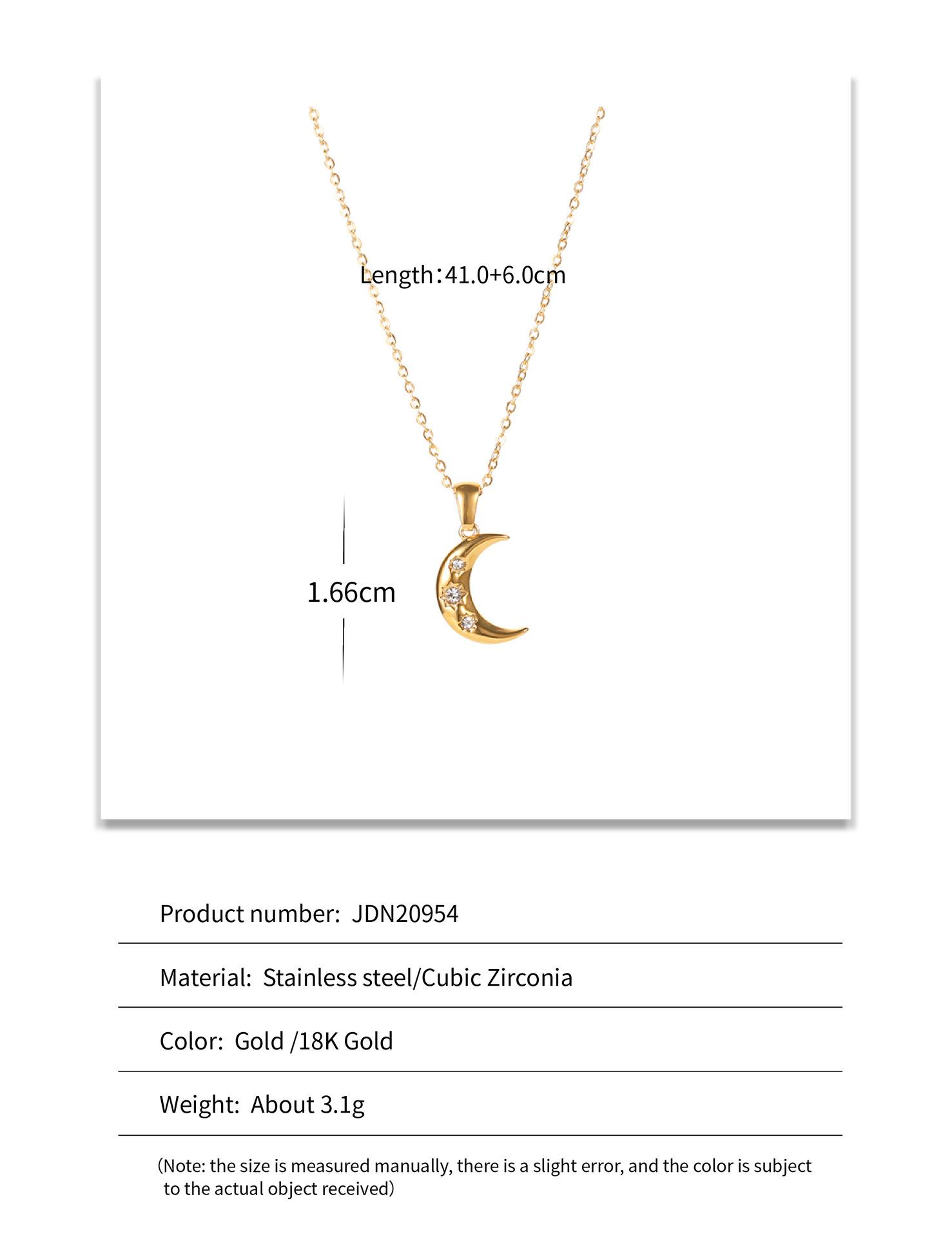 Collar rojo de red INS de moda europea y americana, de acero inoxidable chapado en oro de 18 quilates con incrustaciones de tres circonitas, colgante de luna para mujer
