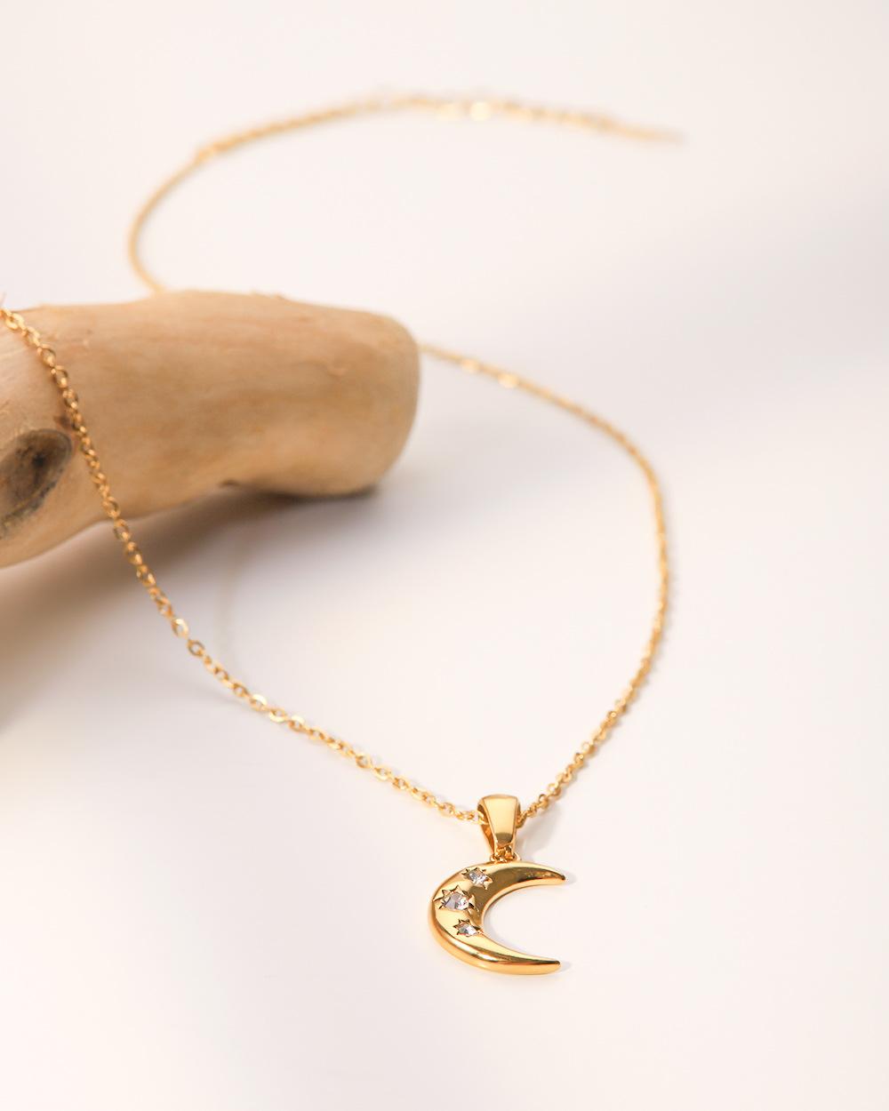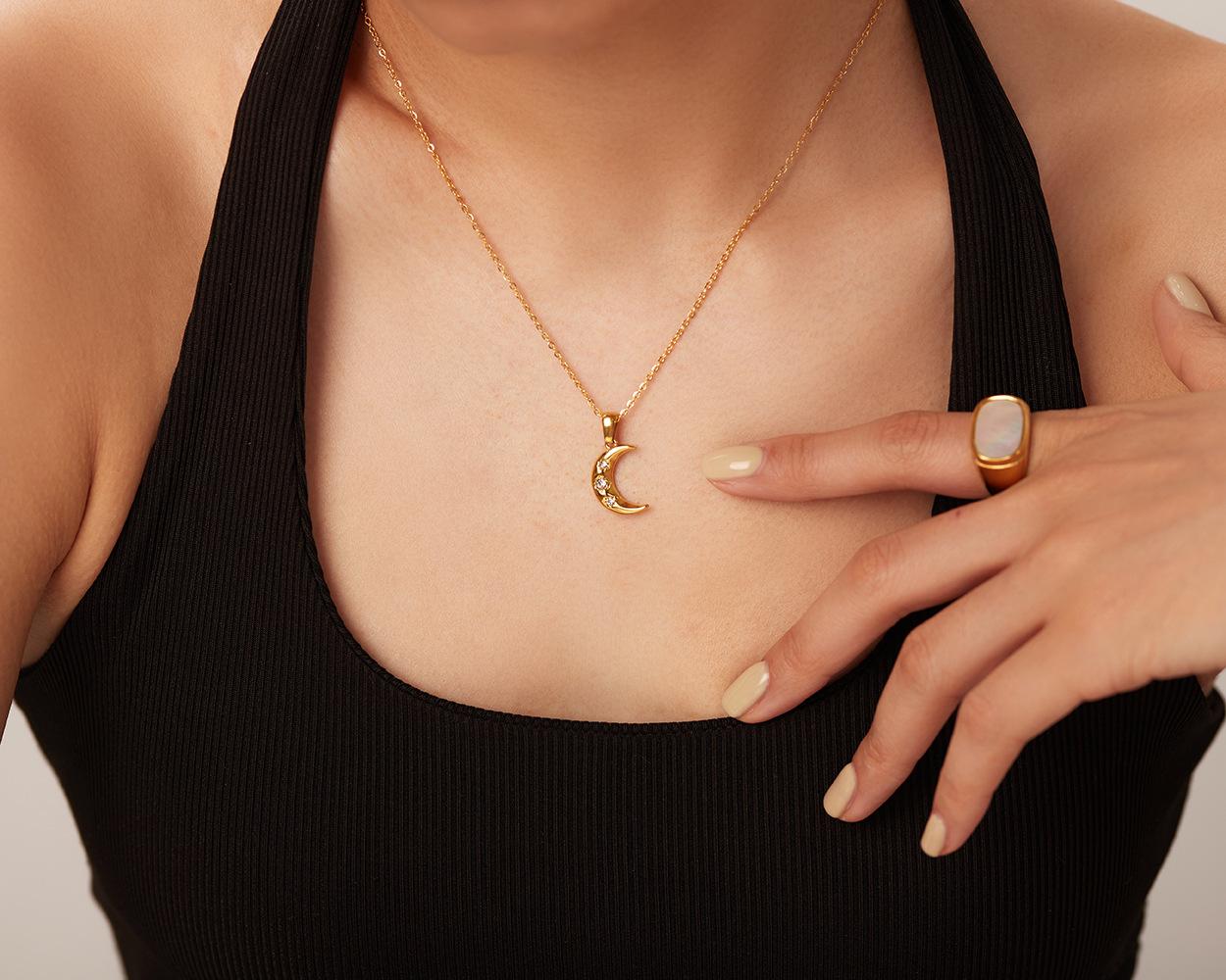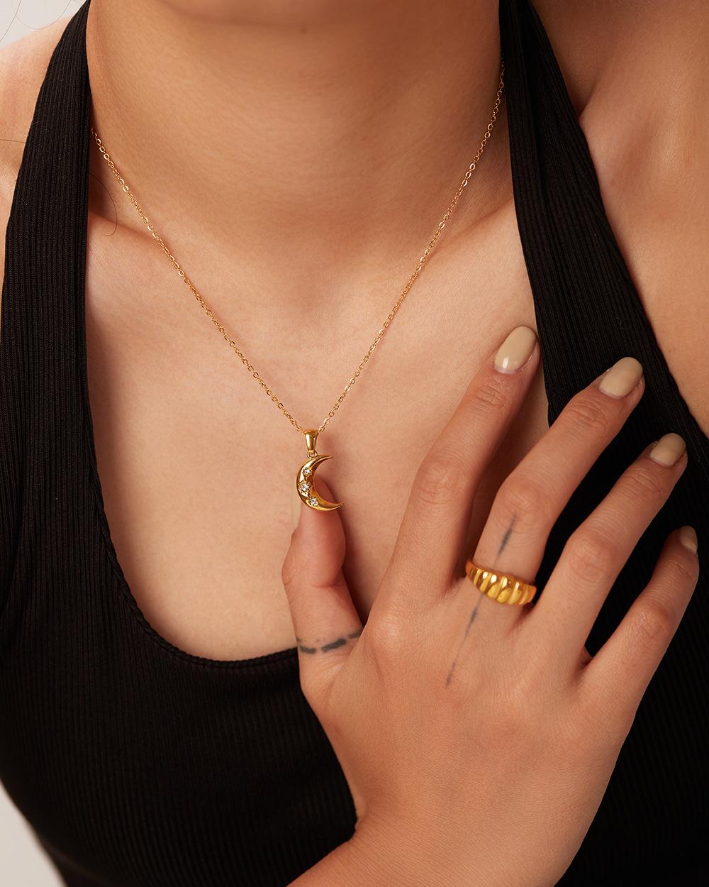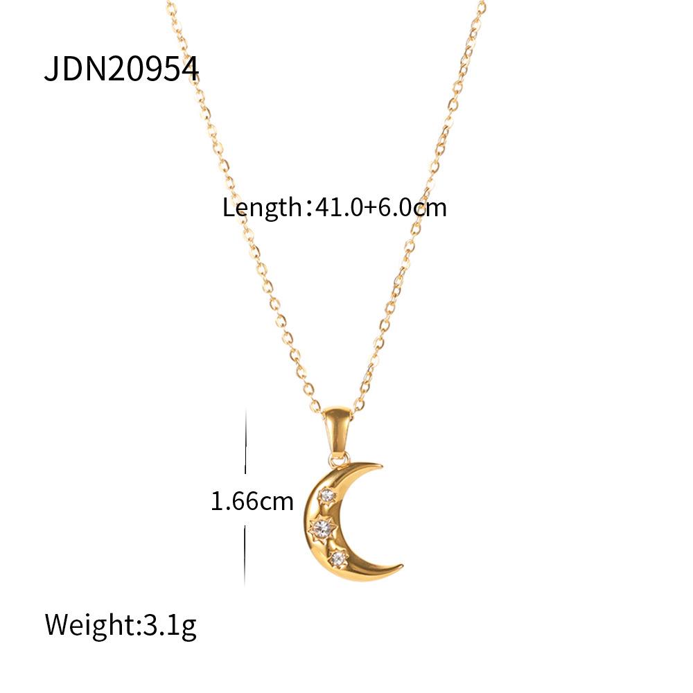 Collar rojo de red INS de moda europea y americana, de acero inoxidable chapado en oro de 18 quilates con incrustaciones de tres circonitas, colgante de luna para mujer