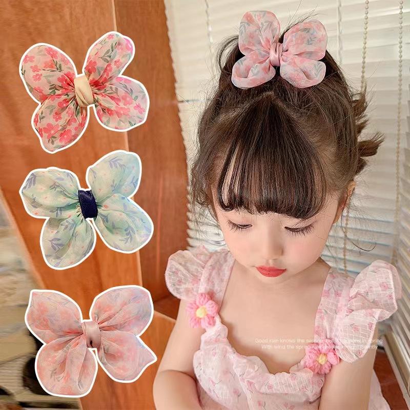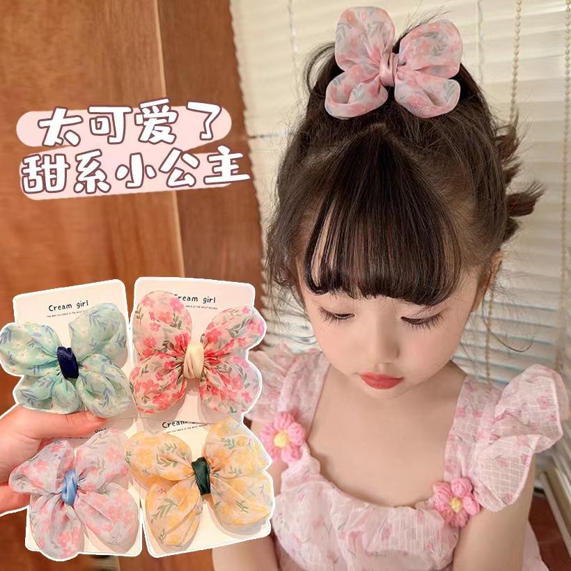 Horquilla con lazo floral para niña, de gasa, estilo princesa de verano, bonita horquilla para bebé, tocado Sen