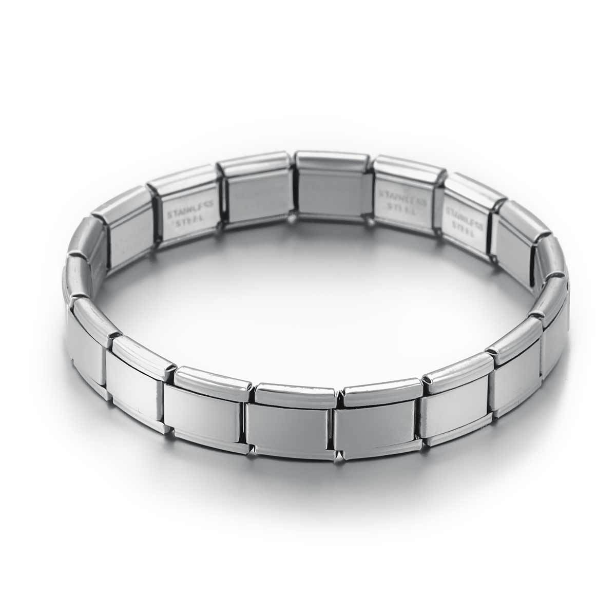 Pulsera de acero inoxidable con módulo italiano y costura elástica cuadrada, pulsera de acero de titanio, cadena con correa, pulsera para hombre y mujer.