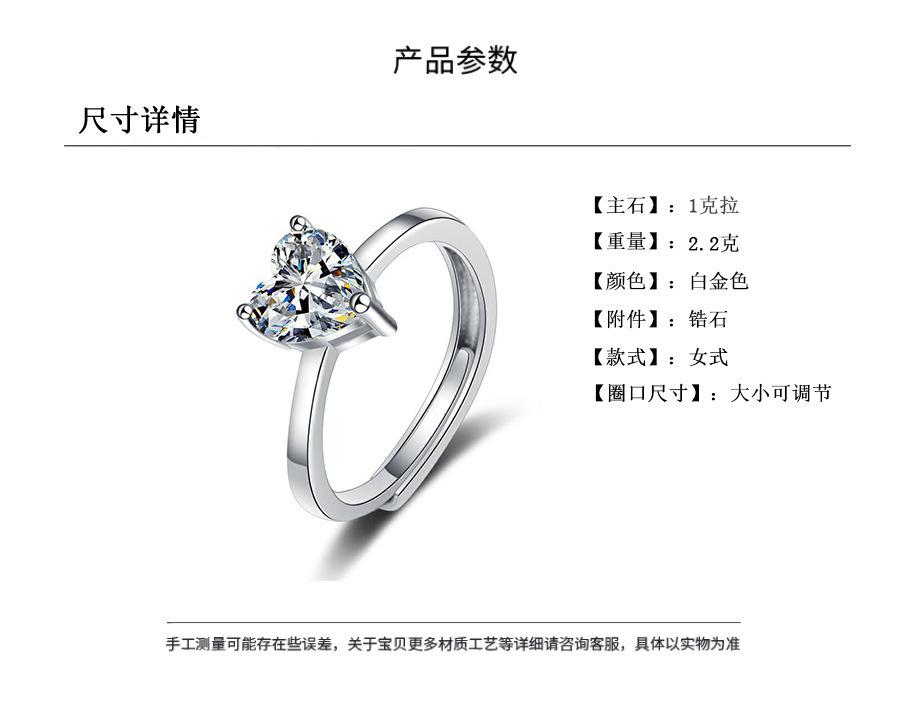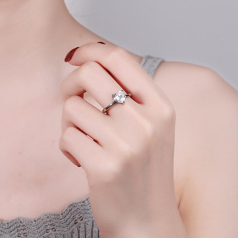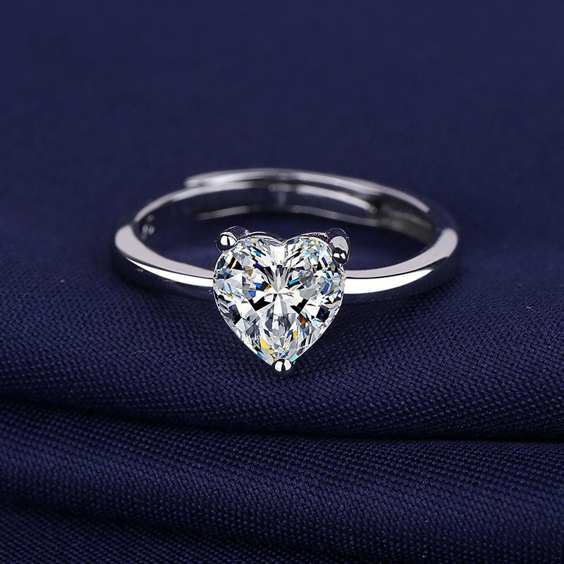 Anillo de Diamantes Mosan Rojo de Internet para Mujer con Diamante Simulado en Forma de Corazón, Anillo para Pareja Abierto, Anillo de Boda al por Mayor, Anillo con Viento Europeo y Americano