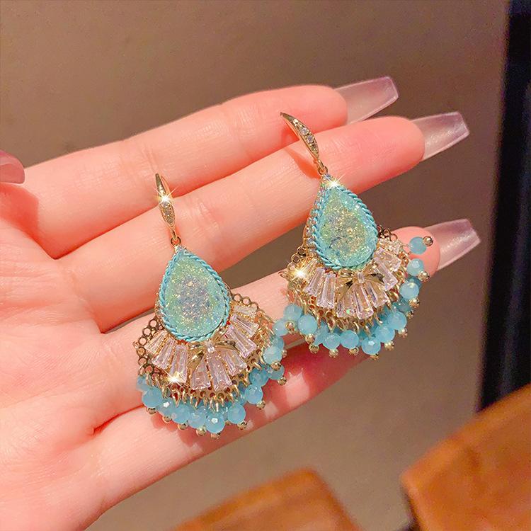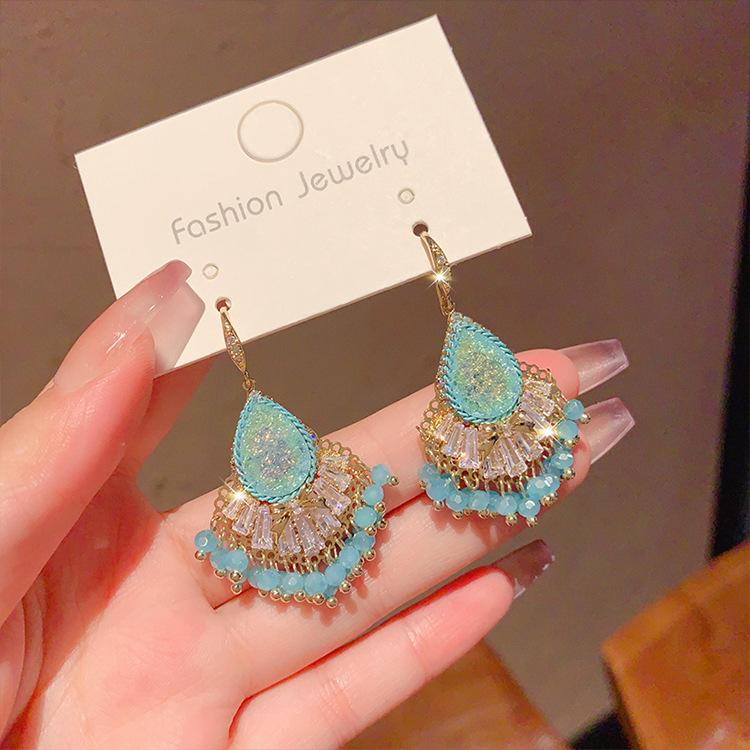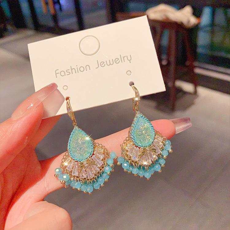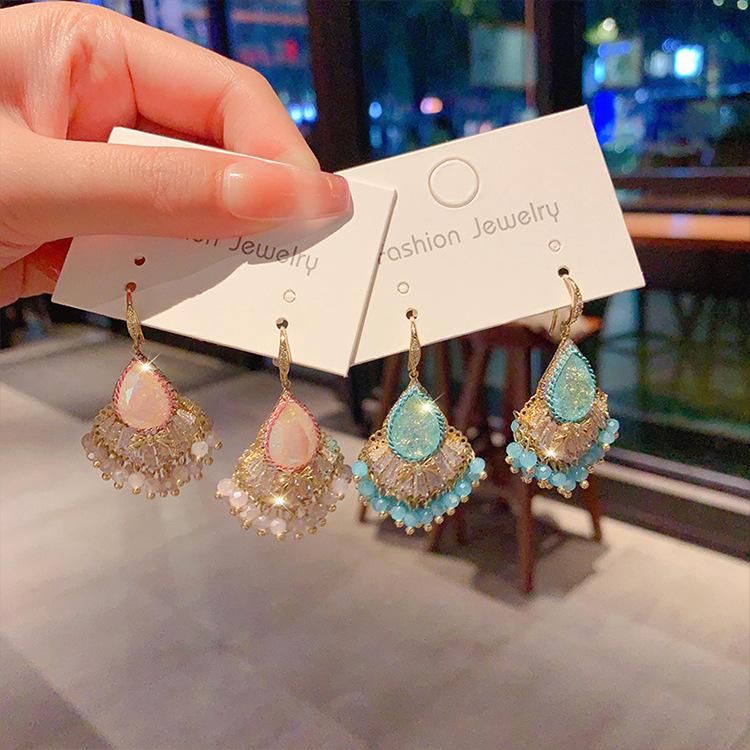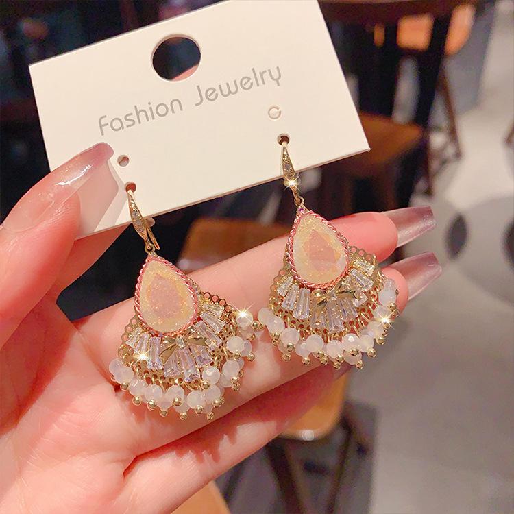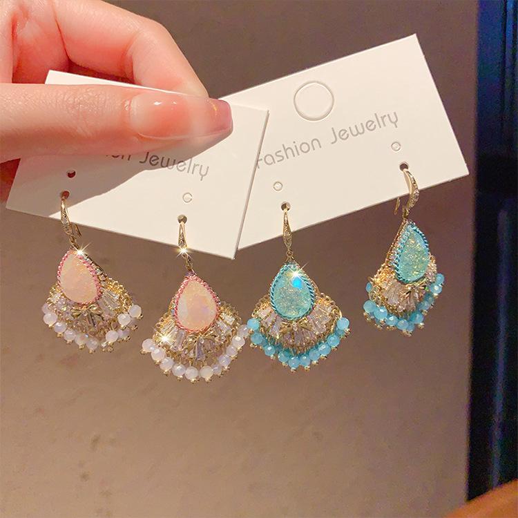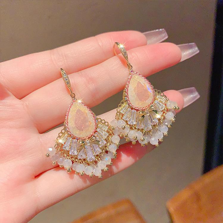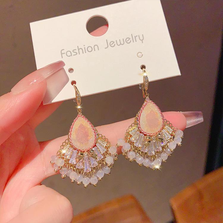 Exquisitos pendientes de lazo de cristal con forma de gota de diamantes de imitación con incrustaciones de diseño de nicho dulce, pendientes de moda que combinan con todo.