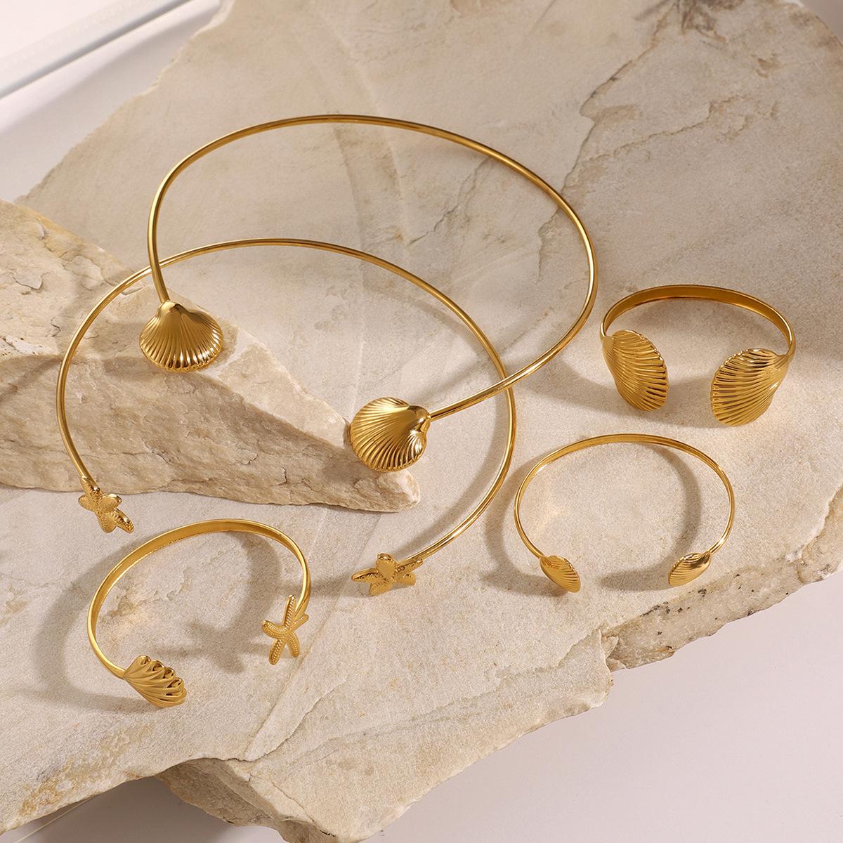 Pulsera de apertura simple con vieira pequeña de acero inoxidable en oro de 18 quilates, estilo retro transfronterizo de Europa y Estados Unidos, fabricantes de joyería de tendencia al por mayor