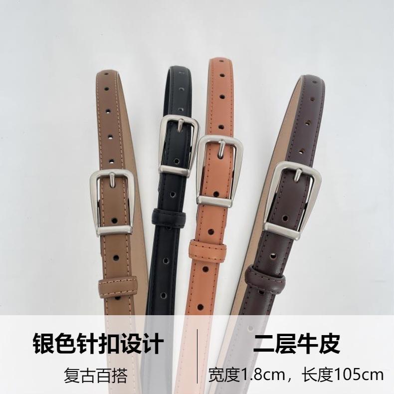 Cinturón fino de piel de vaca para mujer, nuevo cinturón pequeño versátil de nicho con falda a juego retro a la moda para jeans, invierno de 2023