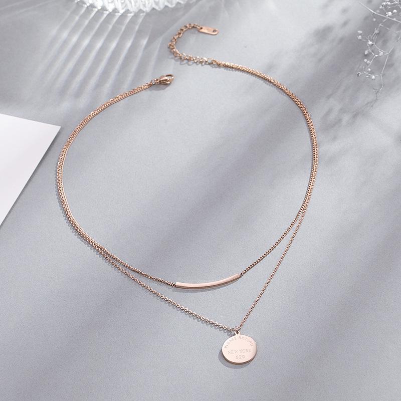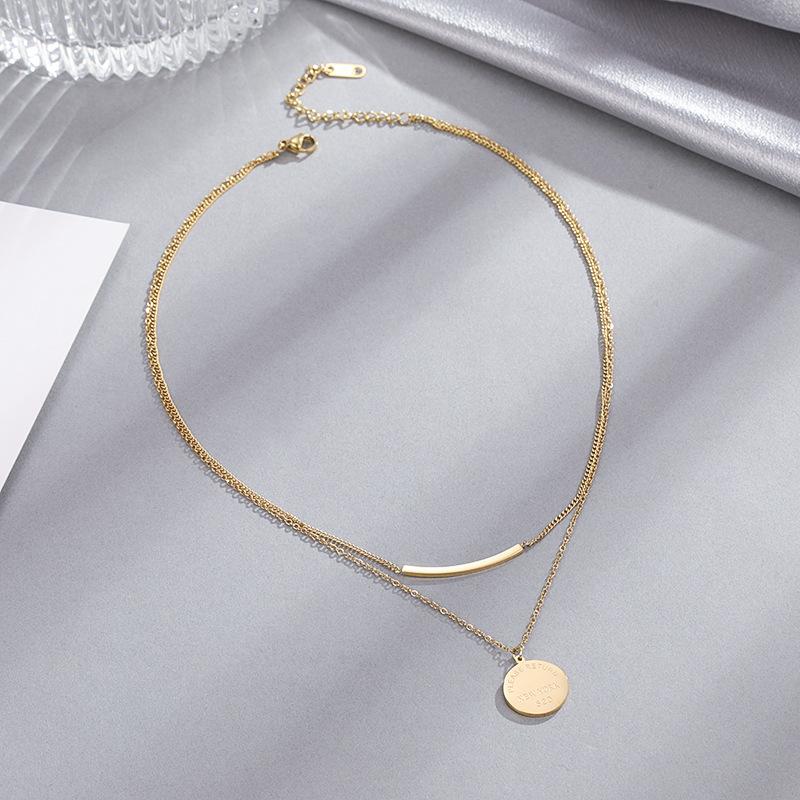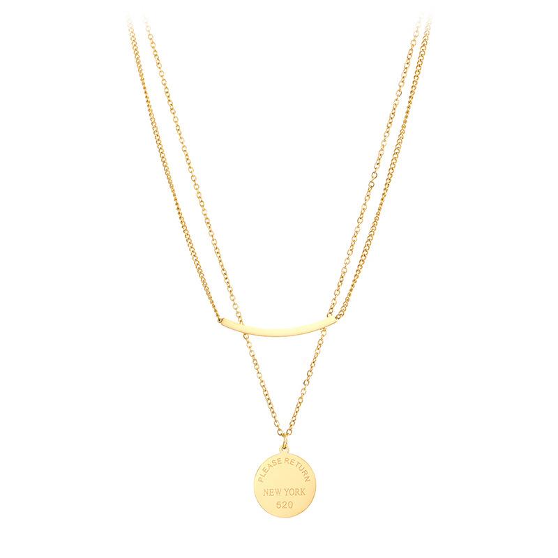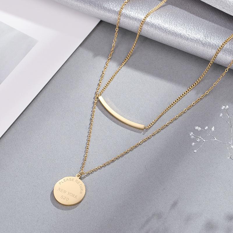 Collar de doble capa con sonrisa para mujer, de acero de titanio y oro, redondo, apilado, marca 520, cadena de clavícula con letras geométricas, regalo de cumpleaños