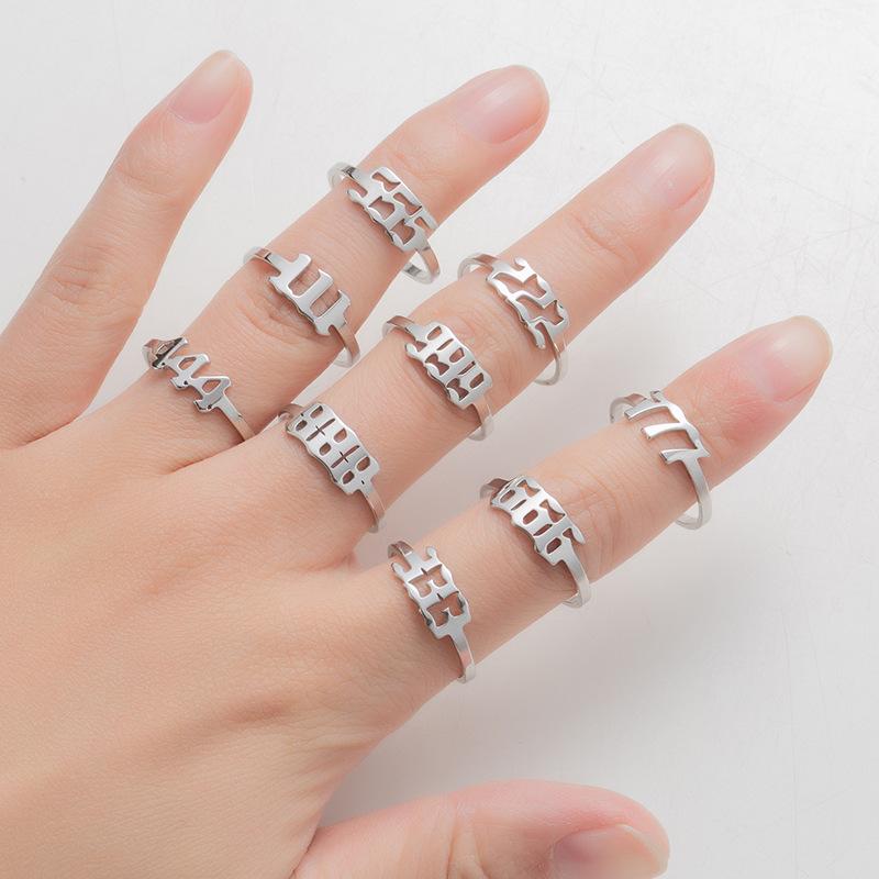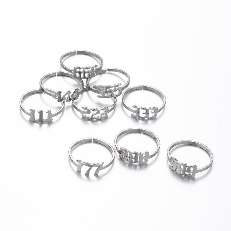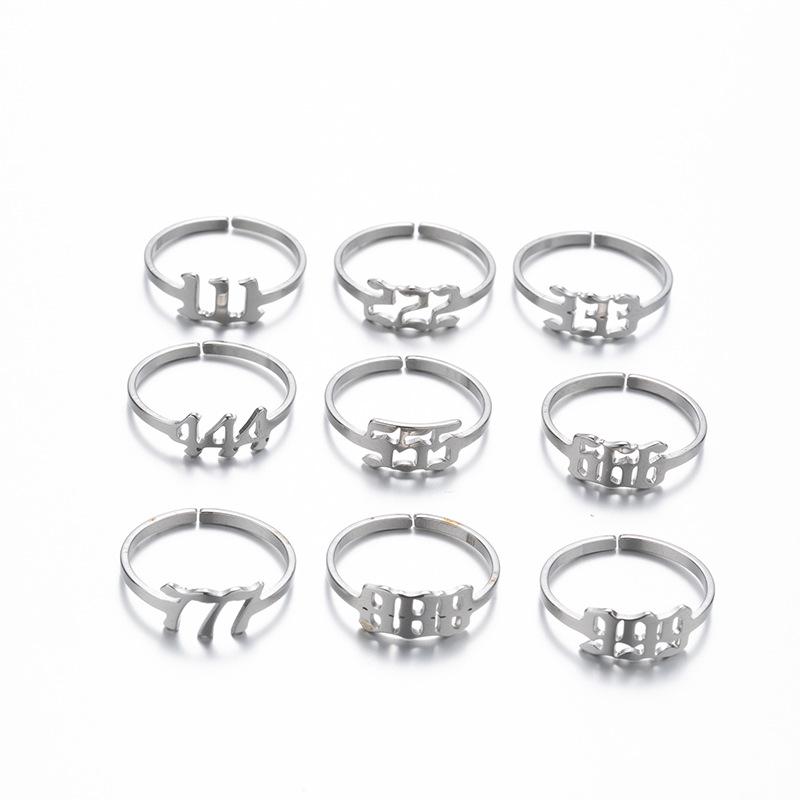 Anillo de números de Amazon 111-999 para hombre y mujer de acero inoxidable número de ángel anillo abierto ajustable para hombre y mujer