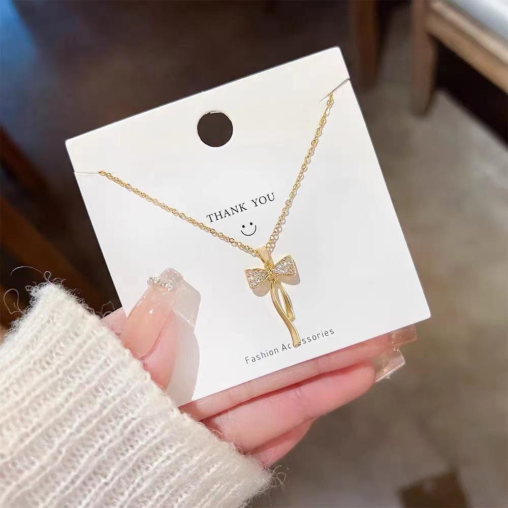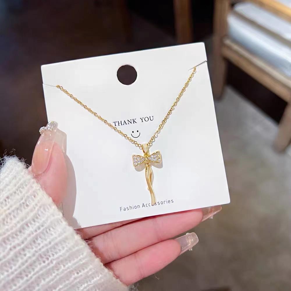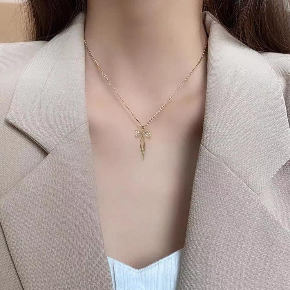 [Acero de titanio con baño de oro auténtico] Collar con colgante micro de lazo Super Flash, diseño de nicho, cadena de clavícula al por mayor