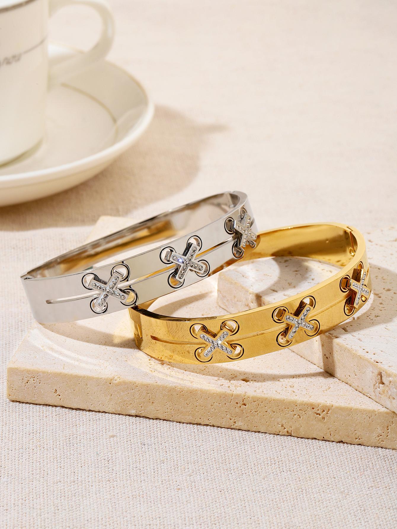 Compra Pulsera de acero de titanio con personalidad exagerada, diseño de tendencia, pulsera de diamantes con personalidad cruzada transfronteriza entre Europa y Estados Unidos, joyería al por mayor al por mayor en Joom.pro