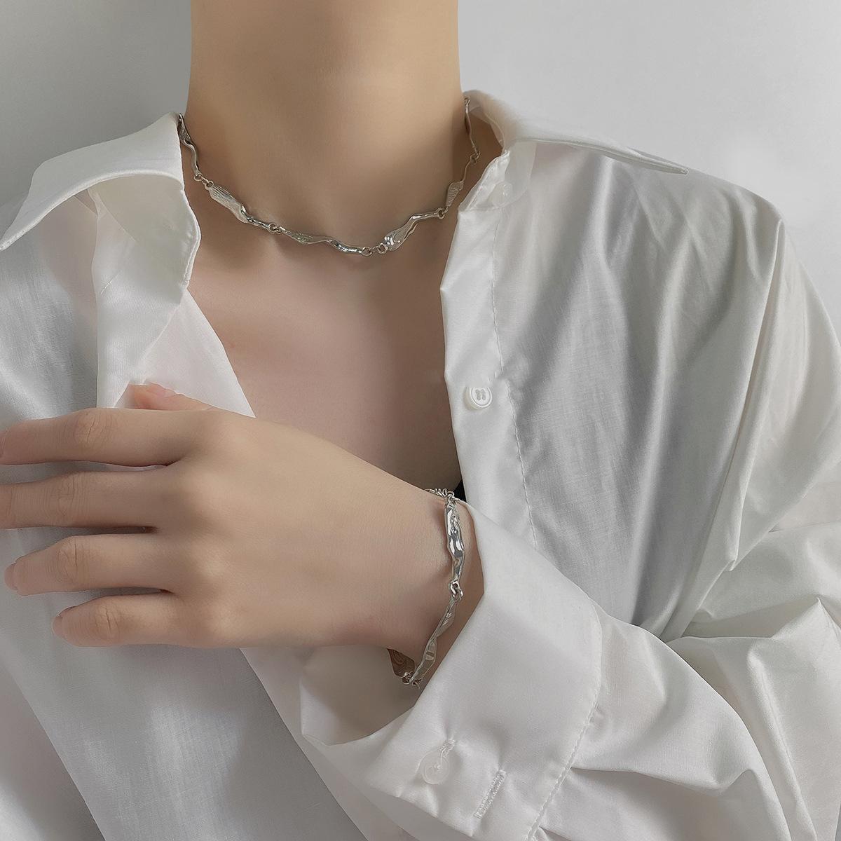 Nueva pulsera de collar irregular de estilo coreano de moda para mujer, ligera, de lujo, de alta gama, con cadena de clavícula, elegante, de metal que combina con todo, artículo de celebridad de Internet.