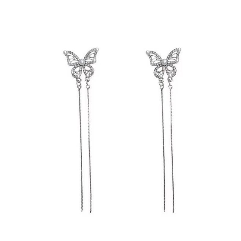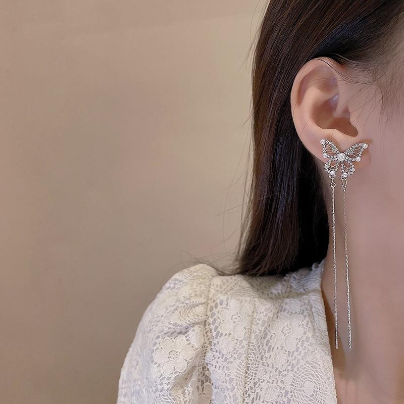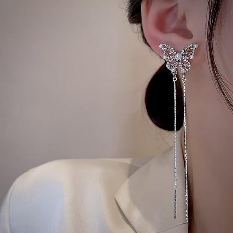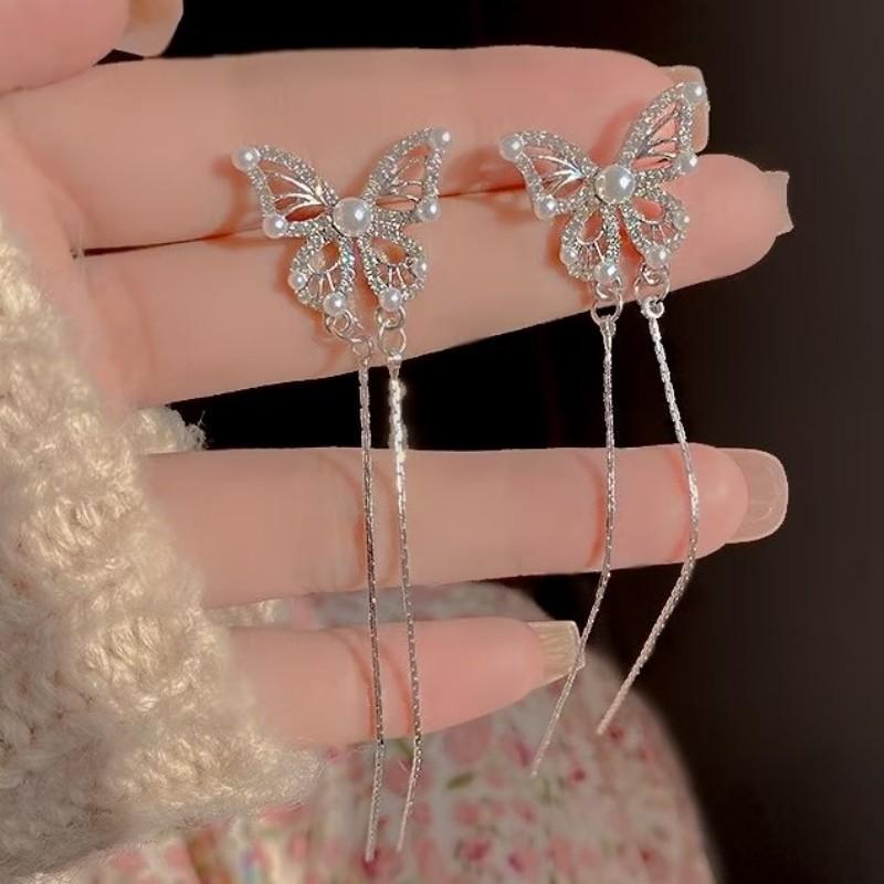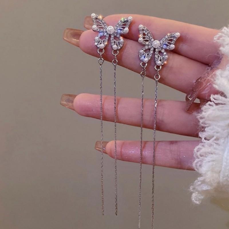 Pendientes largos elegantes con borlas de mariposa y perlas de Super Fairy, pendientes de moda muy dulces y femeninos
