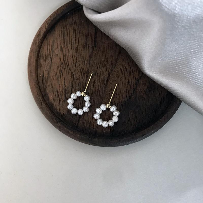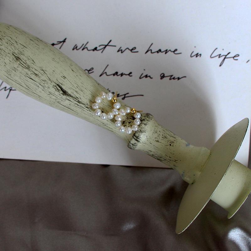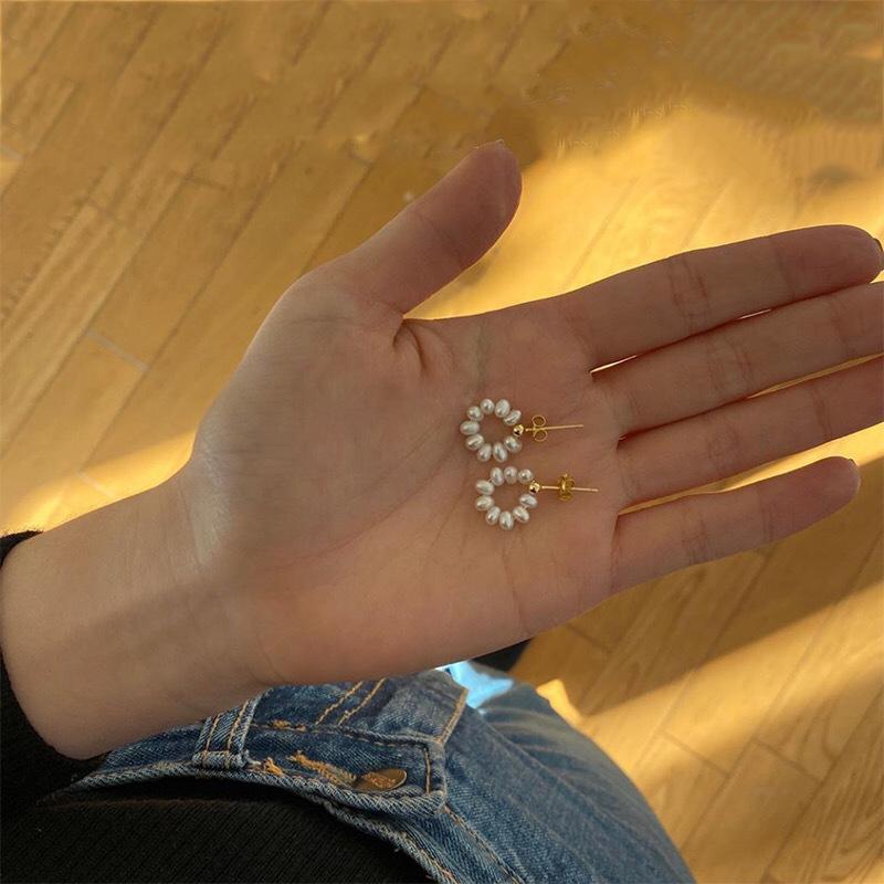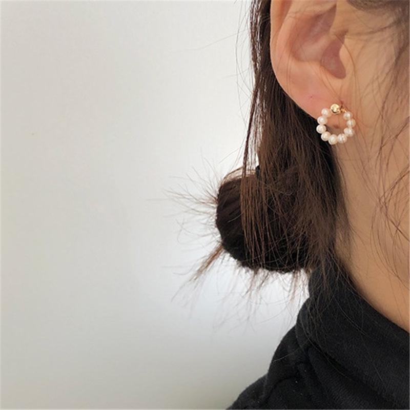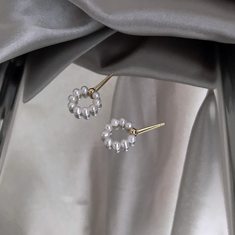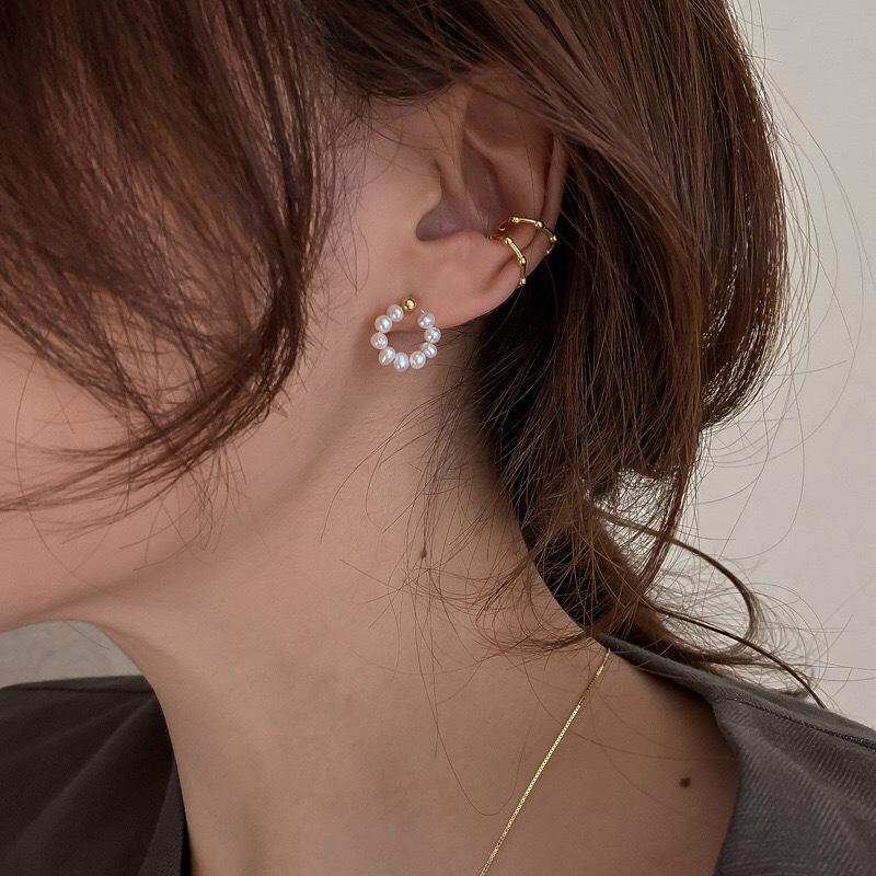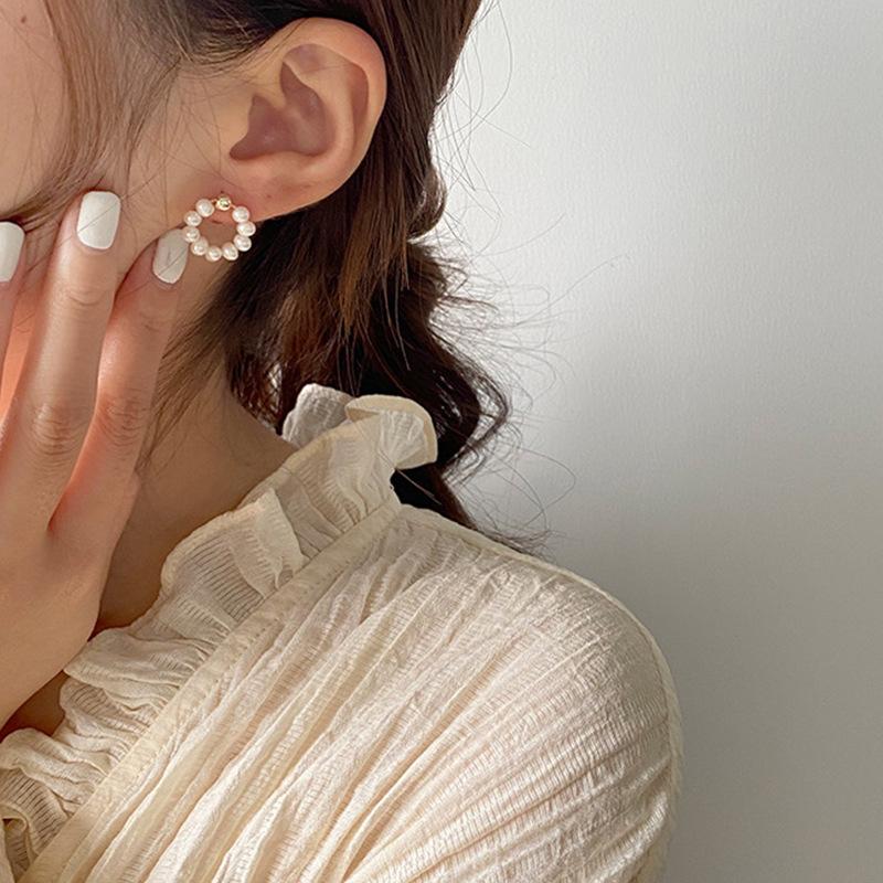Las pequeñas perlas brillantes se convierten en pequeños pendientes, que son el adorno de tu atuendo de hoy.