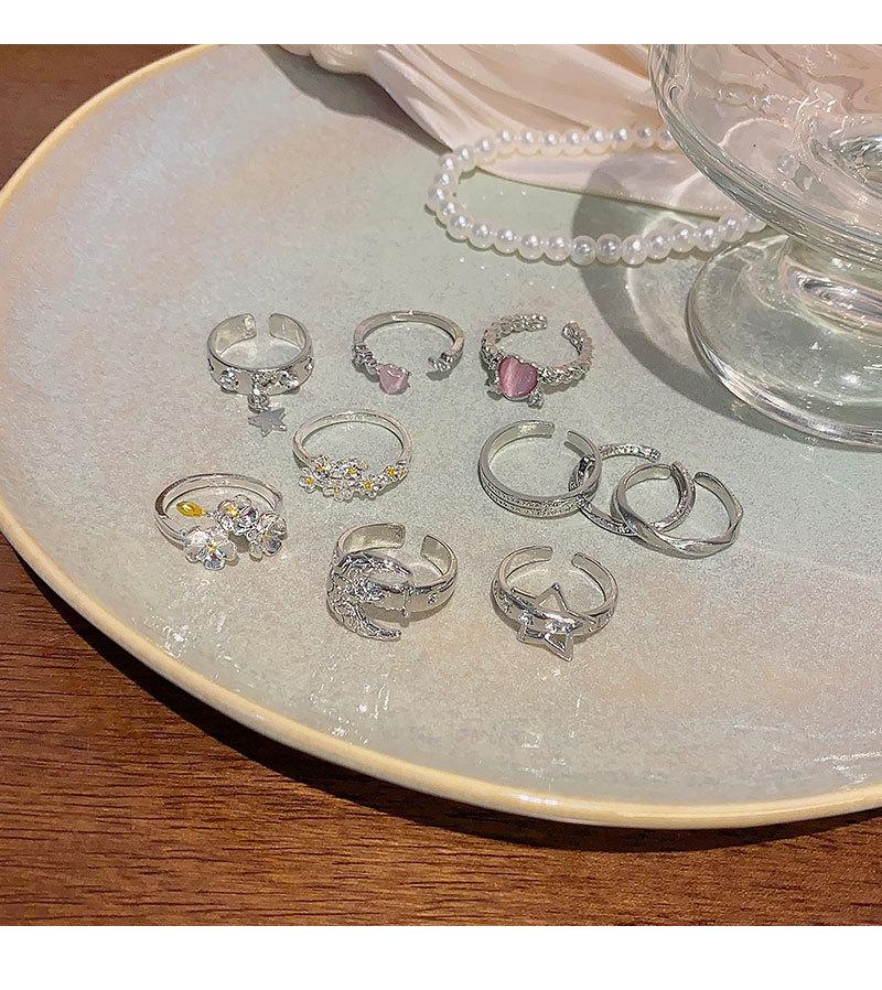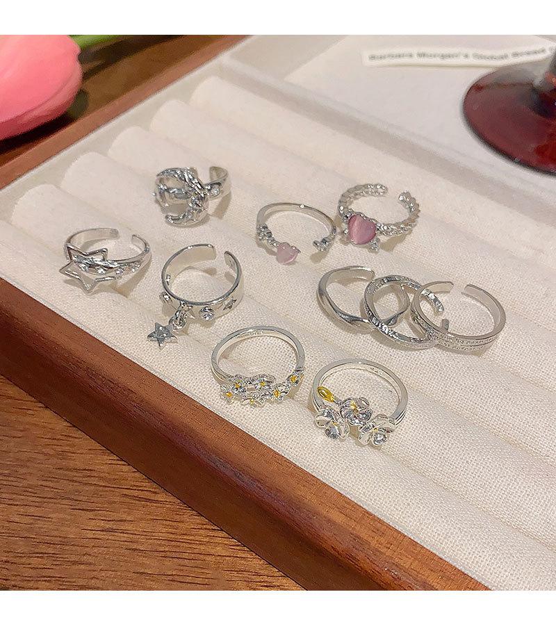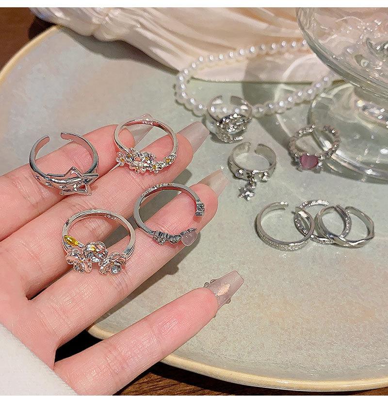 | |  | Anillo de circonita plateada estilo ins para mujer, ligero, de lujo, de alta gama, abierto, versátil, con temperamento, joyería de mano al por mayor. | | | |