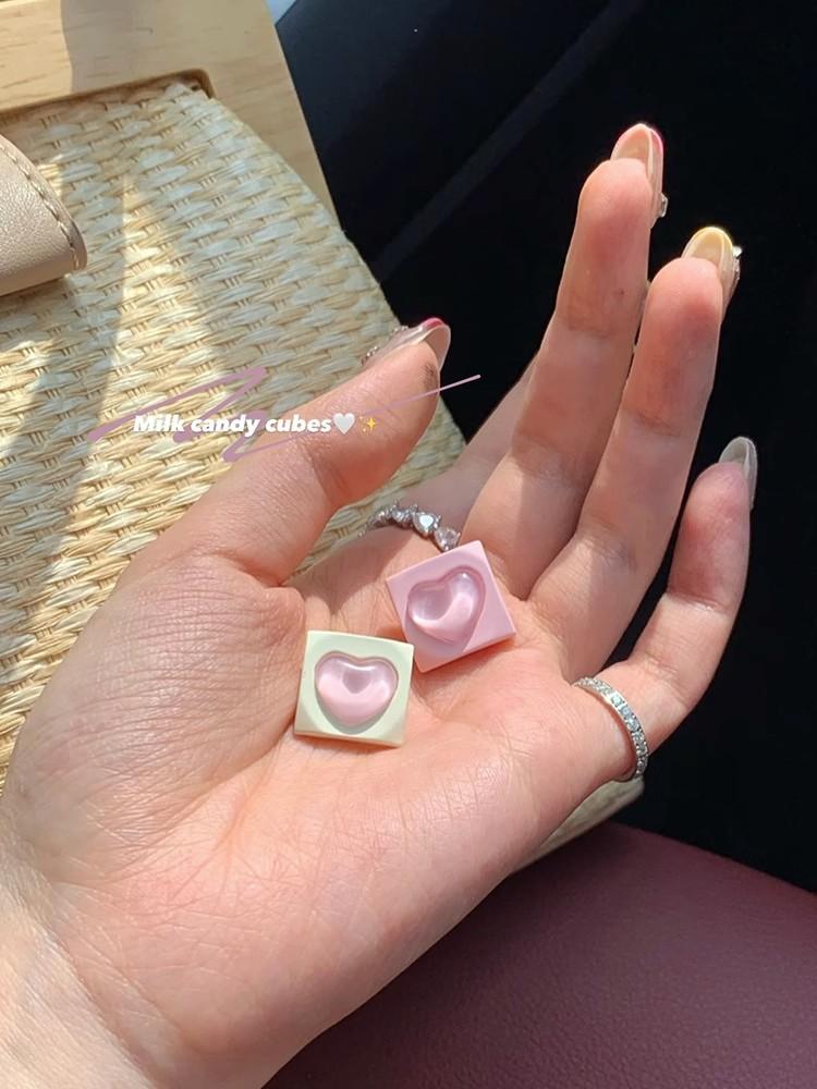 Pendientes de amor cuadrados asimétricos, pendientes de nicho, diseño para mujer, sentido avanzado, joyería para las orejas, clip para las orejas