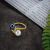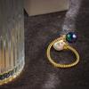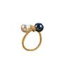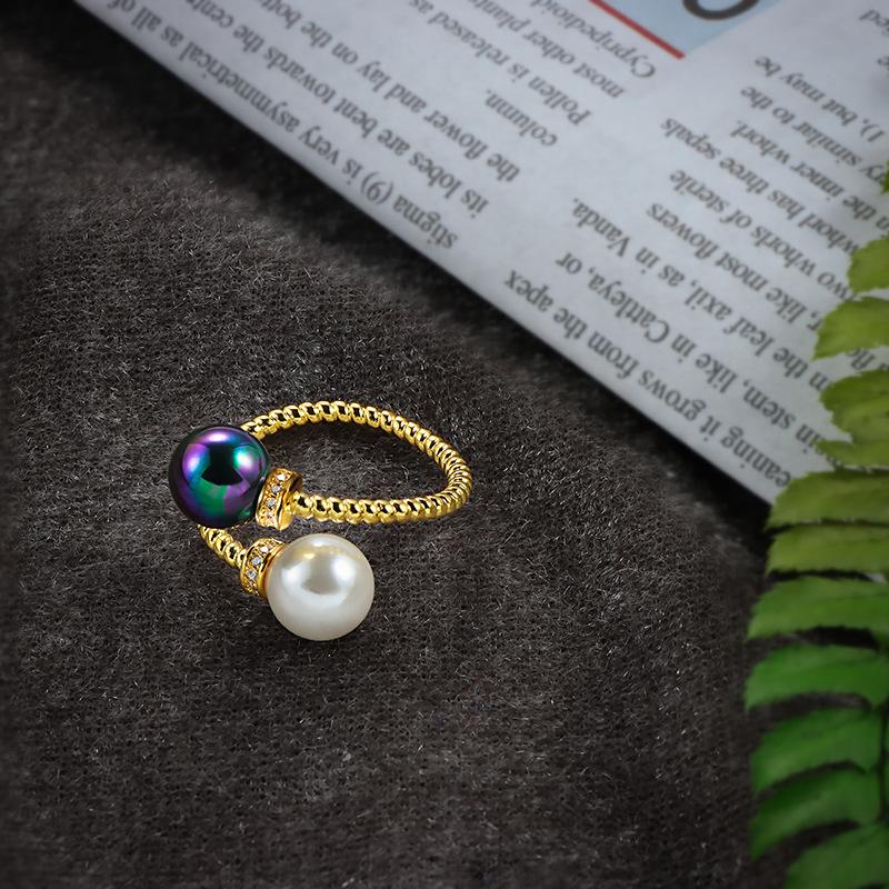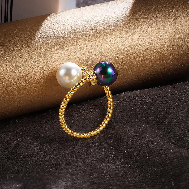 Anillo de perla bicolor dorado con diseño de viento de mediados de la antigüedad, ligero y moderno, de alta gama, combinable con todo.
