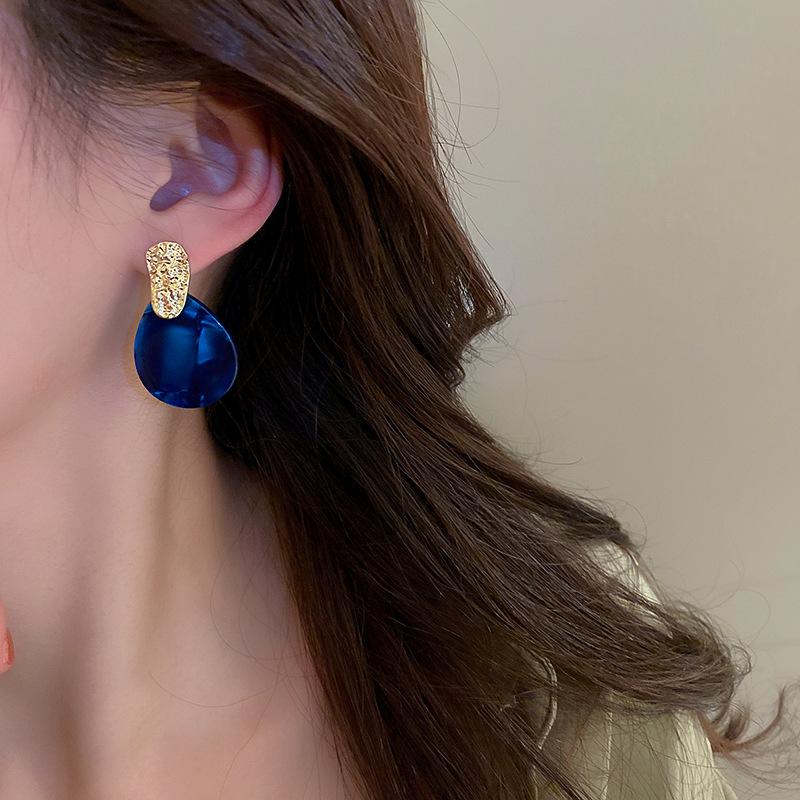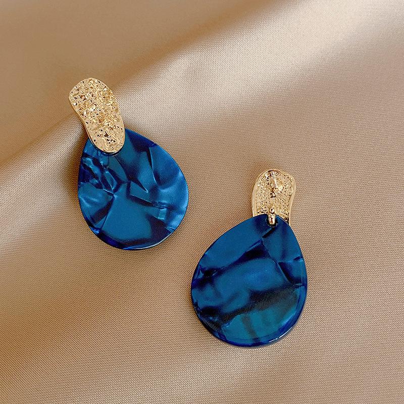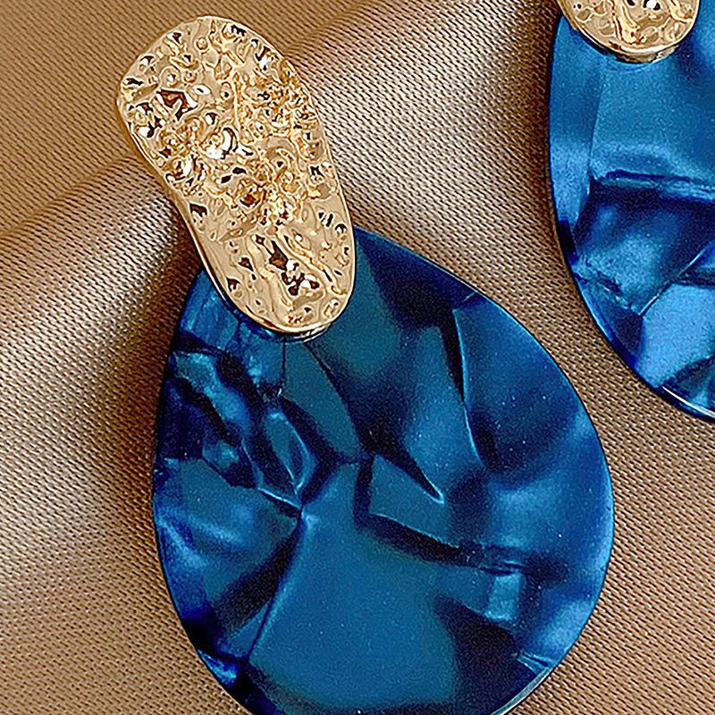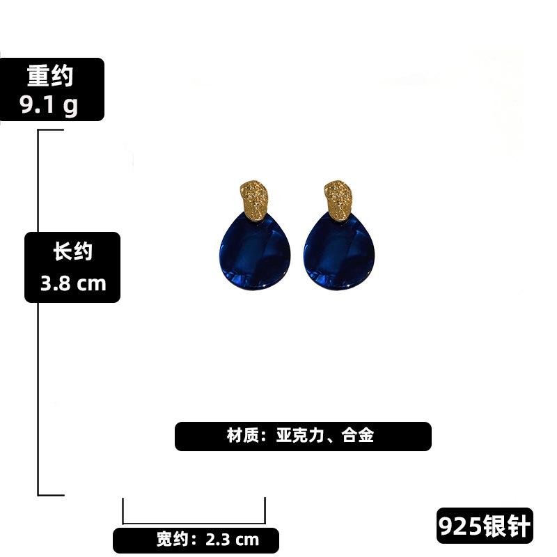 Pendientes de gota de agua plisados de acrílico vintage con aguja de plata, pendientes geométricos de temperamento de alta gama de moda europea y americana para mujer