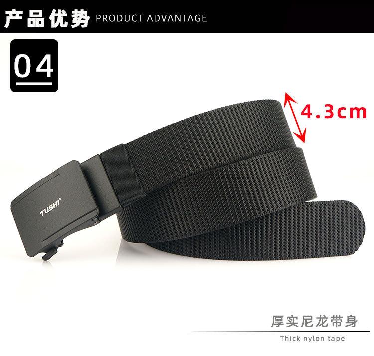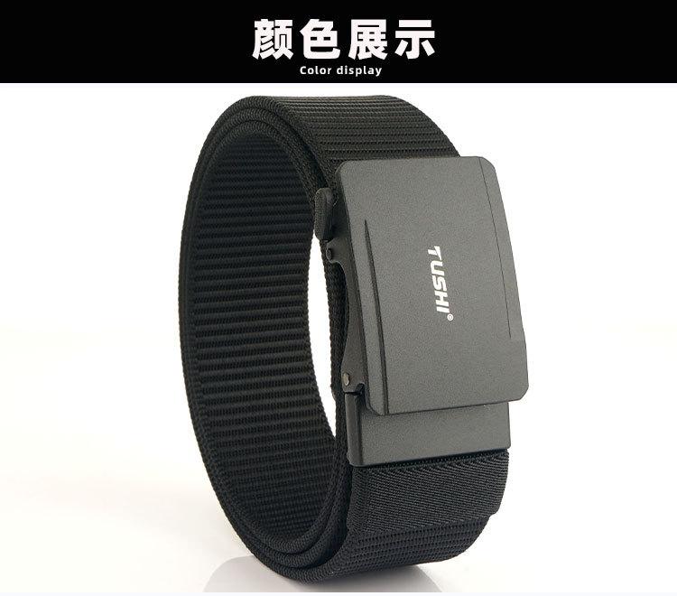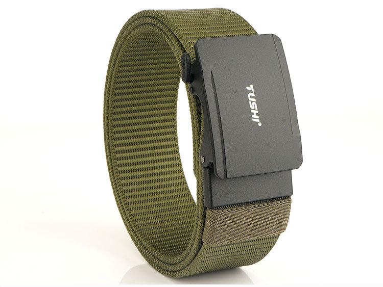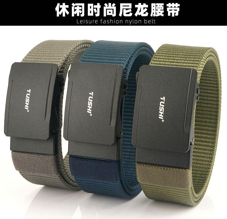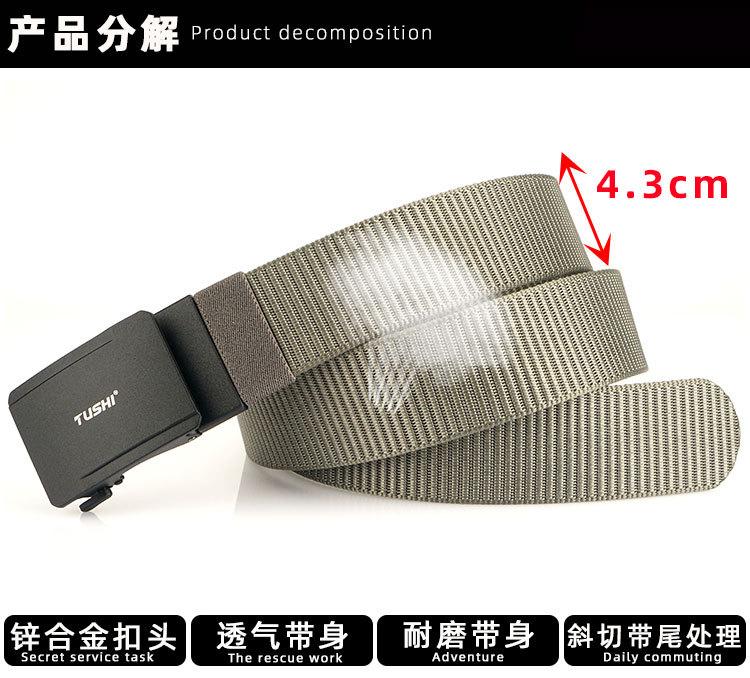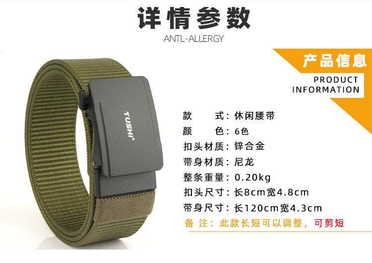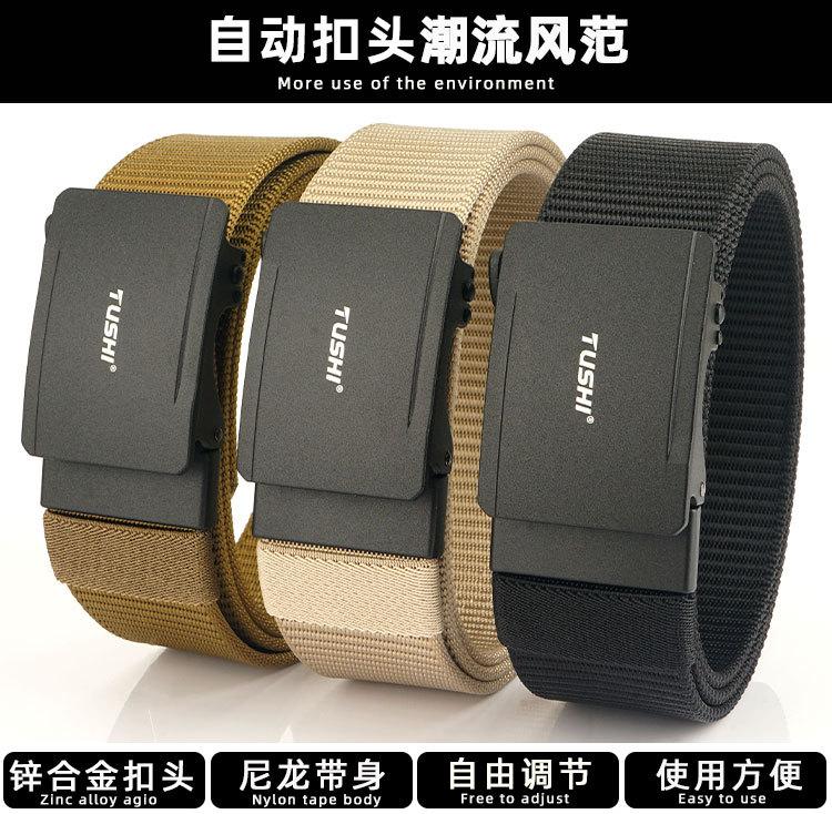 Cinturón táctico de nailon para hombre, con hebilla automática y sin dientes, de lona sencilla, para entrenamiento militar, ligero y de lujo.