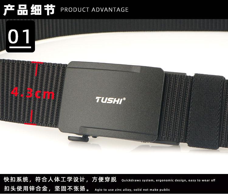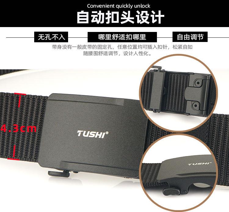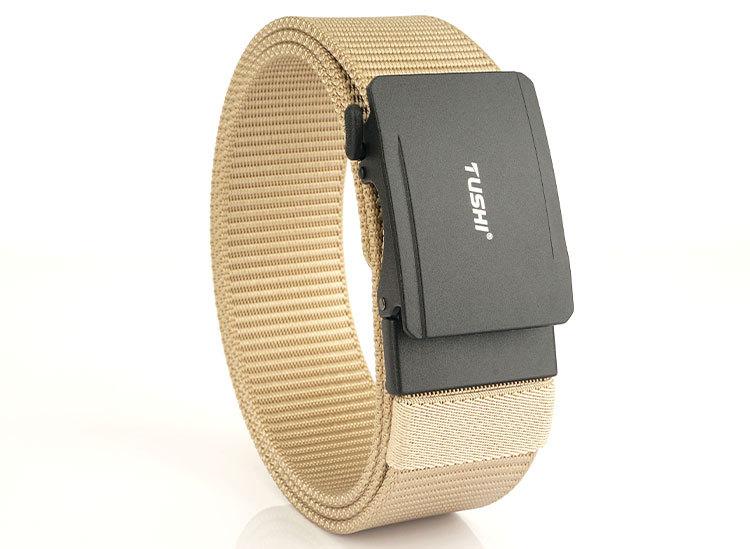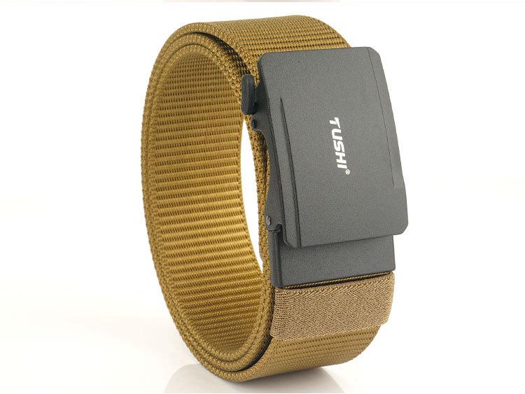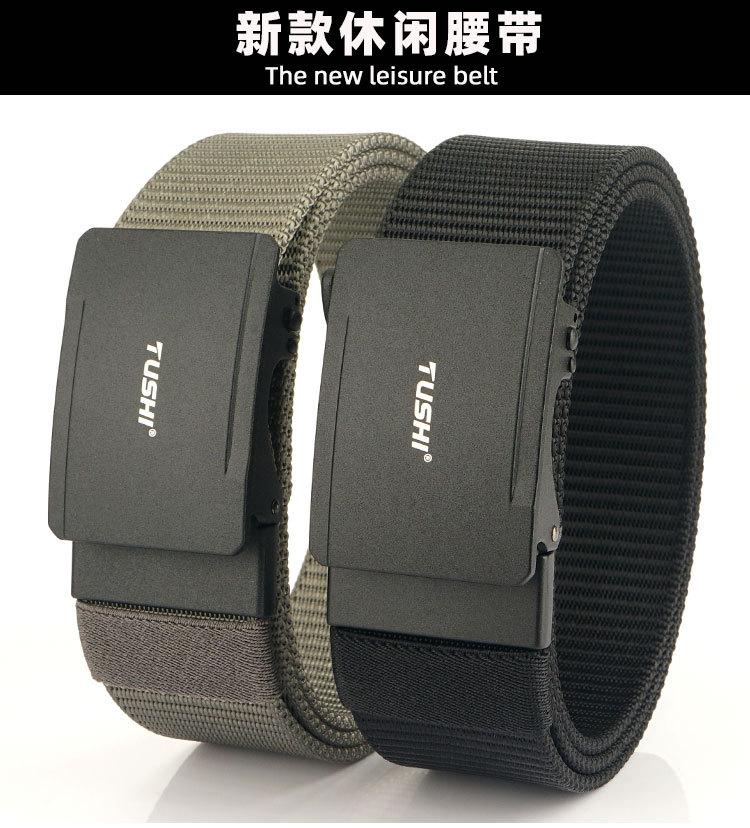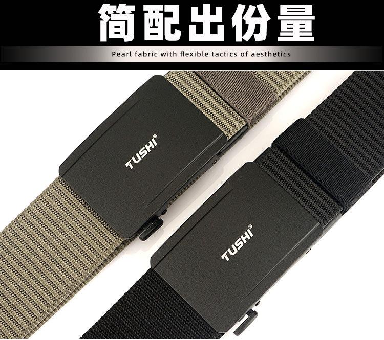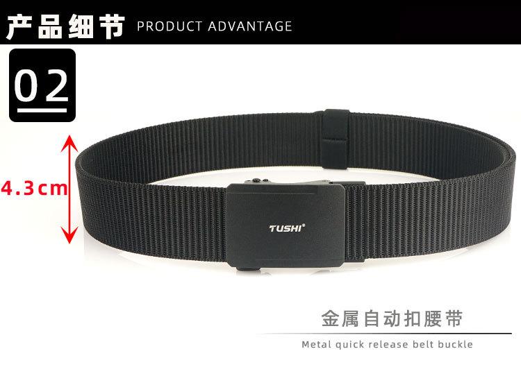 Cinturón táctico de nailon para hombre, con hebilla automática y sin dientes, de lona sencilla, para entrenamiento militar, ligero y de lujo.