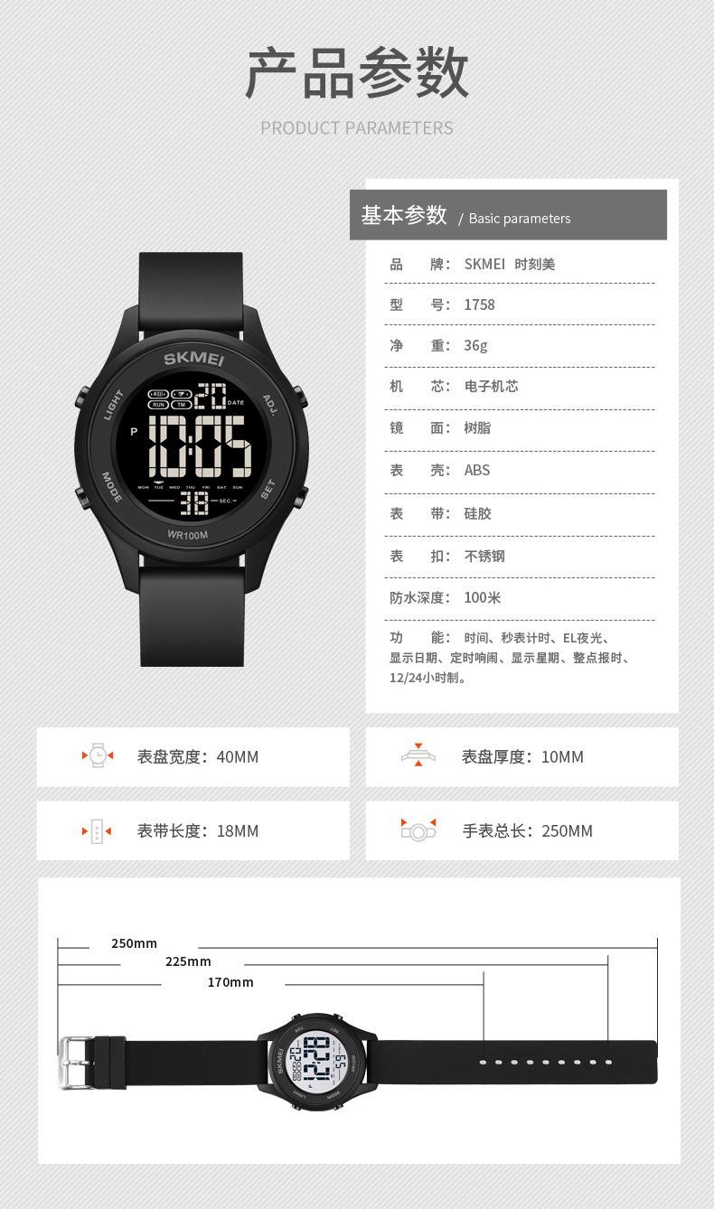 | Material | Caja de material ABS, correa de silicona, espejo de resina de alta transparencia, cubierta inferior de acero inoxidable, hebilla de acero inoxidable. |