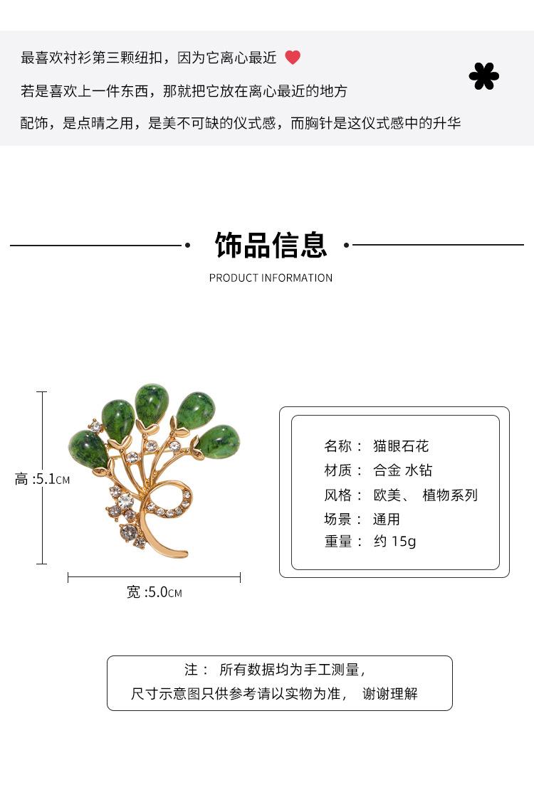 Compra Nuevo broche de flor de ojo de gato verde de estilo coreano para mujer, aleación de diamantes de alta calidad, accesorio de ramillete de alta calidad al por mayor en Joom.pro