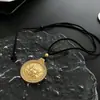 Moda Nacional Oro Retro Zircón Cuerda Negra Colgante de Buda Collar Joyería Celebrante de Internet Explosiones Geométricas para Mujer