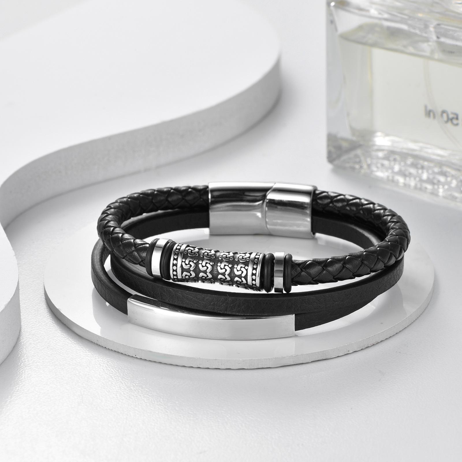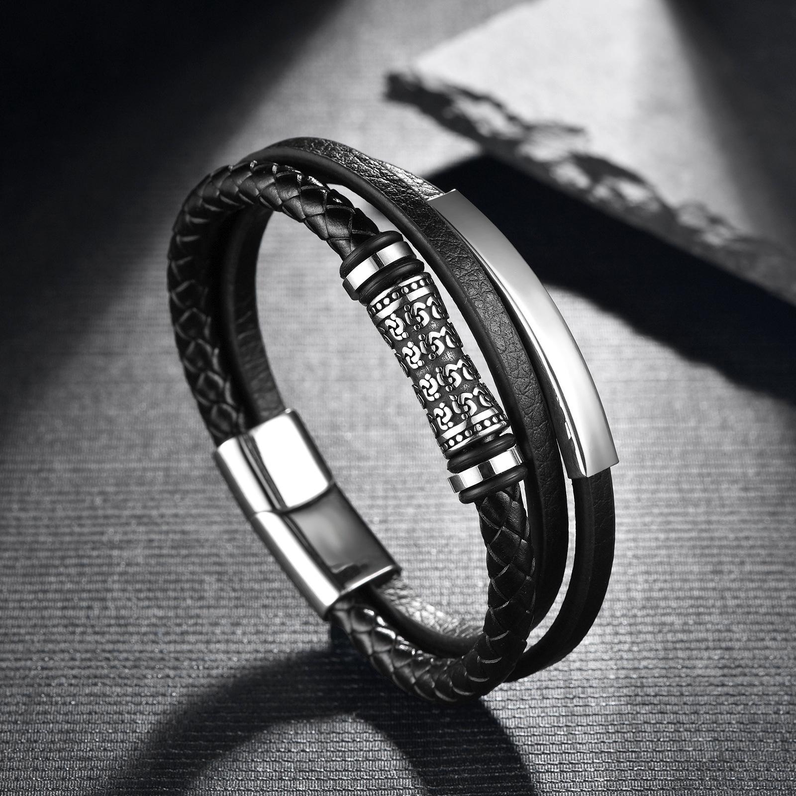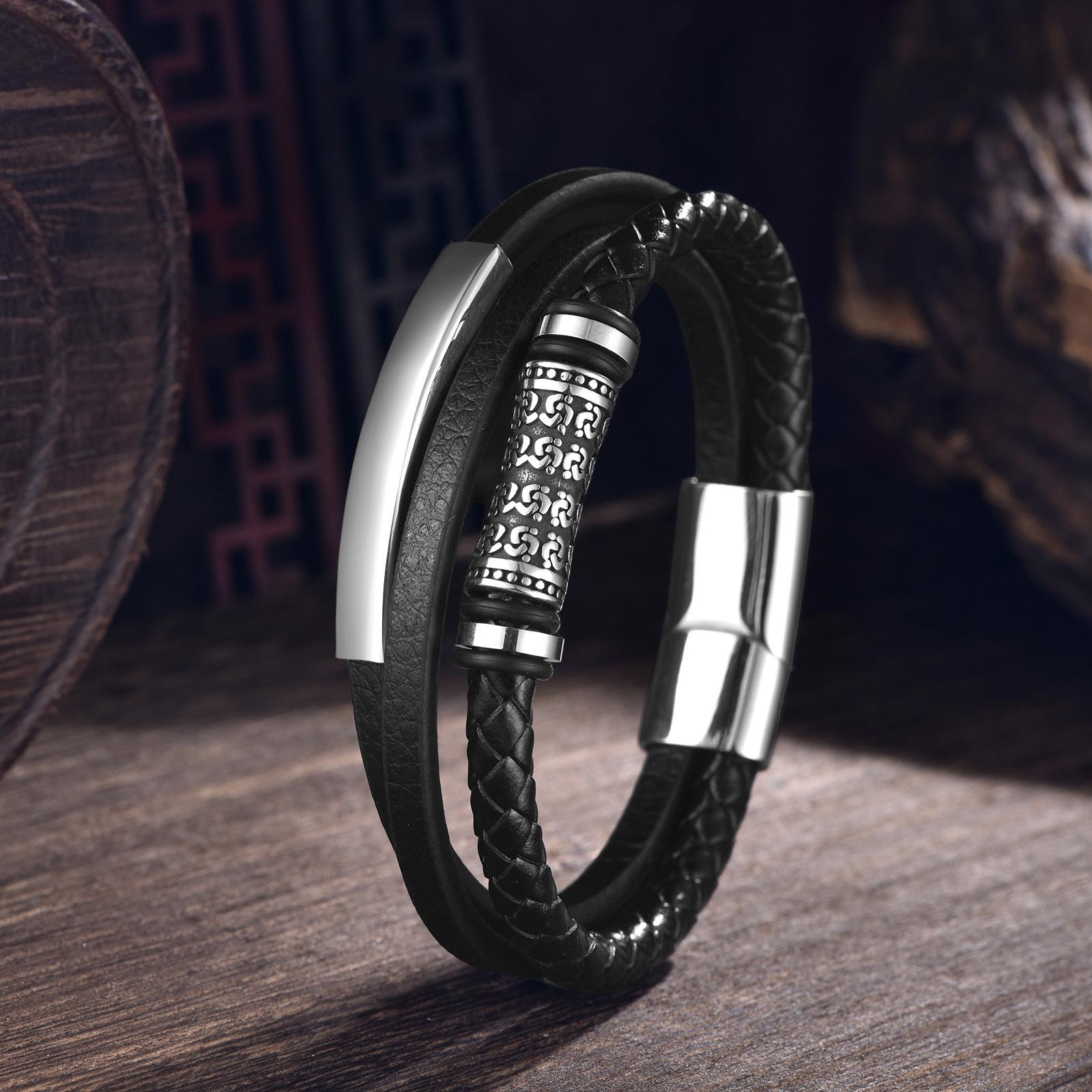 Nueva pulsera de cuero de acero inoxidable multicapa para hombre, estilo hip-hop, con personalidad de moda europea y americana, disponible transfronterizamente.