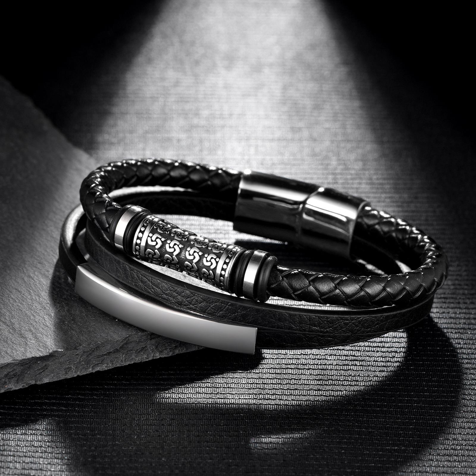 Compra Nueva pulsera de cuero de acero inoxidable multicapa para hombre, estilo hip-hop, con personalidad de moda europea y americana, disponible transfronterizamente. al por mayor en Joom.pro