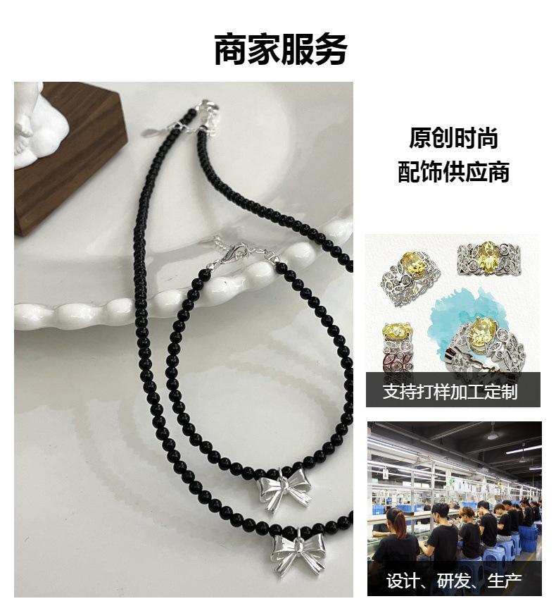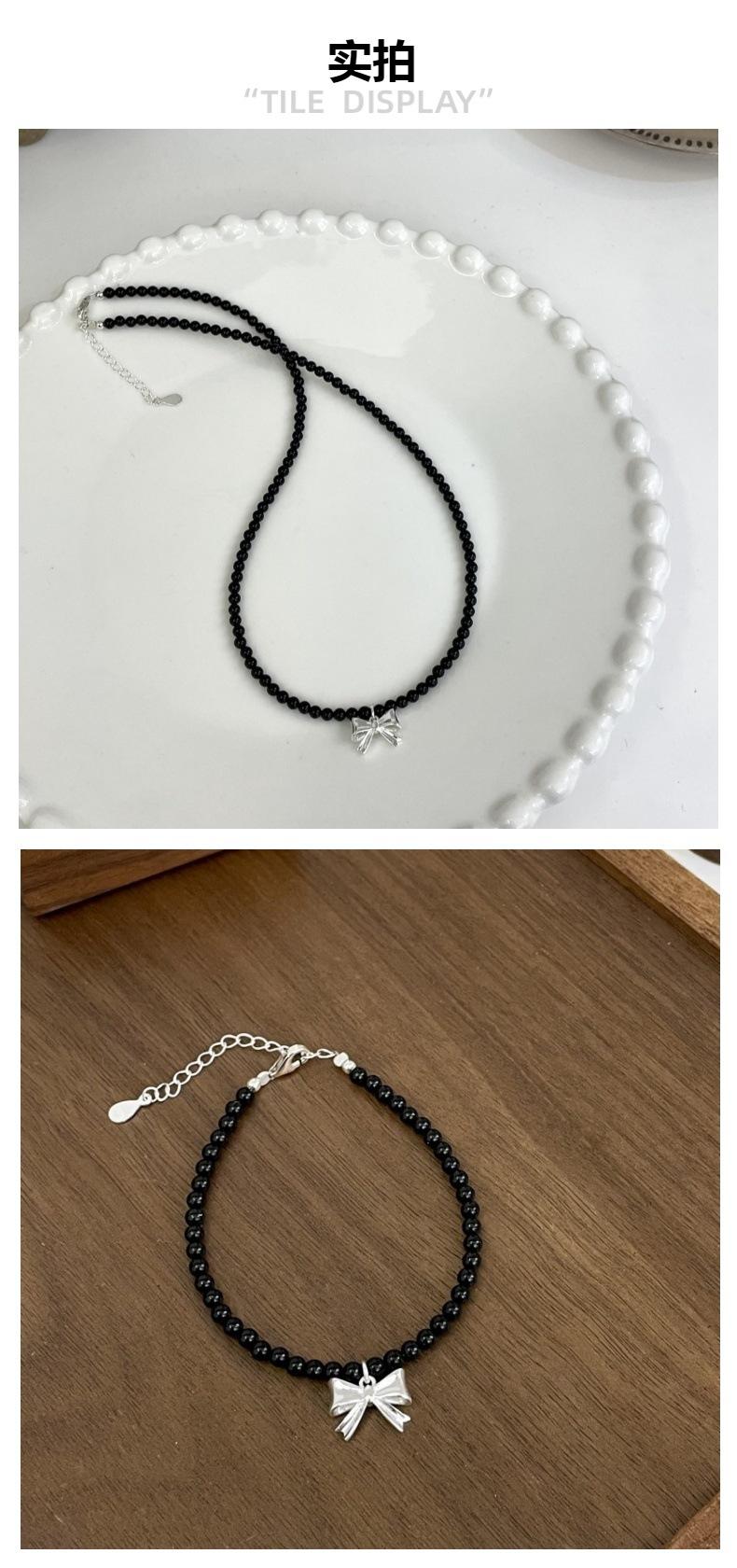Collar de Lazo de Ónix Negro de Plata Esterlina S925 Estilo Coreano Dongdaemun Joyería Accesorios de Alta Gama para Mujer Cadena de Lana Span