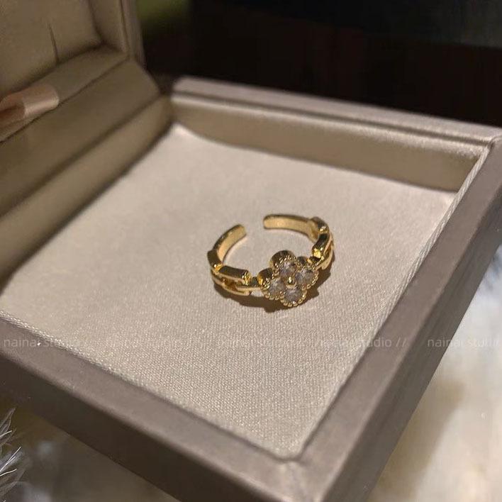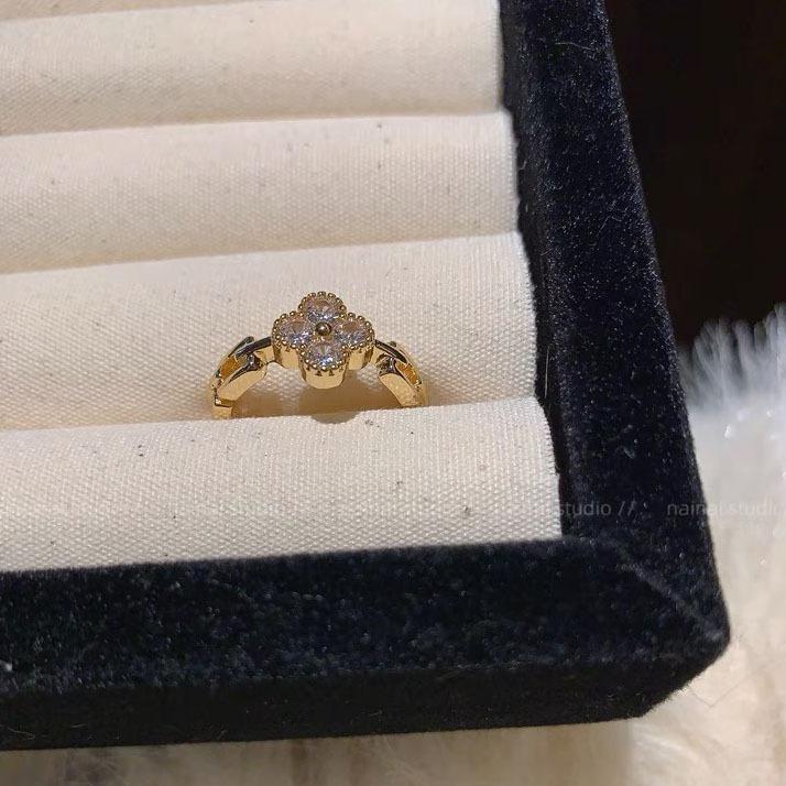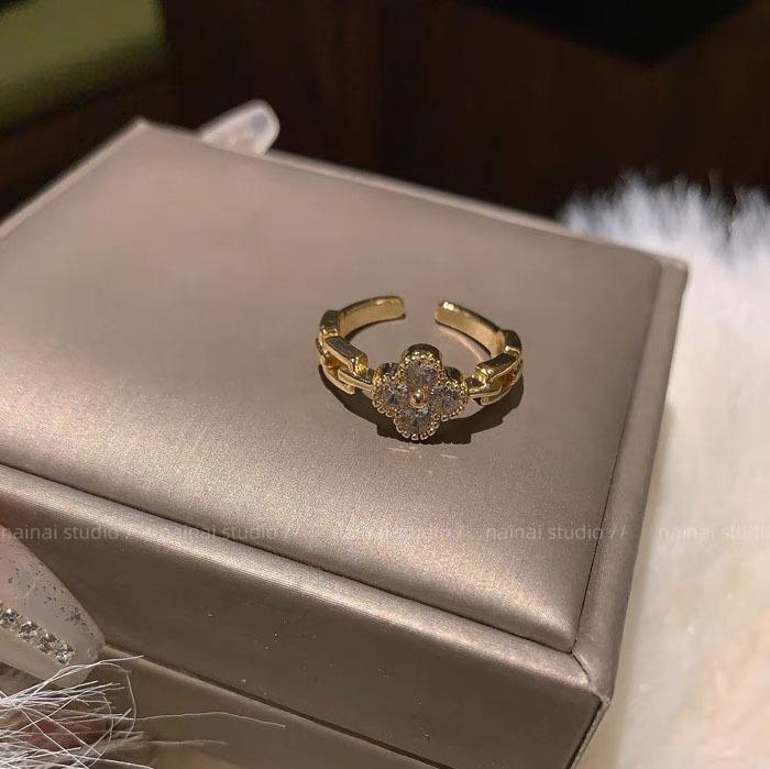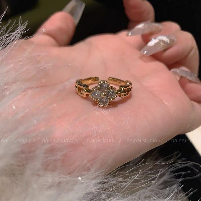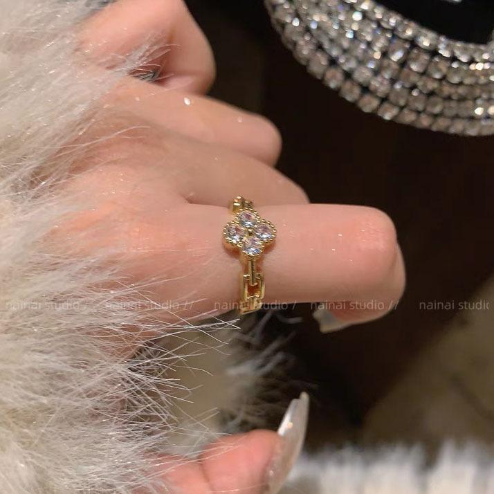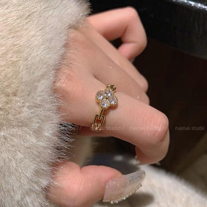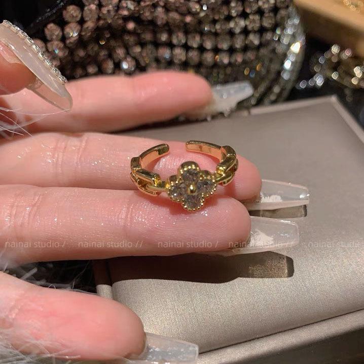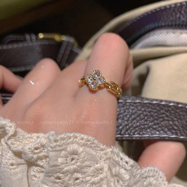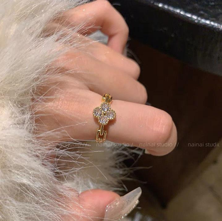Anillo de trébol ~ anillo de dedo abierto ajustable para dieta de circón de diamantes completos 2023 Nuevo anillo exquisito de alto sentido