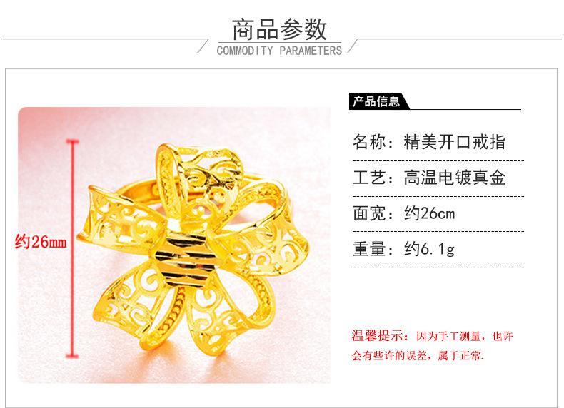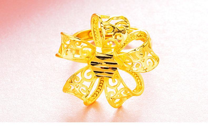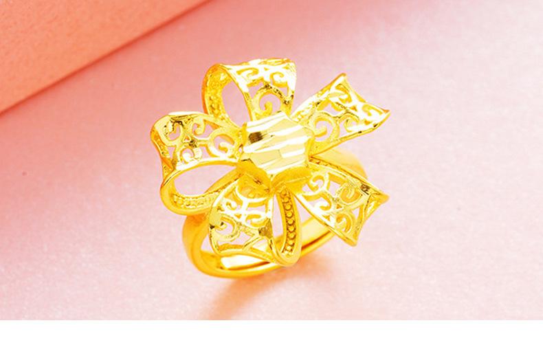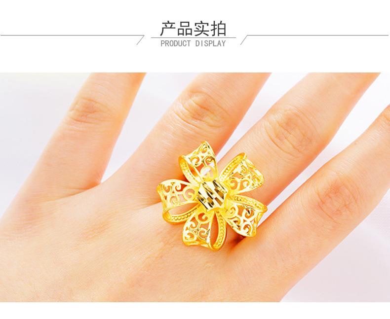 Anillo abierto grande para mujer con lazo de oro de imitación al por mayor, moneda europea, moda coreana, oro arena de Vietnam, oro duro, anillo para mujer